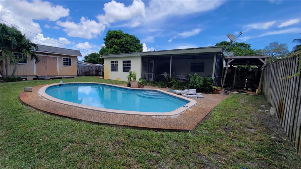 MAKE THIS BEAUTIFUL, BRIGHT & REMODELED HOUSE WITH POOL, YOUR HOME!!! Located in very nice and quiet area of Hollywood. 3 good sized bedrooms with plenty of closet space. Gorgeous new tiles Flooring. Recently remodeled kitchen. New Stainless Steel Appliances. Impact Windows and Doors. Large screened in patio overlooking the back yard & the pool just perfect for entertaining. Sprinkler system. This place comes with a BONUS !!!! A large shed that can be used as a storage or you can turn it into an efficiency. CALL LISTING OR EMAIL LISTING AGENT FOR SHOWINGS
