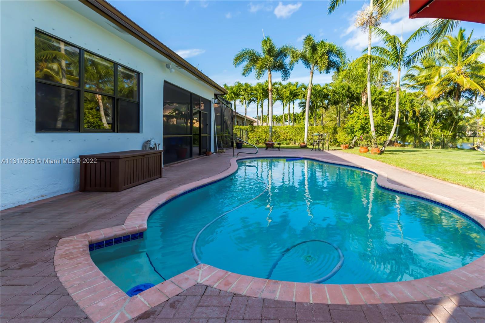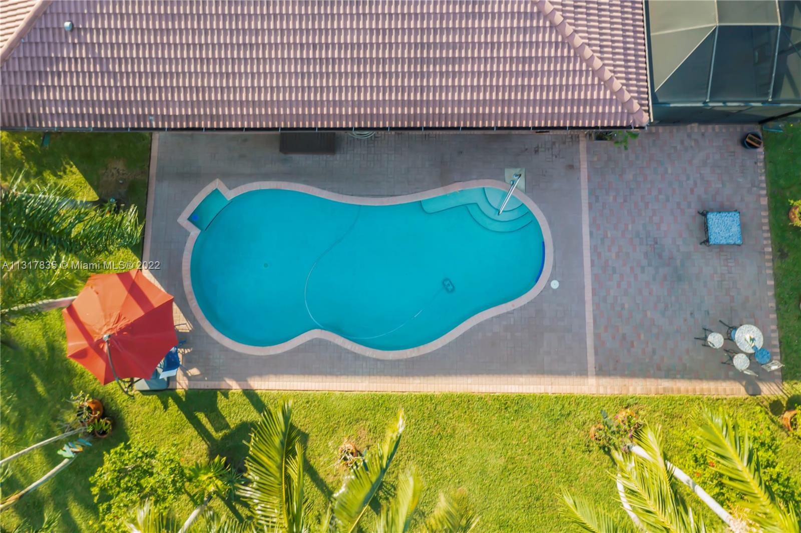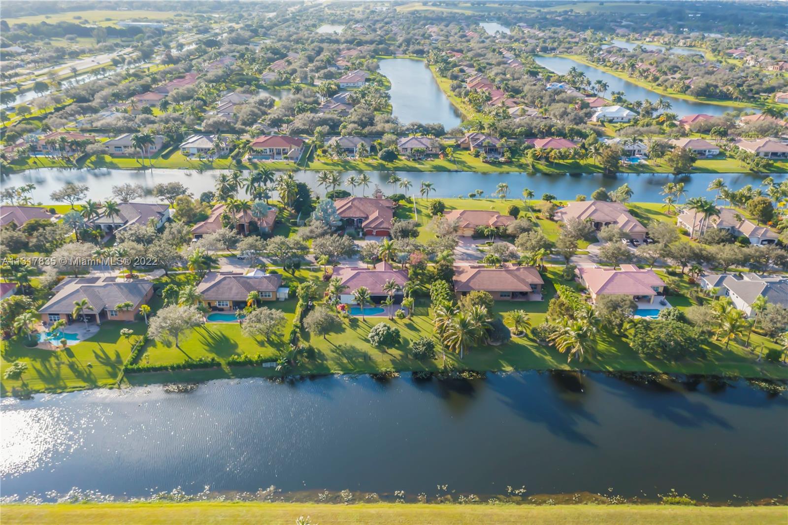 Stunning lakefront home on nearly a full acre lot in the guard gated community of Imagination Farms. This split floor plan includes volume ceilings, beautiful warm neutral colors, recessed lighting and more. Gourmet kitchen features granite counter tops, stainless steel appliances, and a large walk in pantry. Master Bedroom boast spectacular lake views, 2 walk-in closets and a large master bathroom with travertine tiles and large soaking tub. Walk out to your backyard oasis which features an extended screened in patio with beautiful ceramic tile floors, a dog run, a pool and amazing lake views. This large lot not only has lush landscaping but also fruit trees which include mango, avocado, and coconut. LG fridge does not convey.