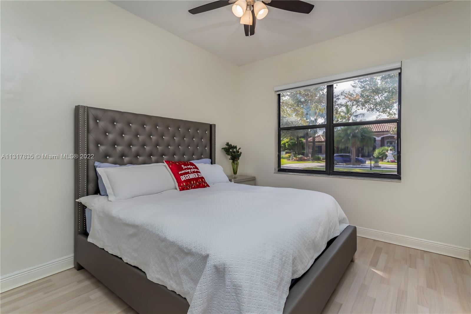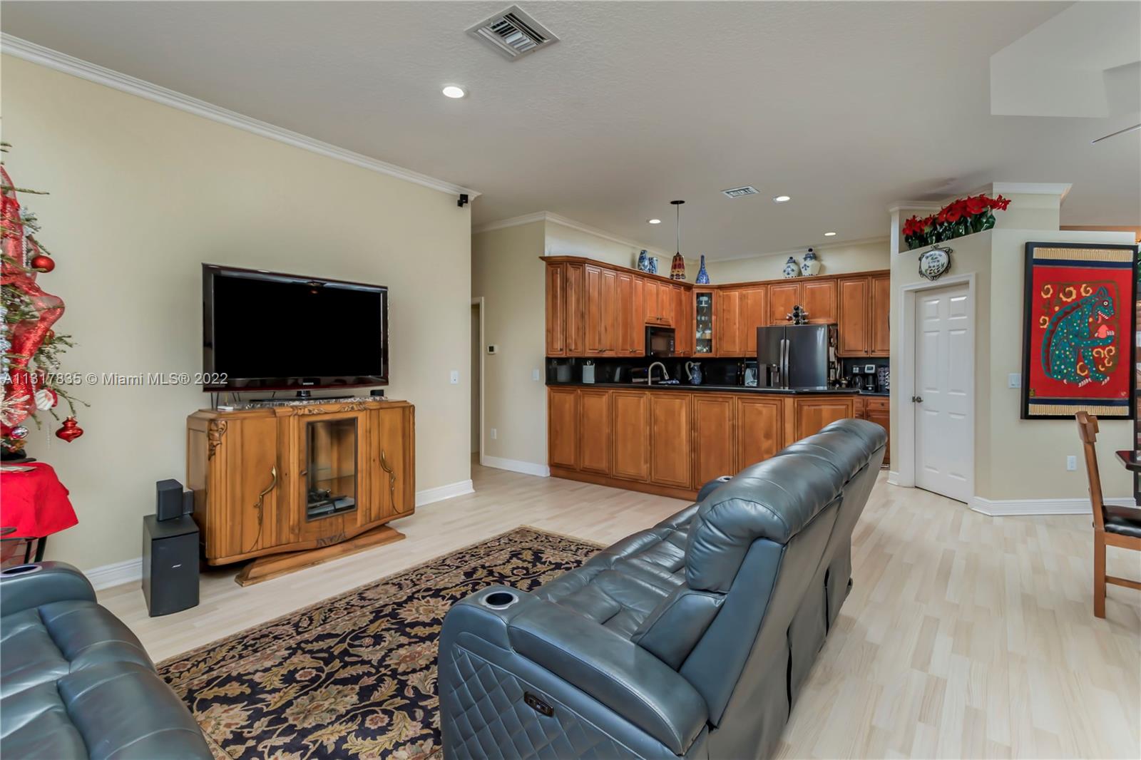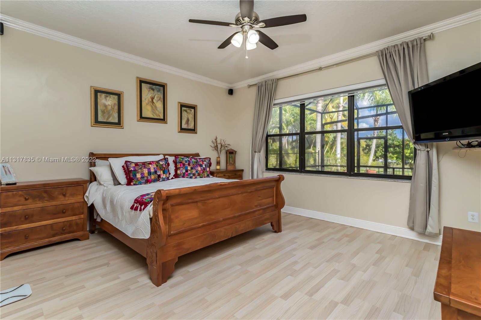 Stunning lakefront home on nearly a full acre lot in the guard gated community of Imagination Farms. This split floor plan includes volume ceilings, beautiful warm neutral colors, recessed lighting and more. Gourmet kitchen features granite counter tops, stainless steel appliances, and a large walk in pantry. Master Bedroom boast spectacular lake views, 2 walk-in closets and a large master bathroom with travertine tiles and large soaking tub. Walk out to your backyard oasis which features an extended screened in patio with beautiful ceramic tile floors, a dog run, a pool and amazing lake views. This large lot not only has lush landscaping but also fruit trees which include mango, avocado, and coconut. LG fridge does not convey.