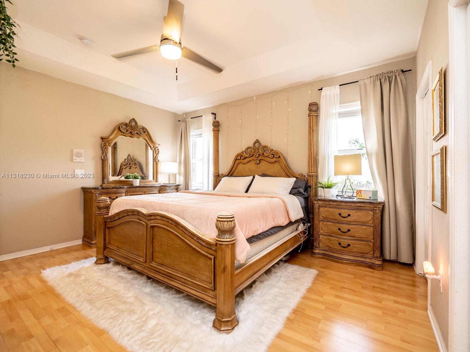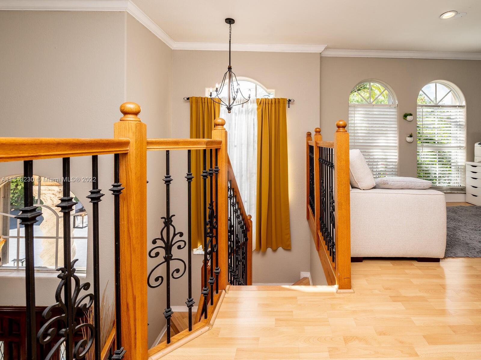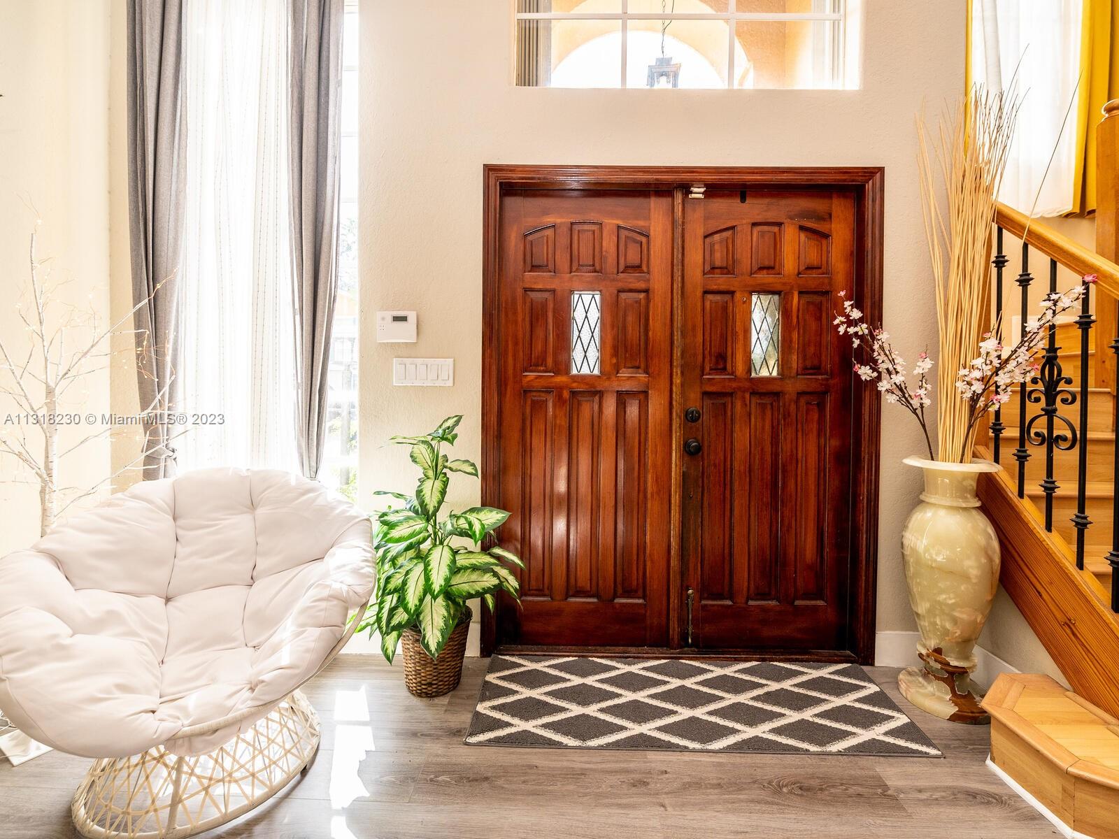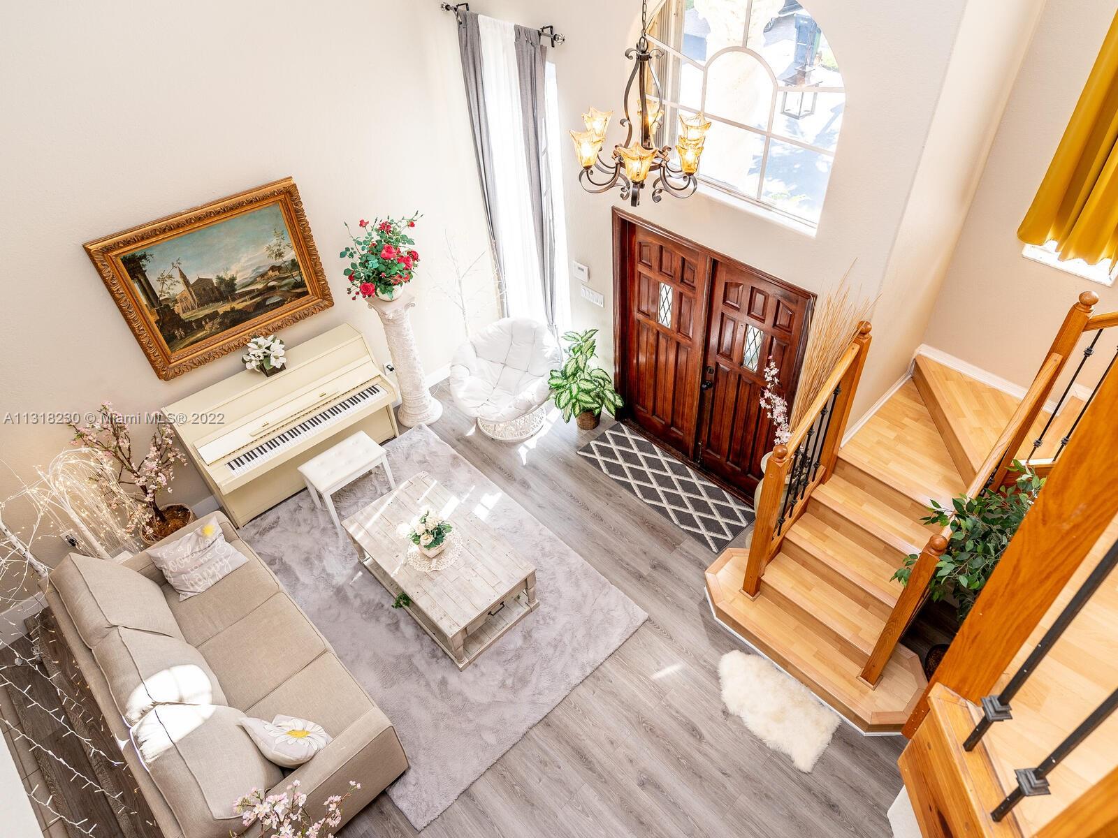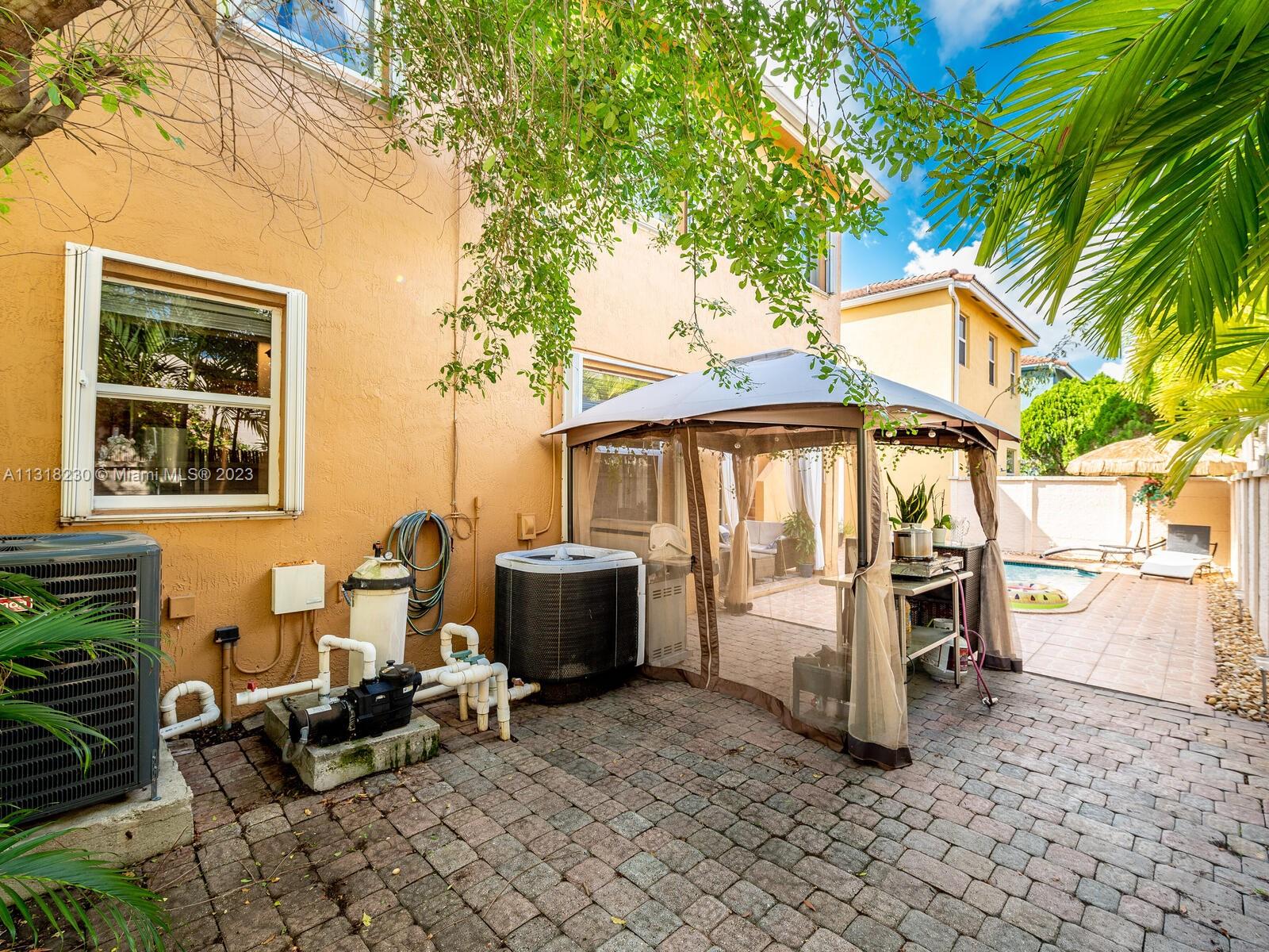 REDUCED...Great Location, Spectacular Mediterranean style. 4BR 3.5 Bath home, formal living and dining room, huge family room, LOFT, roof top terrace/sun deck overlooking the spacious patio and your own in ground POOL. Eat-in kitchen with wood cabinets, granite countertops, and SS appliances, full bedroom and bath downstairs, tile downstairs and wood laminate 2nd floor. Hurricane rated accordion shutters. Large two car garage, Outside shower/cabana bath, low HOA includes gated security, alarm, cable, walking distance to schools, shopping, entertainment, basic cable TV and ADT monitoring included. BACK ON THE MARKET. ROOF NEEDS REPAIR. CASH ONLY. Offer with proof of funds