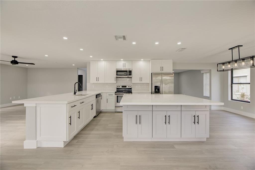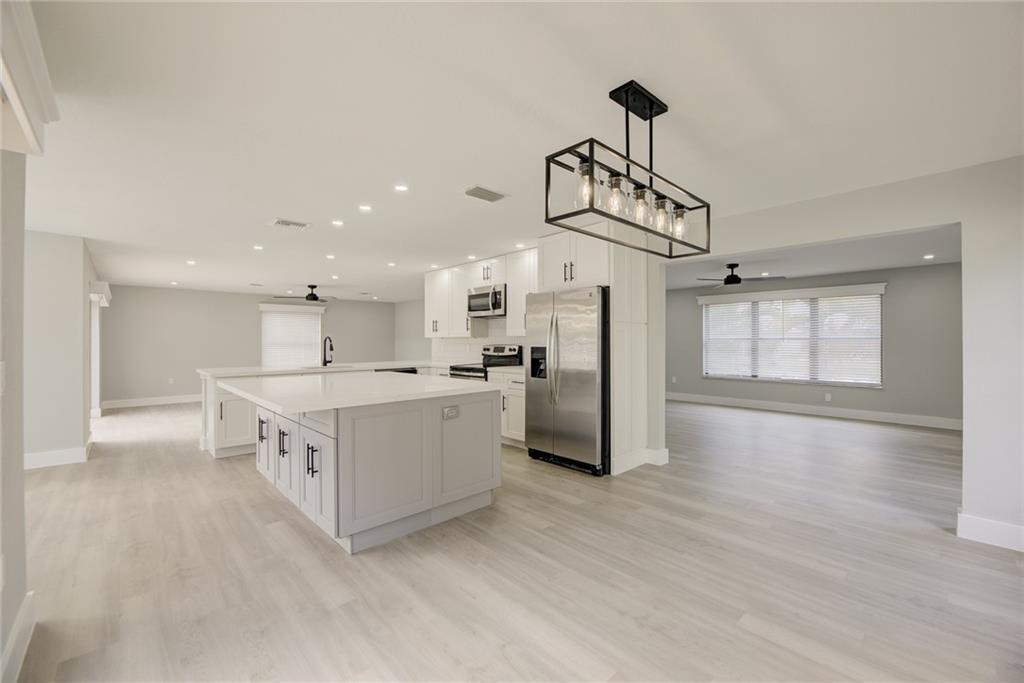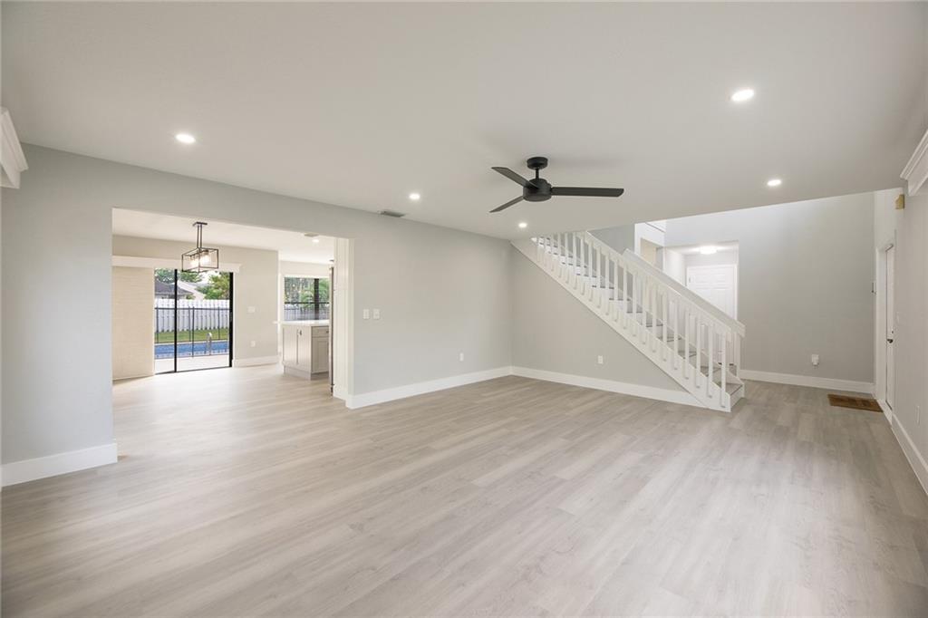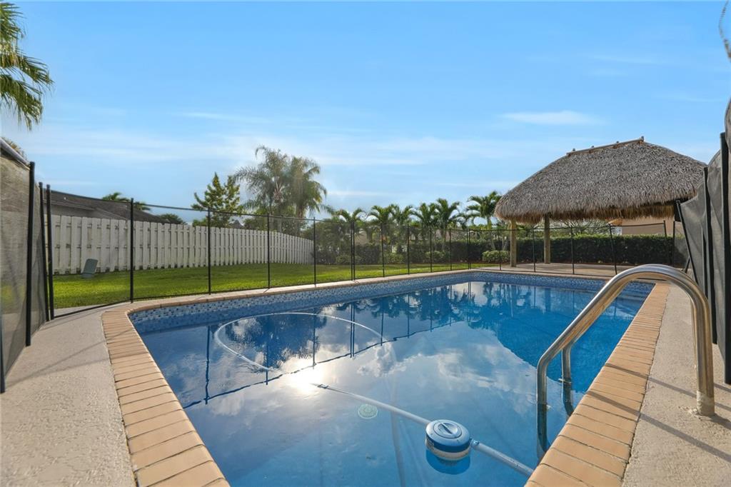 Completely updated and remodeled, gorgeous 4 bedroom 2.5 bathroom home in family friendly community Shenandoah. Eat in kitchen boasts new cabinets, quartz counter tops, huge island and stainless steel appliances New luxury vinyl flooring throughout the first floor. New vanity in half bath downstairs. Separate laundry room. Upstairs features 4 bedrooms with luxury vinyl flooring. Guest bathroom has new tile flooring, new tiled shower and new vanity. Primary bedroom boasts completely remodeled bathroom with dual sinks, huge vanity, separate beautiful tub, walk-in shower with new tile and glass. Lakefront backyard is an entertainer's dream. It has a large pool with Tiki hut and tons of pavers. Outstanding location in Davie, close to 595, Sawgrass expressway and Sawgrass Mall.