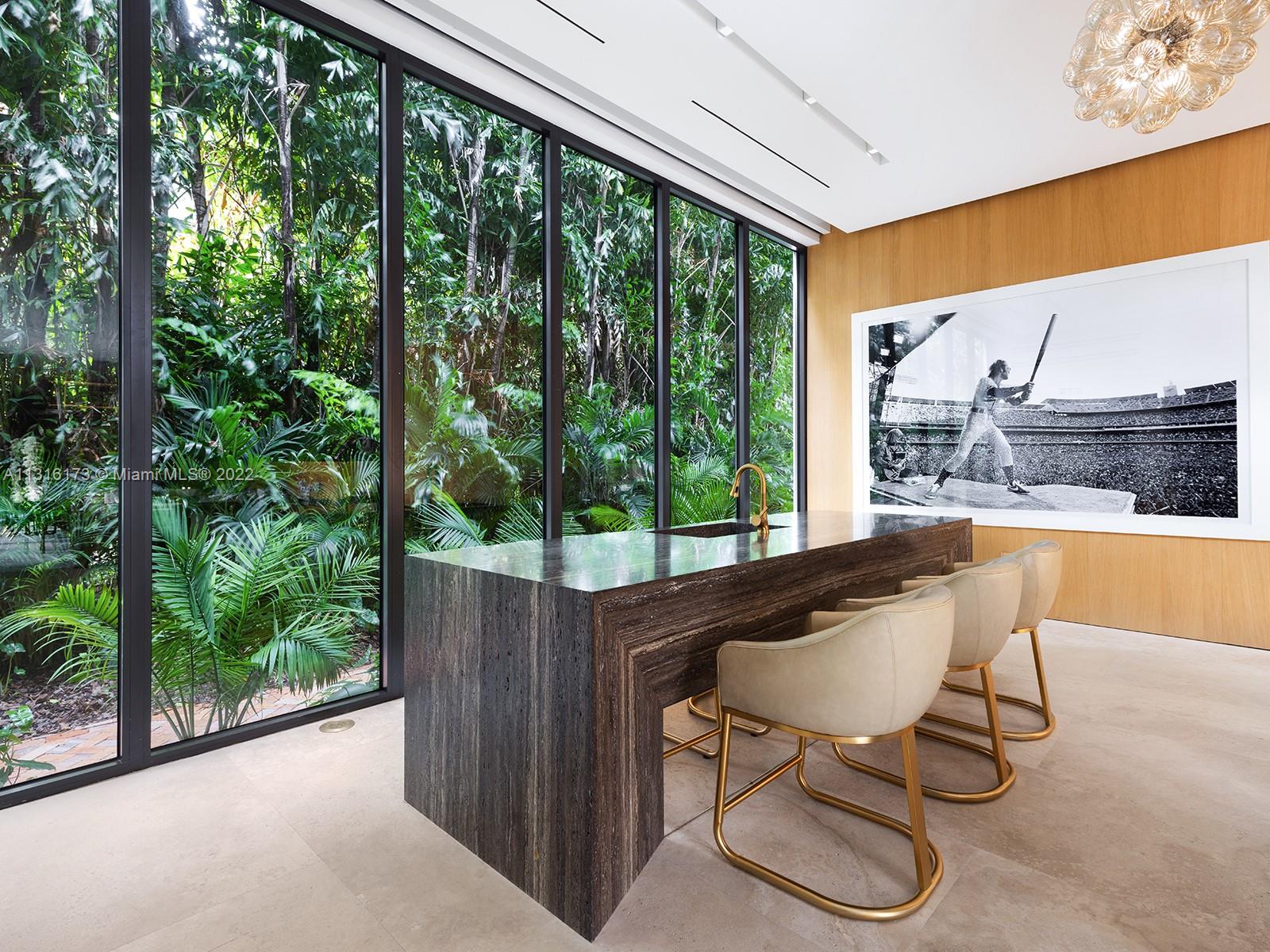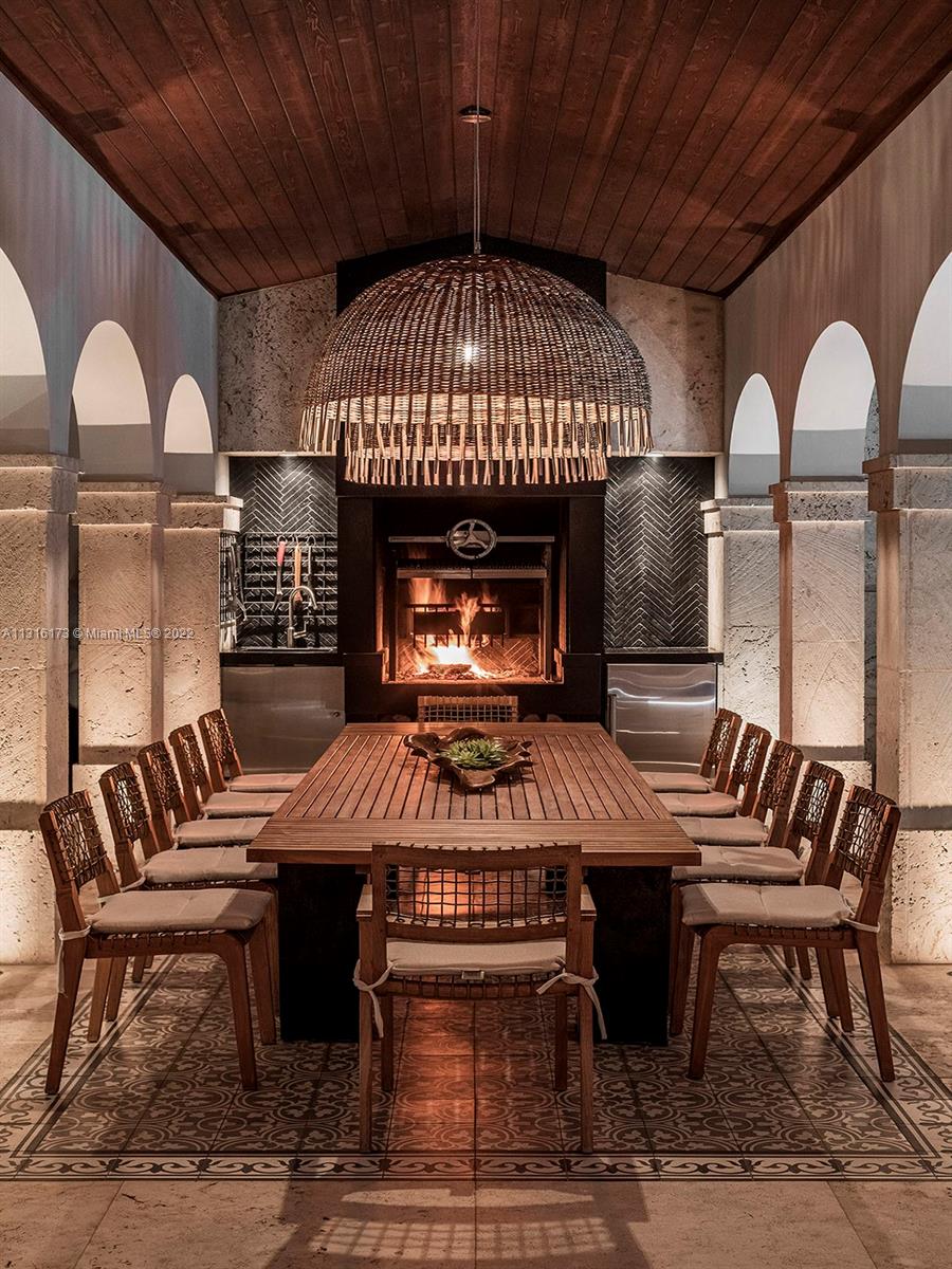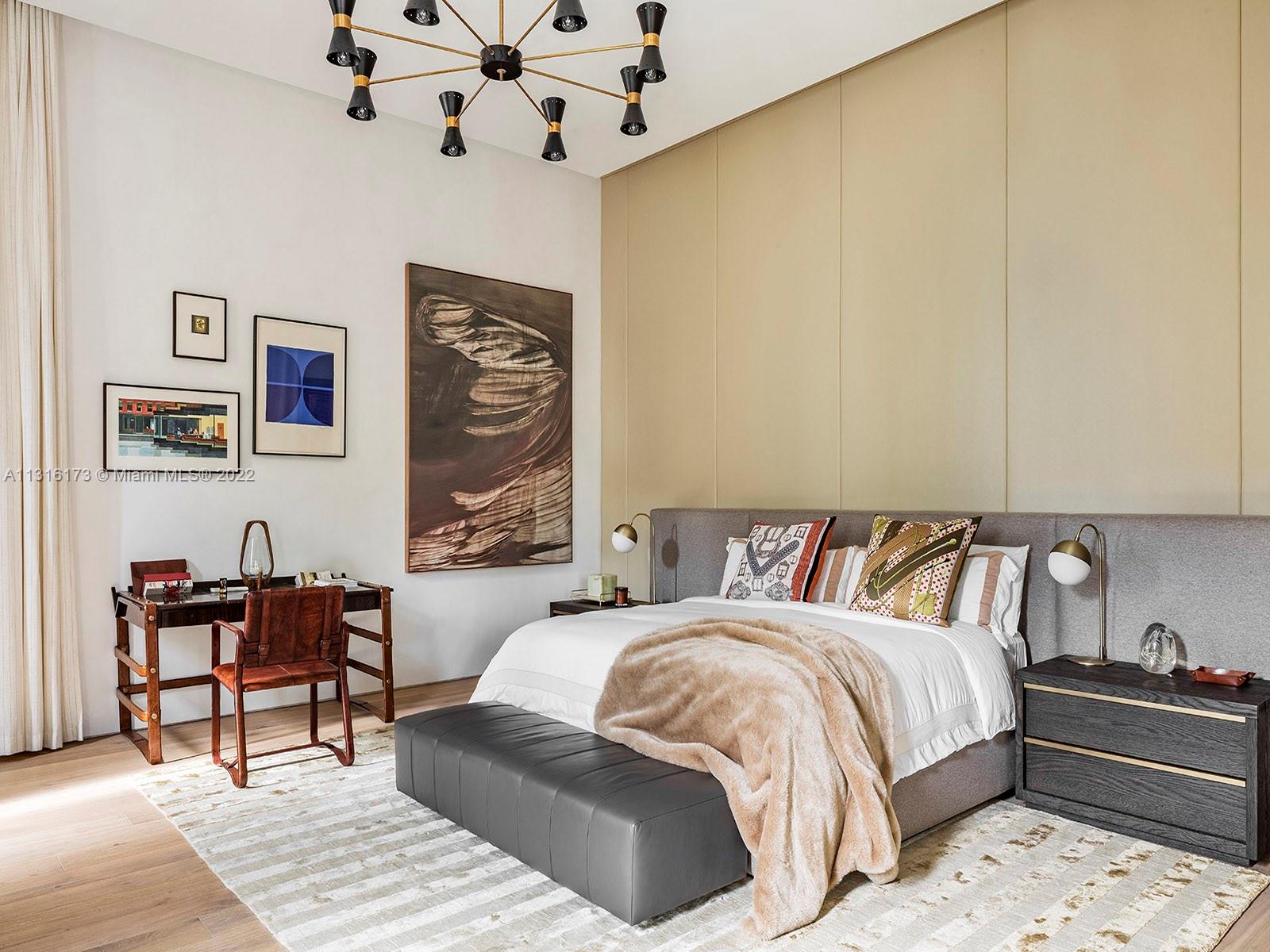 This magnificent newly constructed Mizner-inspired villa was tastefully designed as a contemporary redux with an unprecedented level of detail influenced by owner-developer, Oren Alexander. Enter the gated porte-cochère through the coach house featuring a staff quarters & an A/C 2-car garage. The main house features an elegant mixture of travertine flooring, walls adorned with oak, and stones. 30ft. wide living room with tuckaway sliding doors creating a seamless indoor-outdoor living. Elegant formal dining, show kitchen, chef's kitchen, bar with a floating fireplace, media room, and an office make up the 1st floor. The primary suite has a sitting area w/ a bar, and one of grandest bathrooms ever seen. Beyond the overflowing perimeter pool lies the Gazebo with a Gym, BBQ area & Guest Suite