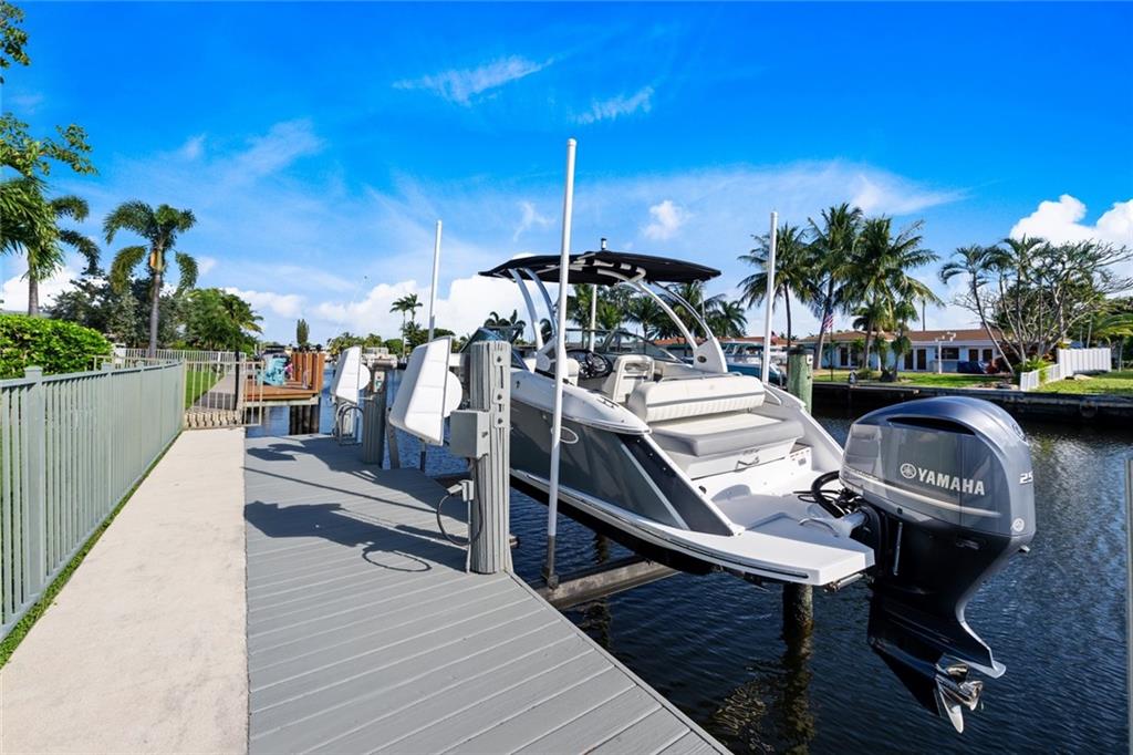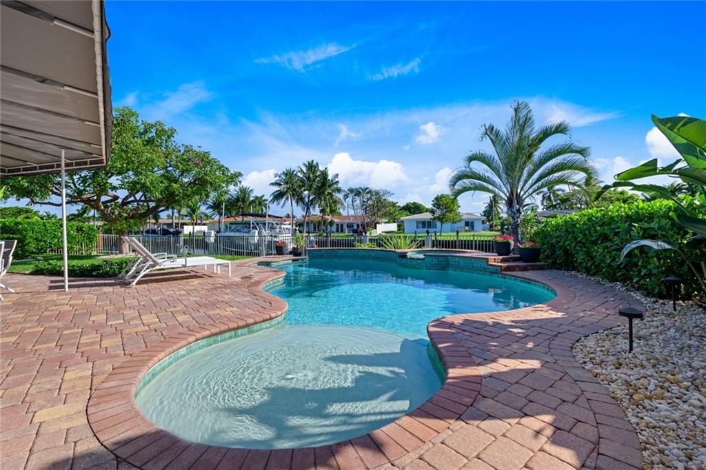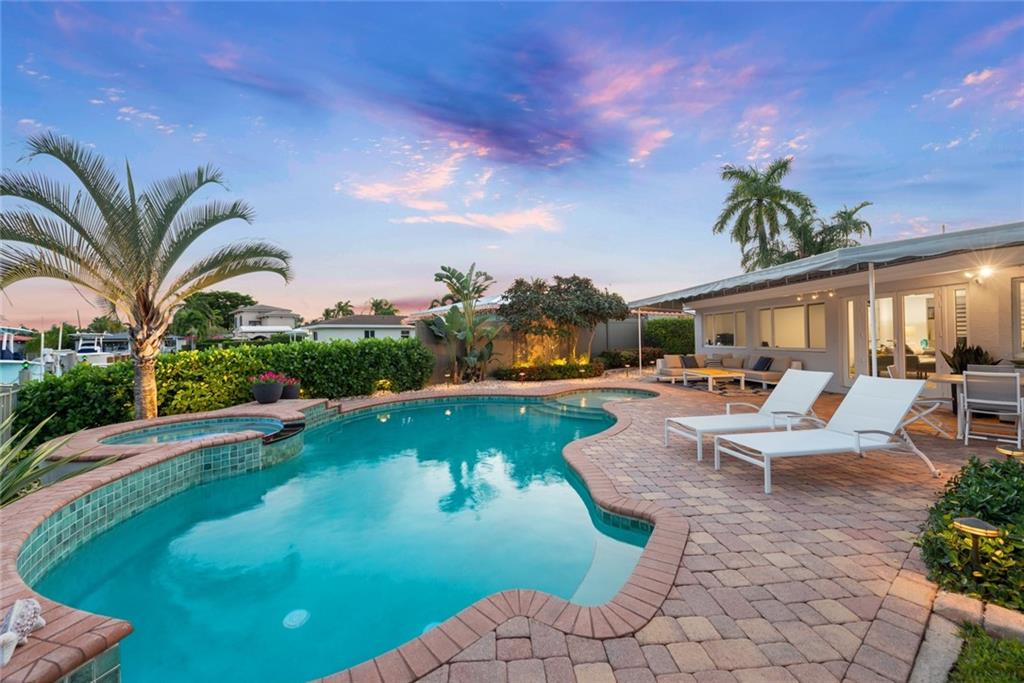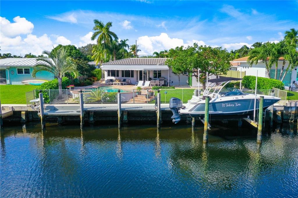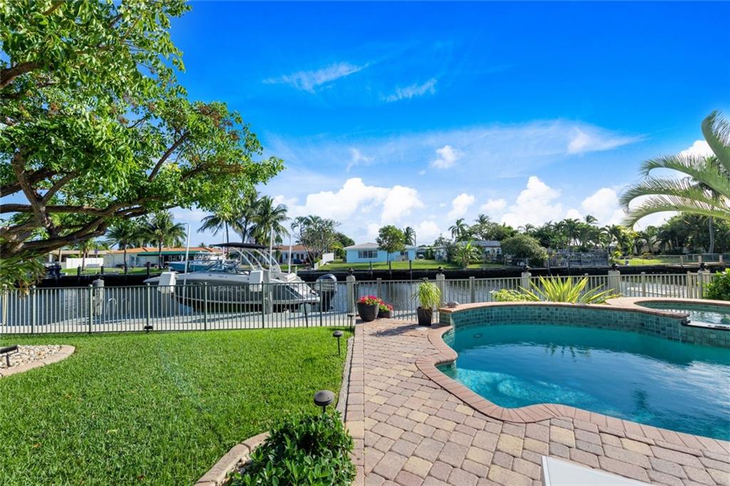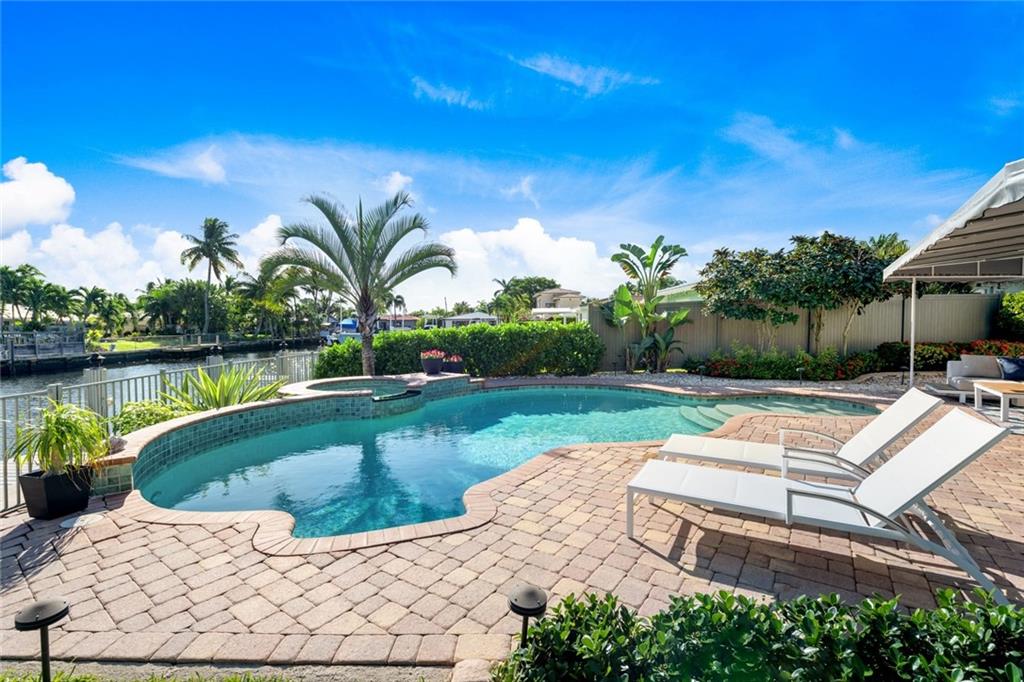 Welcome to this elegantly updated turn key home. The East facing backyard allows an ocean breeze with ocean access. Located 10 mins from the beach, lushly landscaped, modern 1,766± SF 3 bed, 2 bath single family home. The neutral colored living area covered in luxury flooring flows into the kitchen which makes it perfect for entertaining. All new stainless steel appliances, gas range, natural stone quartzite countertops and breakfast island. Exit the living room French doors to the free-form salt water pool oasis with a spa. Featuring 70’± of direct waterfront dockage with 10K boat lift, reinforced seawall cap and batter pilings. This home is move in ready, roof 2019, impact windows, tankless water heater, new washer & dryer, new generator, pool heater with automated system.