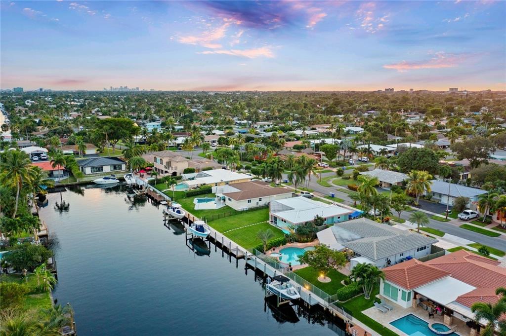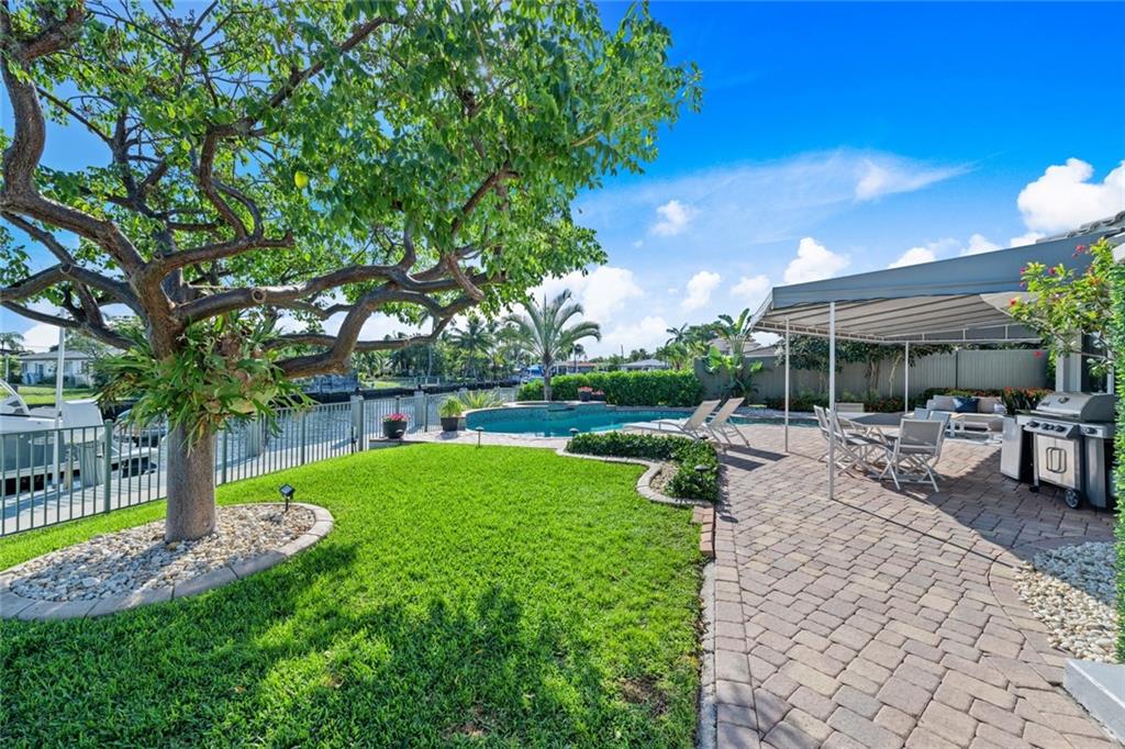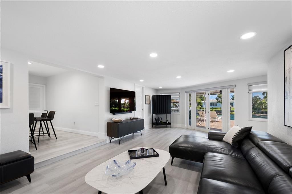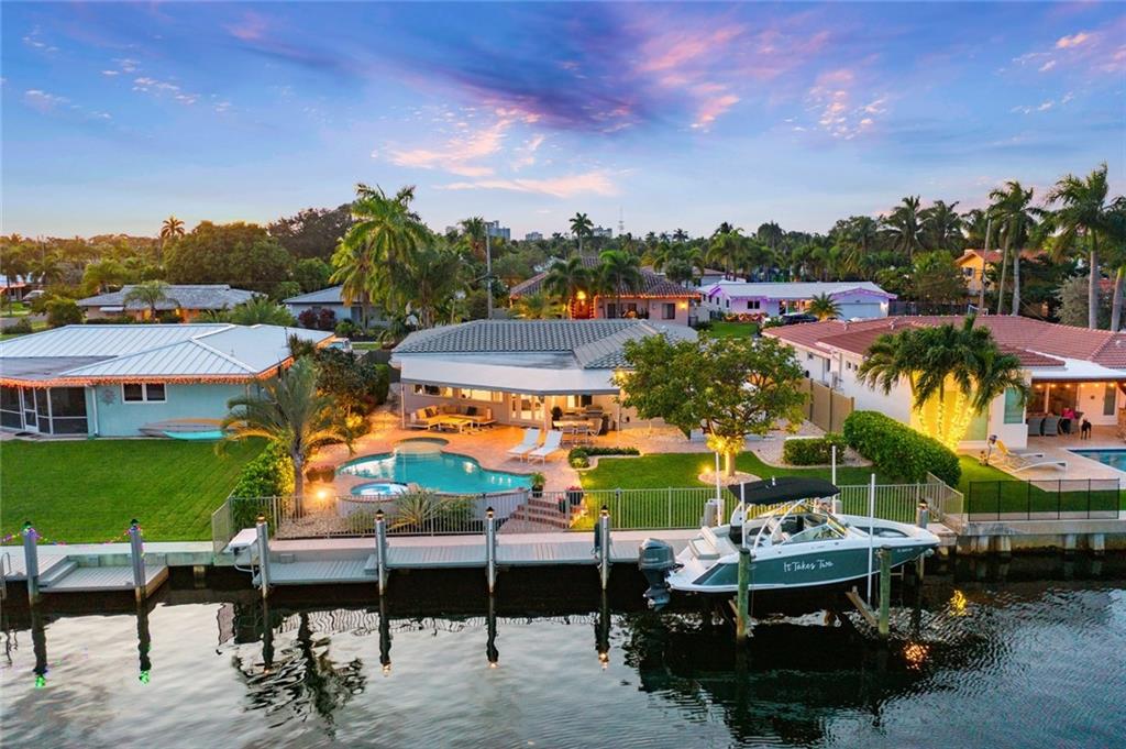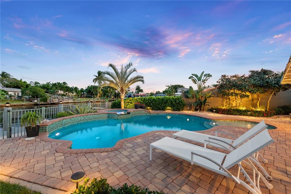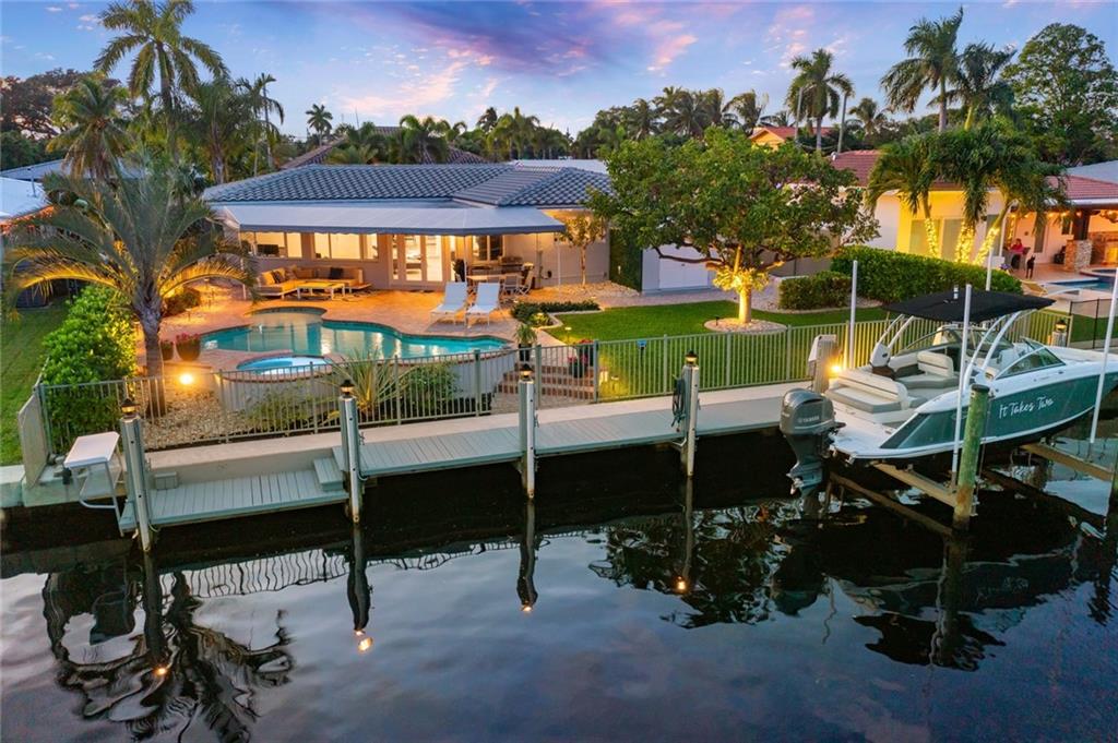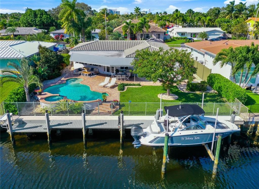 Welcome to this elegantly updated turn key home. The East facing backyard allows an ocean breeze with ocean access. Located 10 mins from the beach, lushly landscaped, modern 1,766± SF 3 bed, 2 bath single family home. The neutral colored living area covered in luxury flooring flows into the kitchen which makes it perfect for entertaining. All new stainless steel appliances, gas range, natural stone quartzite countertops and breakfast island. Exit the living room French doors to the free-form salt water pool oasis with a spa. Featuring 70’± of direct waterfront dockage with 10K boat lift, reinforced seawall cap and batter pilings. This home is move in ready, roof 2019, impact windows, tankless water heater, new washer & dryer, new generator, pool heater with automated system.