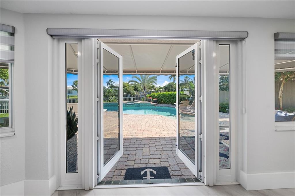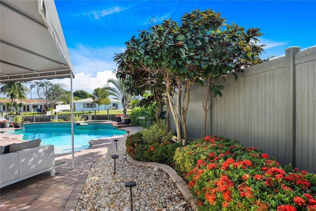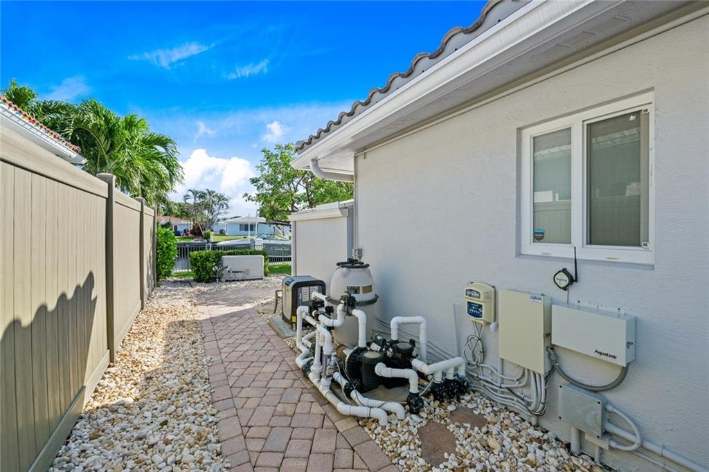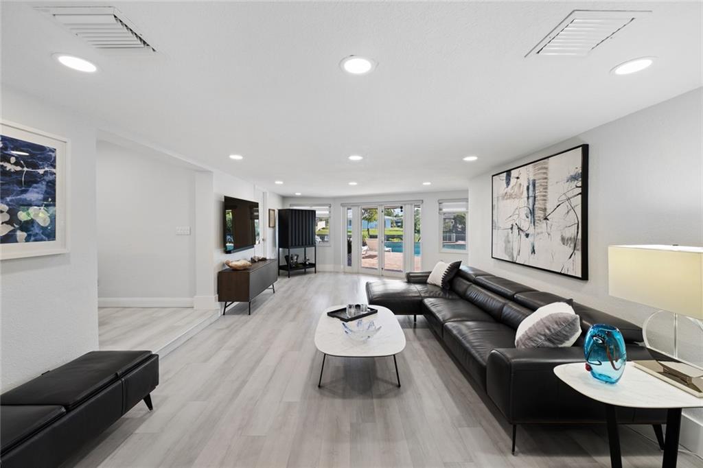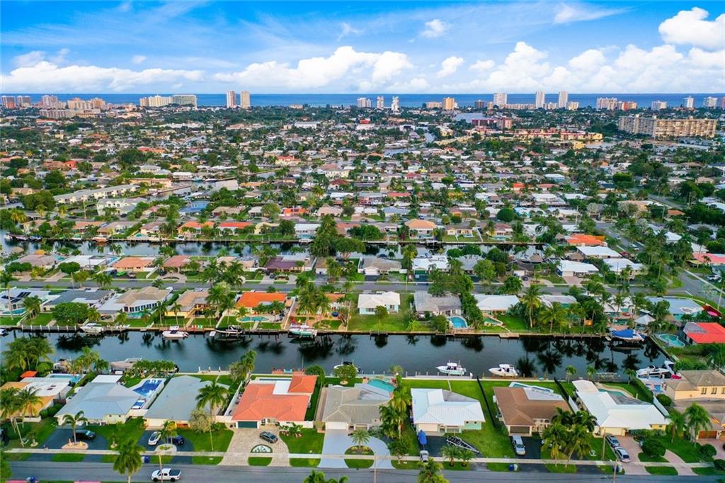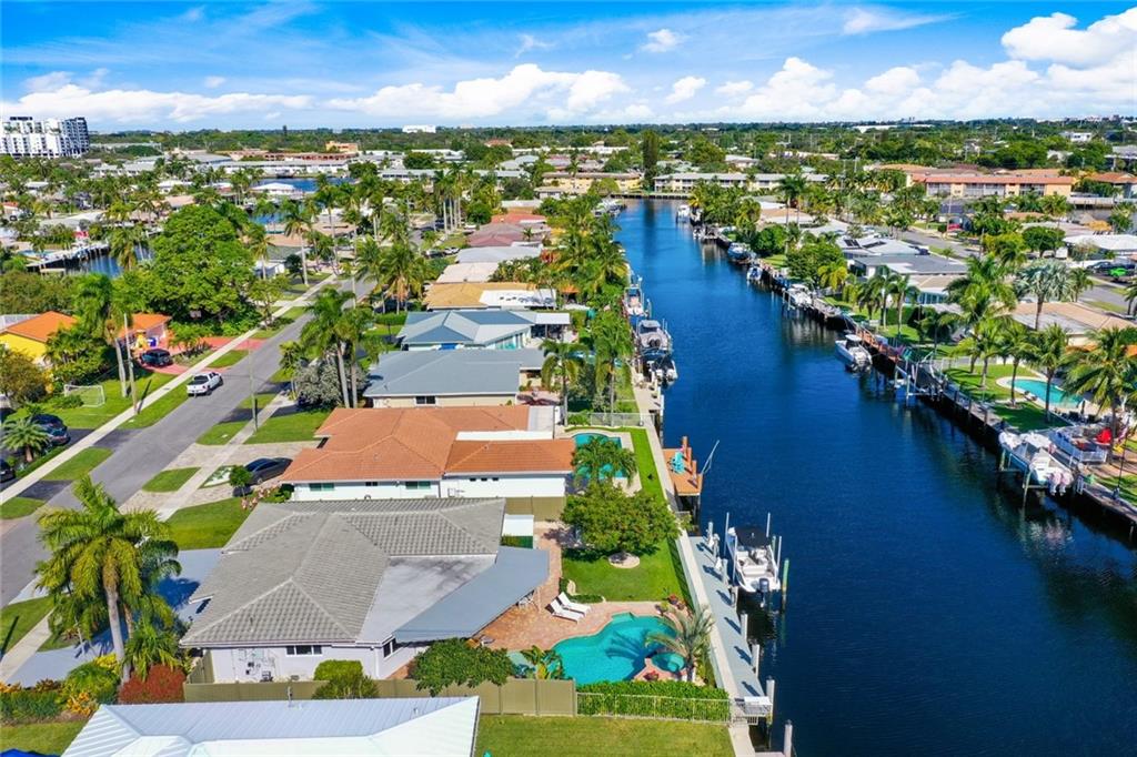 Welcome to this elegantly updated turn key home. The East facing backyard allows an ocean breeze with ocean access. Located 10 mins from the beach, lushly landscaped, modern 1,766± SF 3 bed, 2 bath single family home. The neutral colored living area covered in luxury flooring flows into the kitchen which makes it perfect for entertaining. All new stainless steel appliances, gas range, natural stone quartzite countertops and breakfast island. Exit the living room French doors to the free-form salt water pool oasis with a spa. Featuring 70’± of direct waterfront dockage with 10K boat lift, reinforced seawall cap and batter pilings. This home is move in ready, roof 2019, impact windows, tankless water heater, new washer & dryer, new generator, pool heater with automated system.