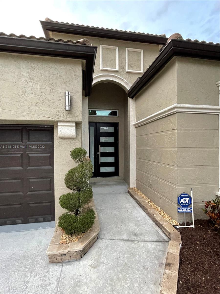 Beautiful 1 story home 4 bedroom 2 bath 2 car garage epoxy floor and extra storage space. Riviera Isles is a luxurious gated community with exquisite Mediterranean style homes. Enjoy resort style amenities heated pool, gym, tennis & basketball courts, and party room. This property features lots of upgrades, open floor plan, tall ceilings, crown molding thru out, Nest thermostat, hurricane impact windows & doors. Vinyl plank flooring in all the bedrooms, tile flooring in living areas. Rear yard has pavers, covered patio & awning. Centrally located near A rated schools, shopping center, restaurants, hospital, supermarkets, parks, within 10 to 15 min Pembroke Gardens shopping Center & near to the future home of American Dream Mega Mall. Close to major highways west of I-75, and 595