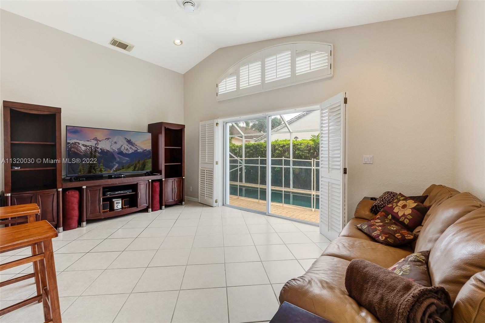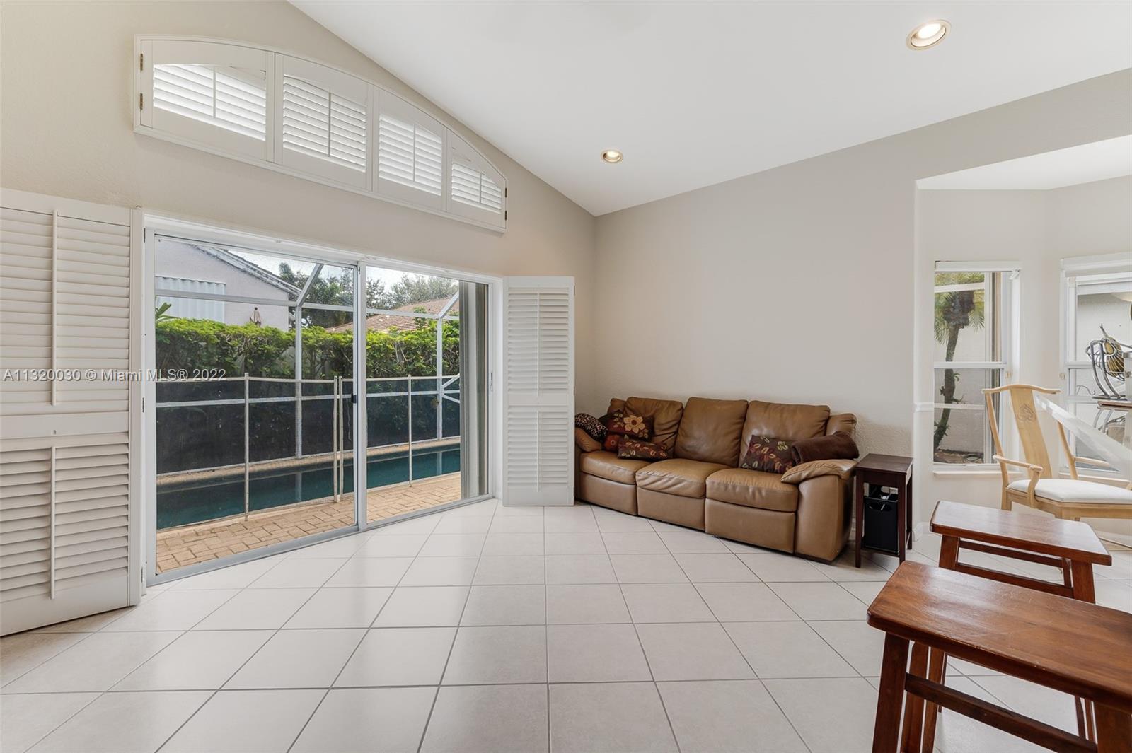 Located in Oakridge, an access controlled entry leads you to the relaxing view of the community's main lake. The well kept Redwood model has an open, spacious living/dining room and a sliding door to the screened patio area where you'll find a protective enclosure for the lap pool. Kitchen has quartz countertops & the cabinets feature soft close drawers with a lot of storage space. The oversized master bedroom gives you space for all your needs. The renovated master bathroom features separate shower & Roman rub. The 3rd bedroom has a built-in office space & a Murphy bed. The guest bathroom is also renovated. The house is wired for cameras & alarm. A/C approx. 4 yrs. old, new garage door opener and washer & dryer. Pool pump was replaced in 2021, pool heater is nonfunctioning.
