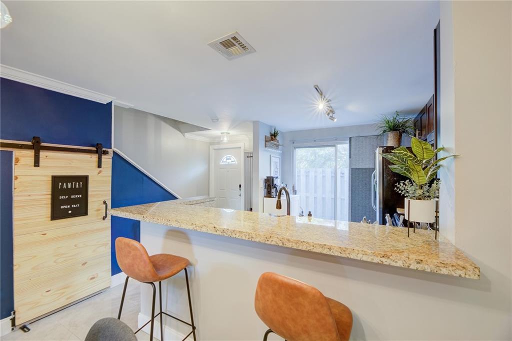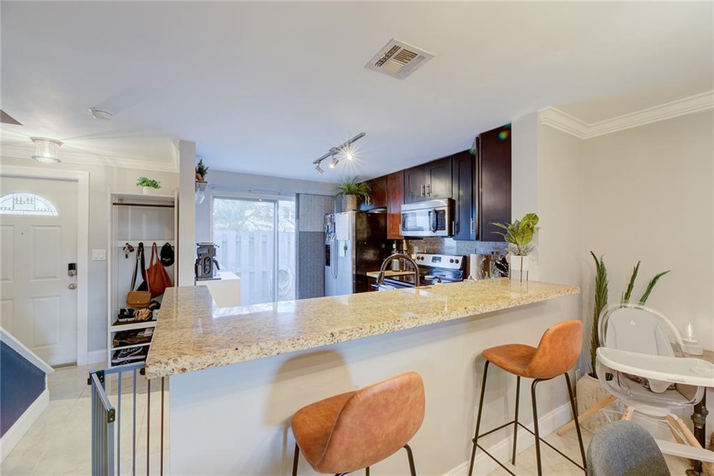 WELCOME HOME! Charming and beautifully updated 2 bedroom, 1.5 bathroom townhome in the highly desirable east Fort Lauderdale area. This highly sought after waterfront, gated community of Edgewater is located in the neighborhood of Poinsettia Heights just minutes from the beach, downtown shops and restaurants, Las Olas, Wilton Manors, and easy access to highways and airport. This home features stainless steel appliances, granite kitchen countertops, private screened patio, new vinyl flooring in bedrooms and staircase, hurricane shutters, new vanity sinks in all bathrooms, and freshly painted. Two parking spaces. Community is beautifully maintained with lawn care and swimming pool. Can be rented right away! Low HOA (includes water) and pet friendly. These units rarely become available!