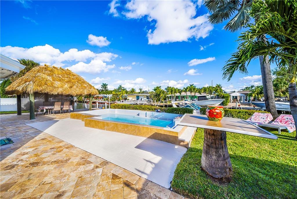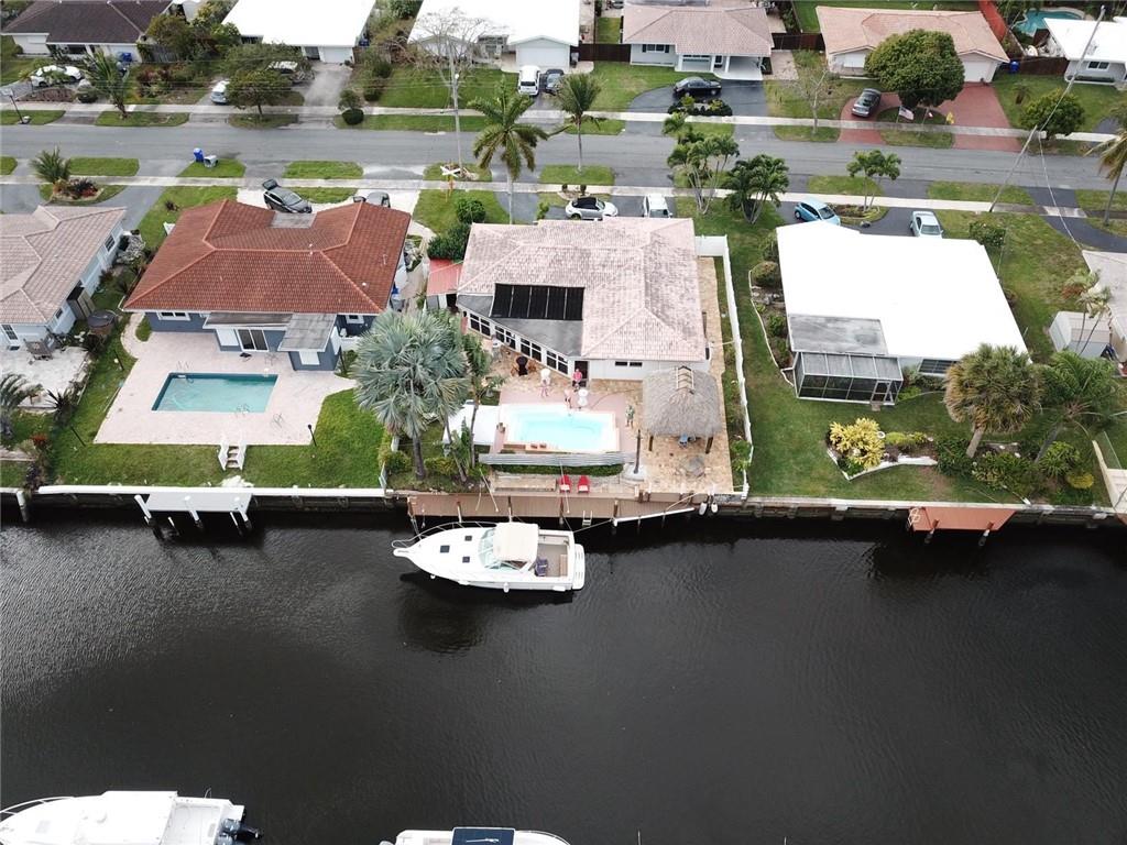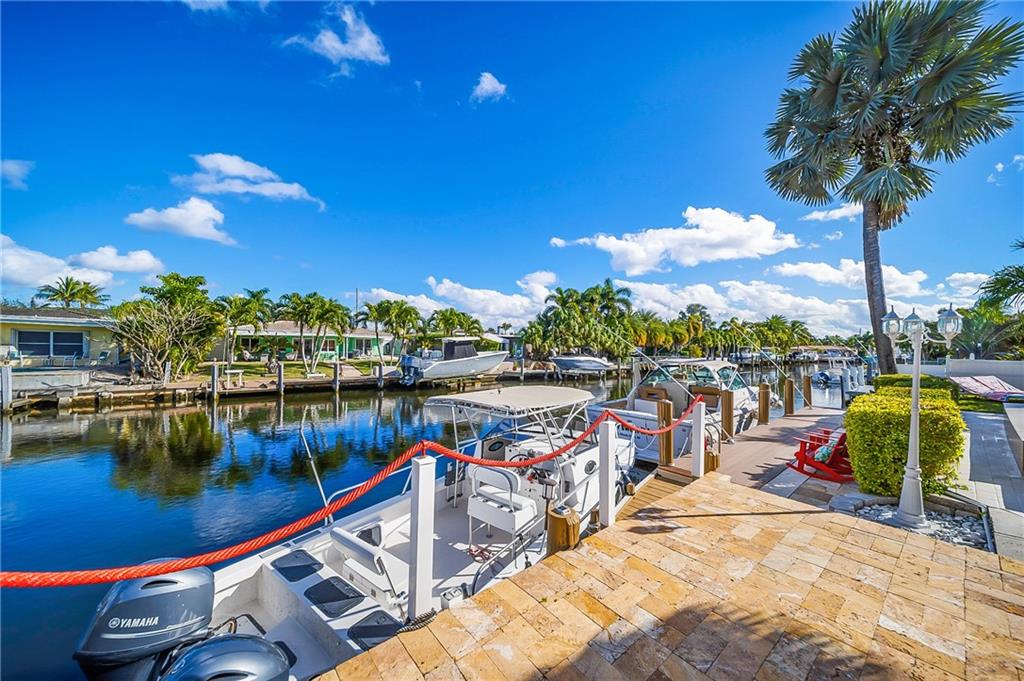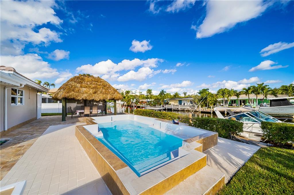 Fully furnished beautiful large home in quiet cul-de-sac street. This ultimate boater's paradise has a huge 75 feet waterfront with renovated dock that fits 2 boats and has ocean access. Open floor plan offers an amazing water view as soon as you enter the home. Split level has 2 master Bedrooms with own bathroom and walk-in closet. Enjoy outdoor entertainment in the spacious backyard and under the Tiki hut with brand new roof, Barrel Sauna, Jacuzzi, Pool and tropical landscaping. NEW: A/C, impact windows, impact Garage door, water heater and a lot more. Custom kitchen has marble countertop and a big island, separate laundry room, big storage space, 2 car garage. Not a flip house! This Home was upgraded and well maintained by snowbirds for many Years. Price reduced for quick sale!