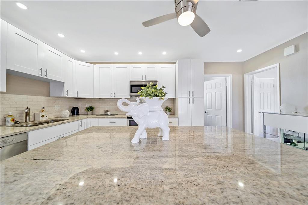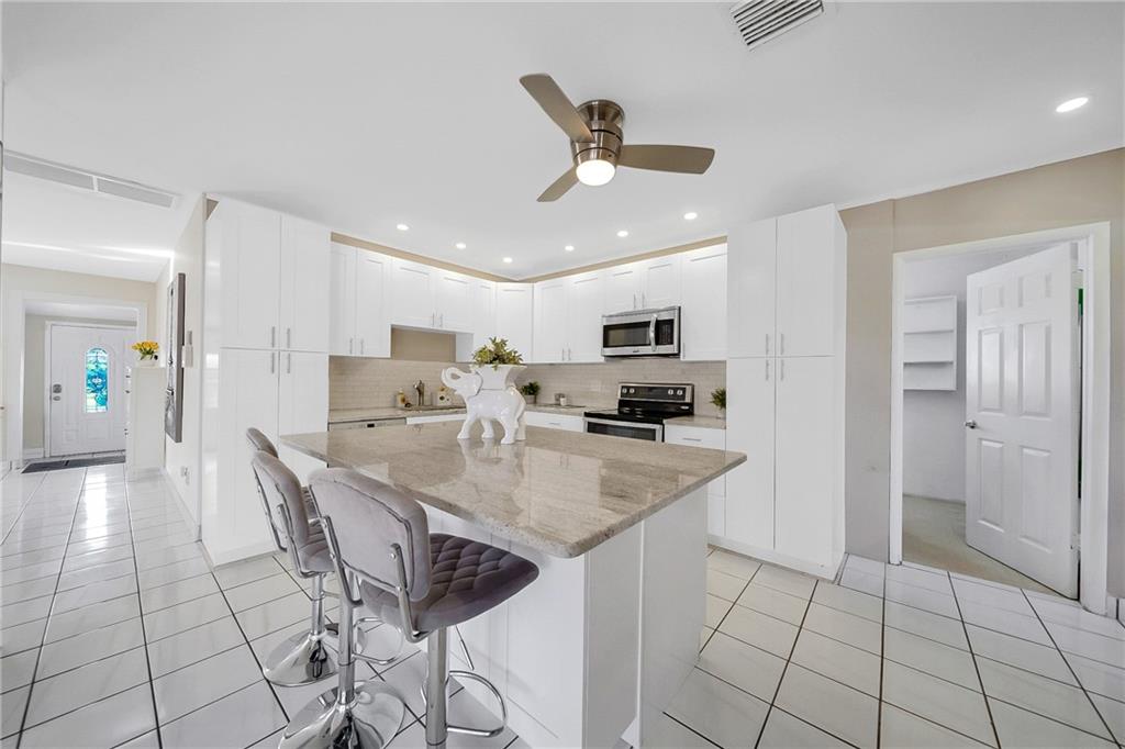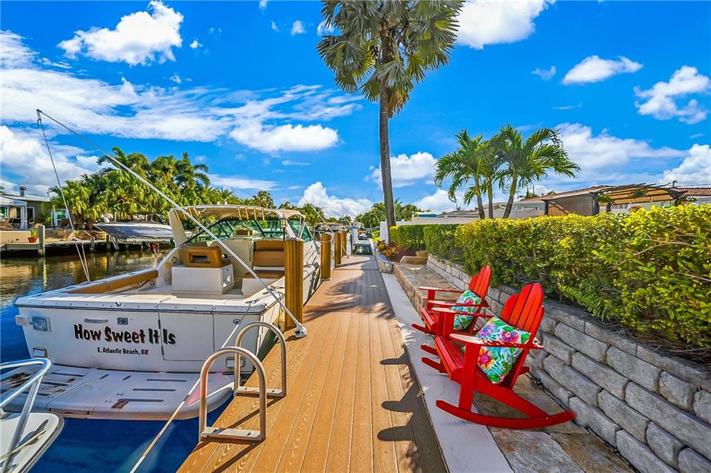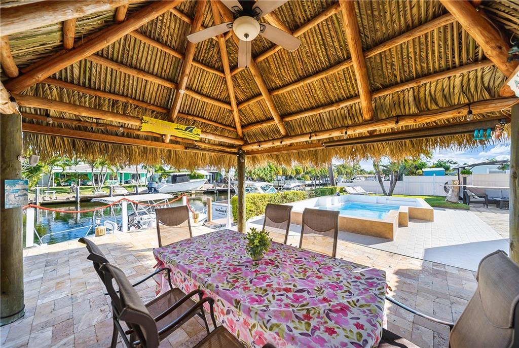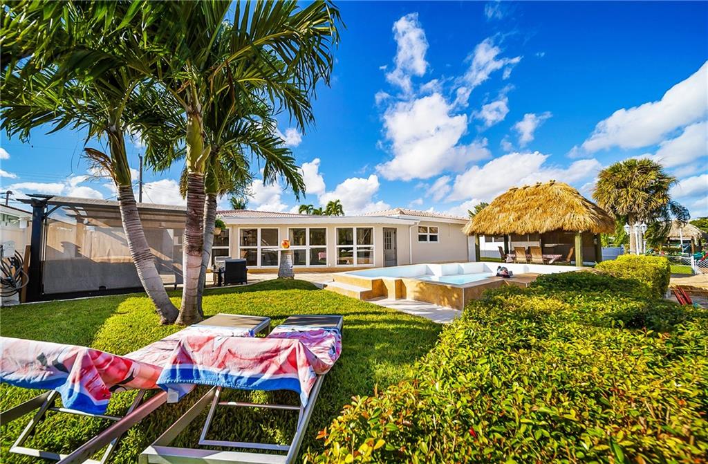 Fully furnished beautiful large home in quiet cul-de-sac street. This ultimate boater's paradise has a huge 75 feet waterfront with renovated dock that fits 2 boats and has ocean access. Open floor plan offers an amazing water view as soon as you enter the home. Split level has 2 master Bedrooms with own bathroom and walk-in closet. Enjoy outdoor entertainment in the spacious backyard and under the Tiki hut with brand new roof, Barrel Sauna, Jacuzzi, Pool and tropical landscaping. NEW: A/C, impact windows, impact Garage door, water heater and a lot more. Custom kitchen has marble countertop and a big island, separate laundry room, big storage space, 2 car garage. Not a flip house! This Home was upgraded and well maintained by snowbirds for many Years. Price reduced for quick sale!
