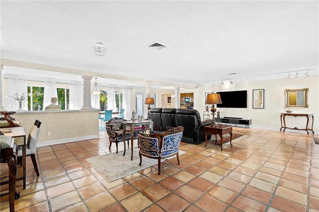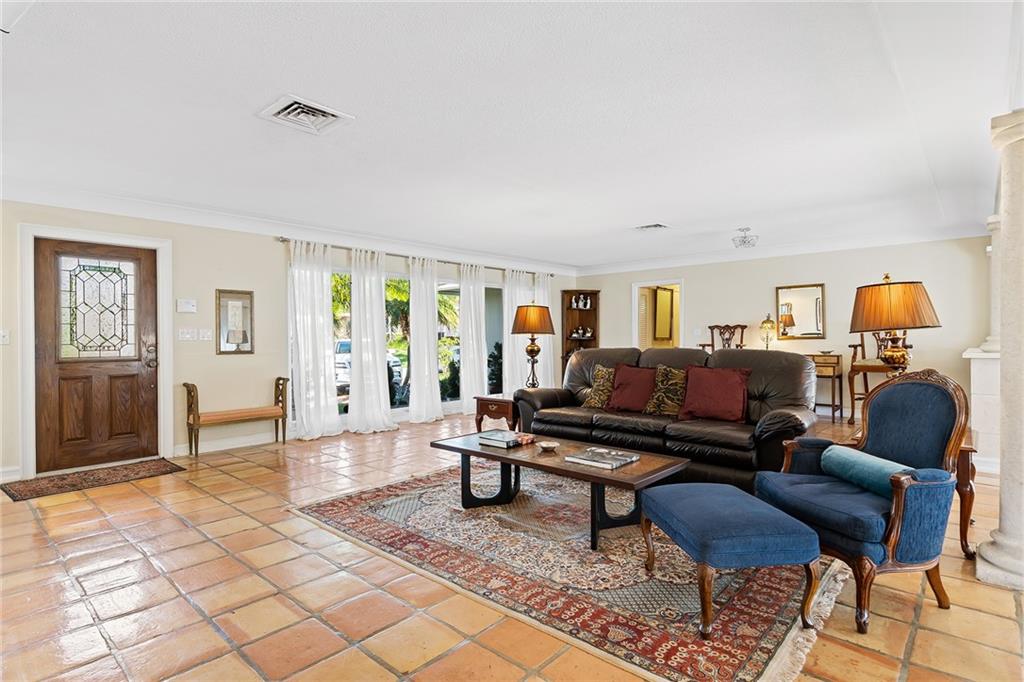 Premier Residence Located in the Charming Community of Coral Ridge Country Club! Split Floor-plan 3/3 ½ Bath, Lovely Curb Appeal w/Circular Driveway, Oversized Two-Car Garage w/Impact Doors and Epoxy Flooring. Spacious Living Area and Full Length Glass Windows Offer Tons of Natural Light and Peaceful Views of Pool Area. Backyard w/ Privacy Fence, Attractive Landscaping for Added Charm, Plus two Sitting areas and Lounge Area for Poolside Sun-Bathing! Primary Suite, Opens to Pool Area Via Double Doors, and Features a Beautiful Spa-Like Bath w/ Bain Ultra-Massaging Tub and Bay Window for Natural Light; Walk-in Closet and Custom Features Like Coffer Ceilings!