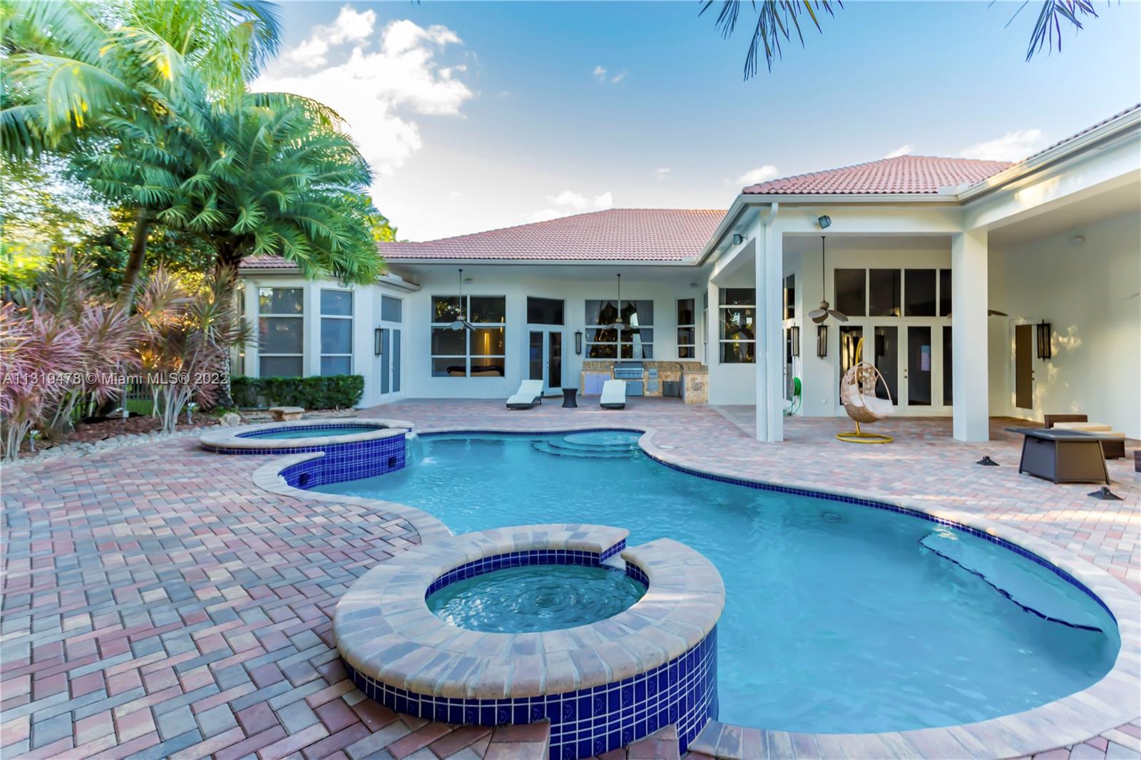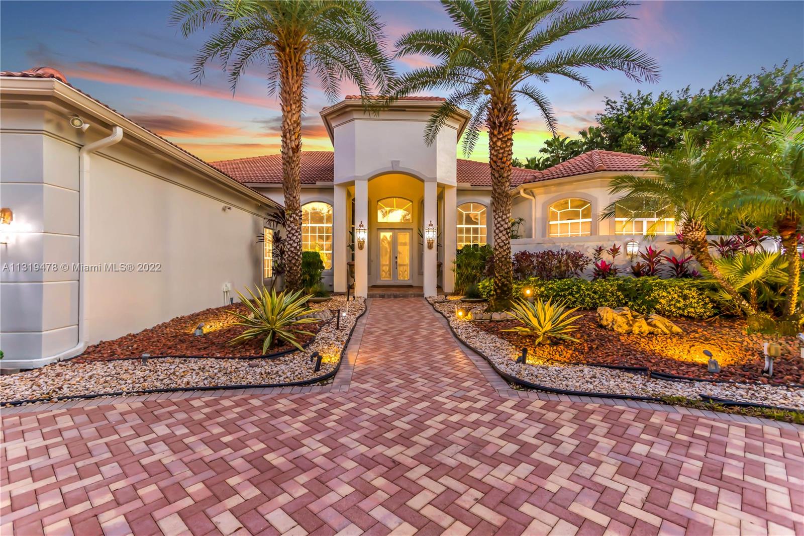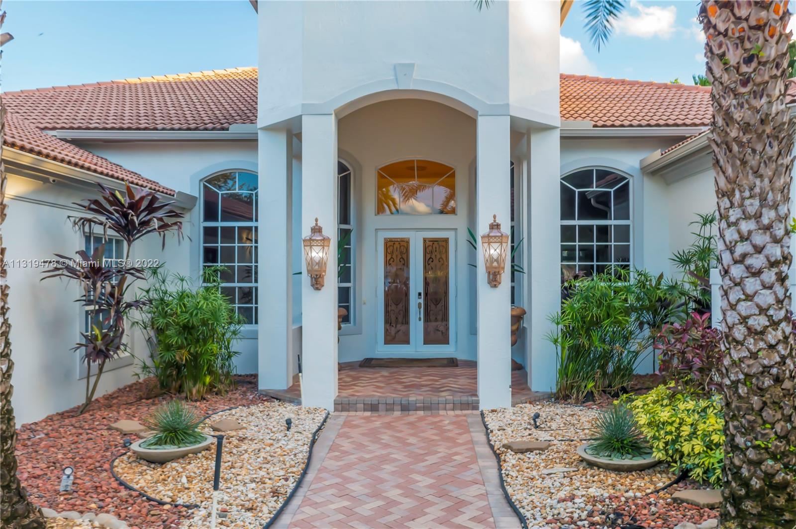 GORGEOUS ONE STORY HOME, ON 1 ACRE, LOCATED IN THE PRESTIGIOUS GUARD GATED COMMUNITY OF STONEBROOK ESTATES! THIS HOME FEATURES **IMPACT WINDOWS & DOORS**, **ALL 4 A/C'S NEW (2018)** TRIPLE SPLIT FLOOR PLAN W/SIX BEDROOMS, PLUS OFFICE, & OVER 6,300SQFT OF LIVING SPACE UNDER AIR. TWO OVERSIZED MASTER SUITES W/ SEPARATE SITTING ROOMS & CUSTOM CLOSETS. THE GOURMET KITCHEN IS COMPLETE WITH GRANITE COUNTERTOPS, DOUBLE OVEN, CENTER ISLAND & WALK-IN PANTRY. OTHER FEATURES INCLUDE: 2022 INTERIOR & EXTERIOR PAINTED, INTERIOR & EXTERIOR SURROUND SOUND, CAMERAS THROUGHOUT. CUSTOM SHADES ON WINDOWS, HUGE CIRCULAR DRIVEWAY. PRIVATE RESORT STYLE BACKYARD, LUSHLY LANDSCAPED FOR PRIVACY, W/AN OVERSIZED COVERED SITTING AREA, LARGE HEATED POOL W/SPA, CUSTOM OUTDOOR KITCHEN, FENCED-IN BACKYARD, ON THE LAKE.