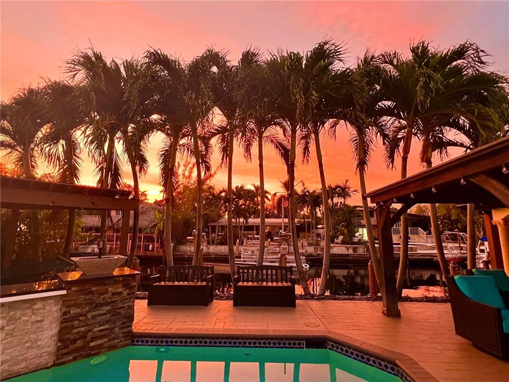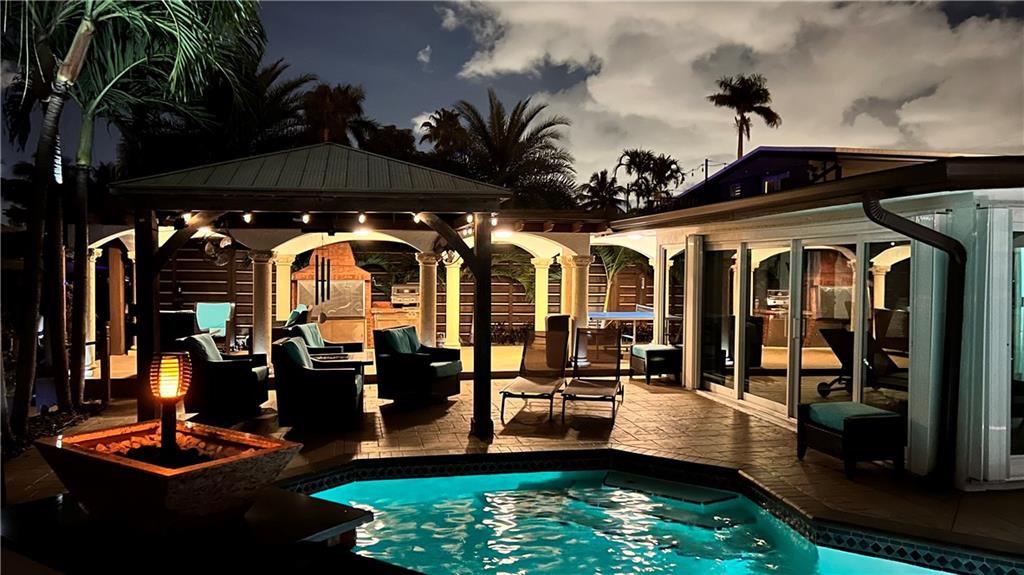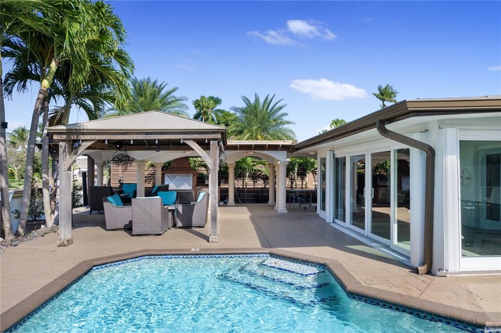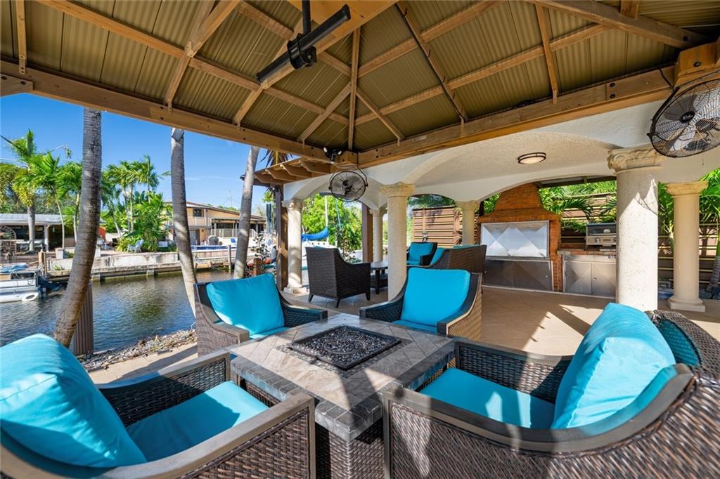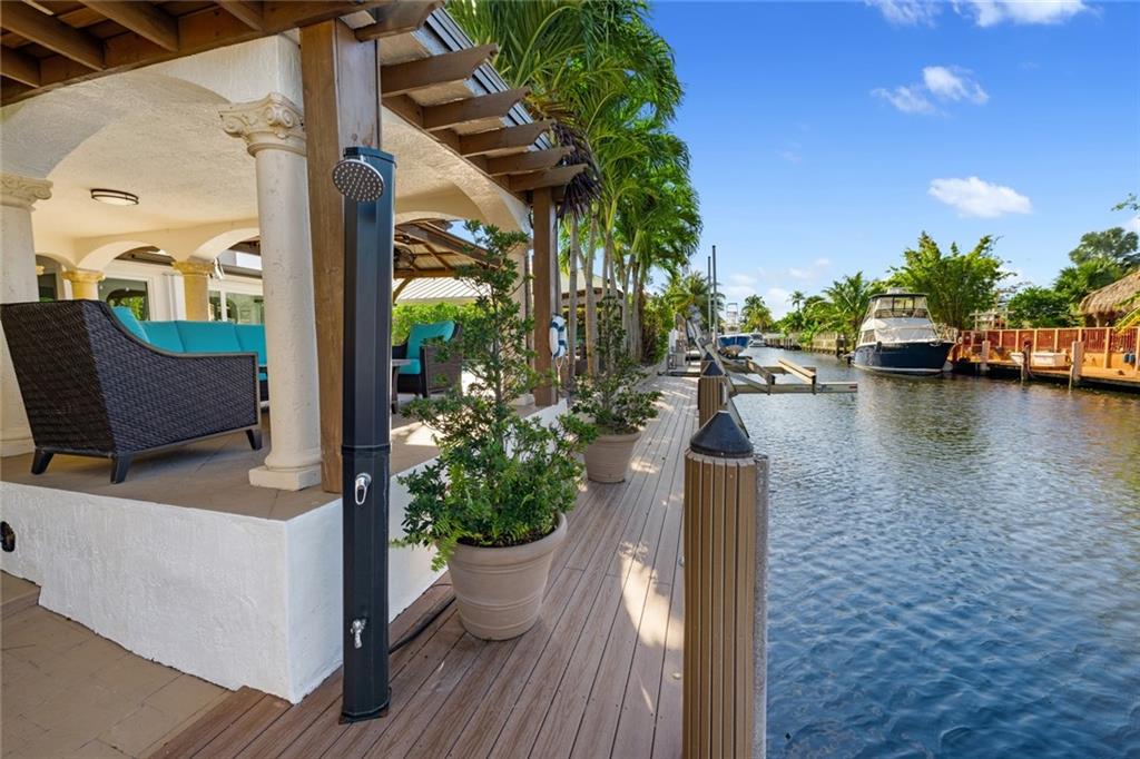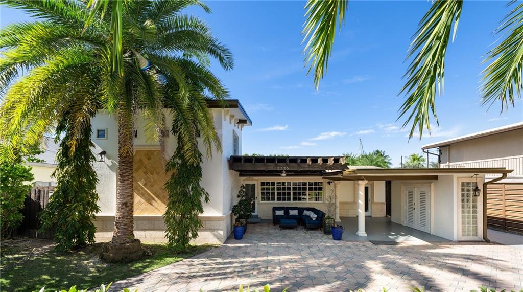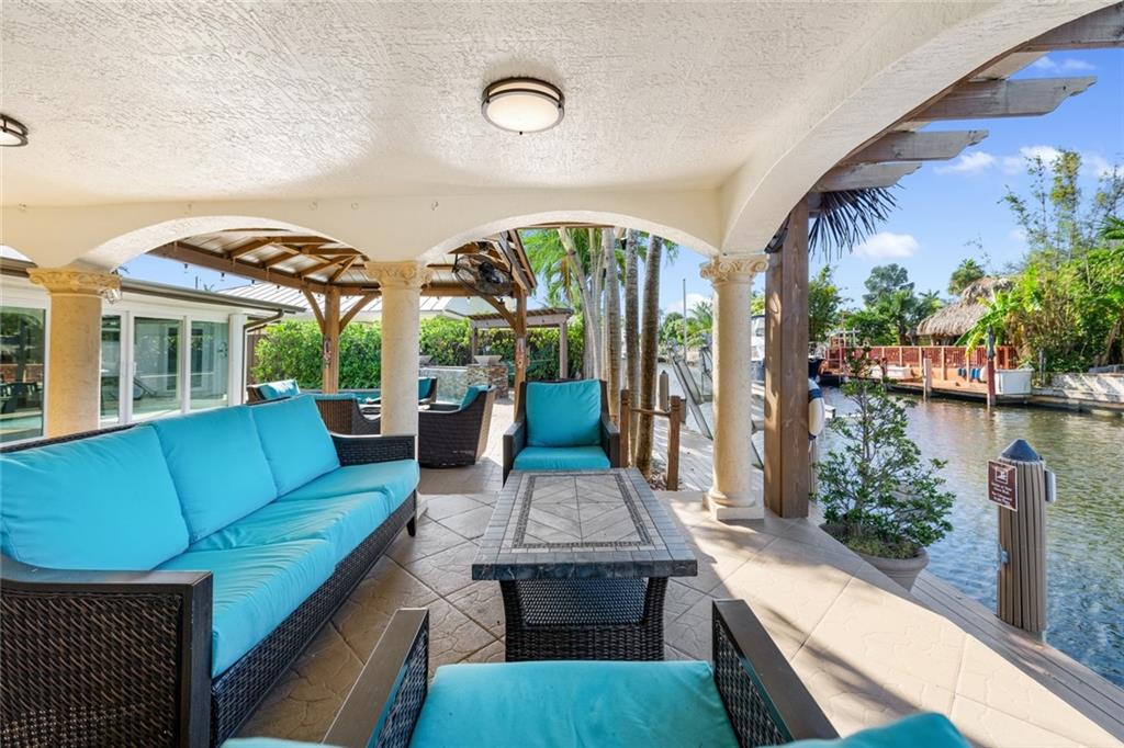 This is truly a great 65 ft waterfront home with deep-water! Offered fully furnished & turnkey with a fast closing option! Must be seen to appreciate the fun, mini resort vibe! The exterior offers a large covered front terrace, paved circular drive & incredibly private poolside with fountain, custom lighting, expansive covered entertaining terrace with built-in Summer kitchen, lounge & dining area plus additional gazebo to enjoy water views. You must see the interior to appreciate the large flowing entertaining areas, updated kitchen & baths. The bedrooms offer privacy with two levels & split floorplan. 4th bedroom makes a great potential office, baths are all updated. Amazing opportunity to enjoy this SoFlo waterfront fully furnished & hassle free retreat this Winter!