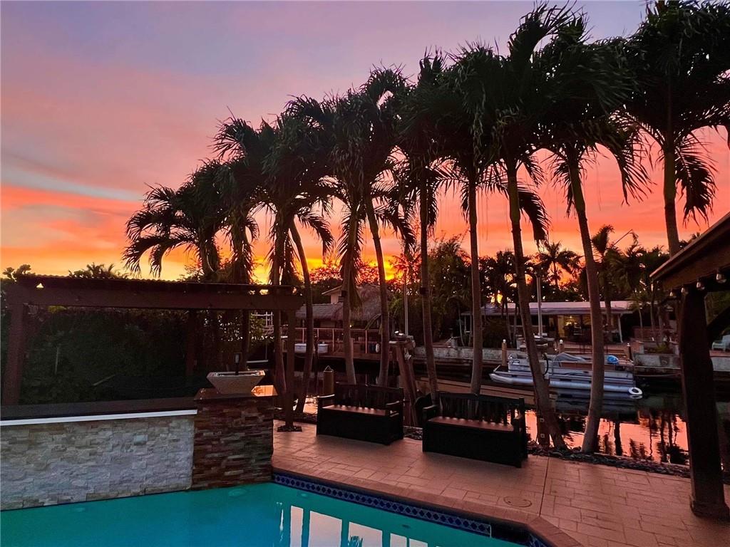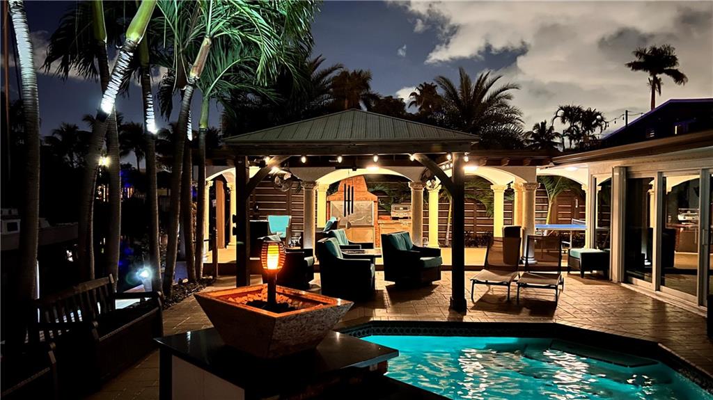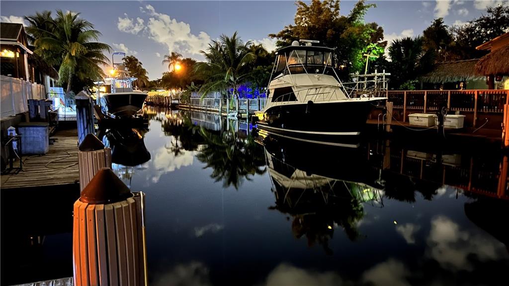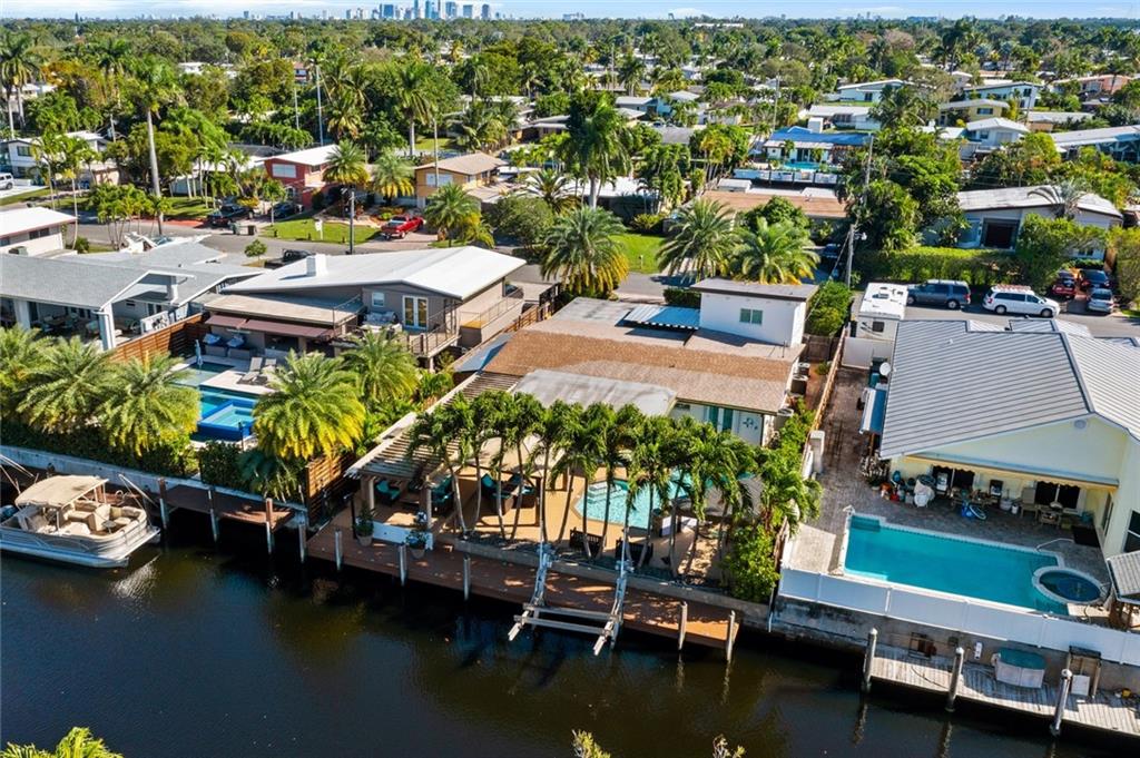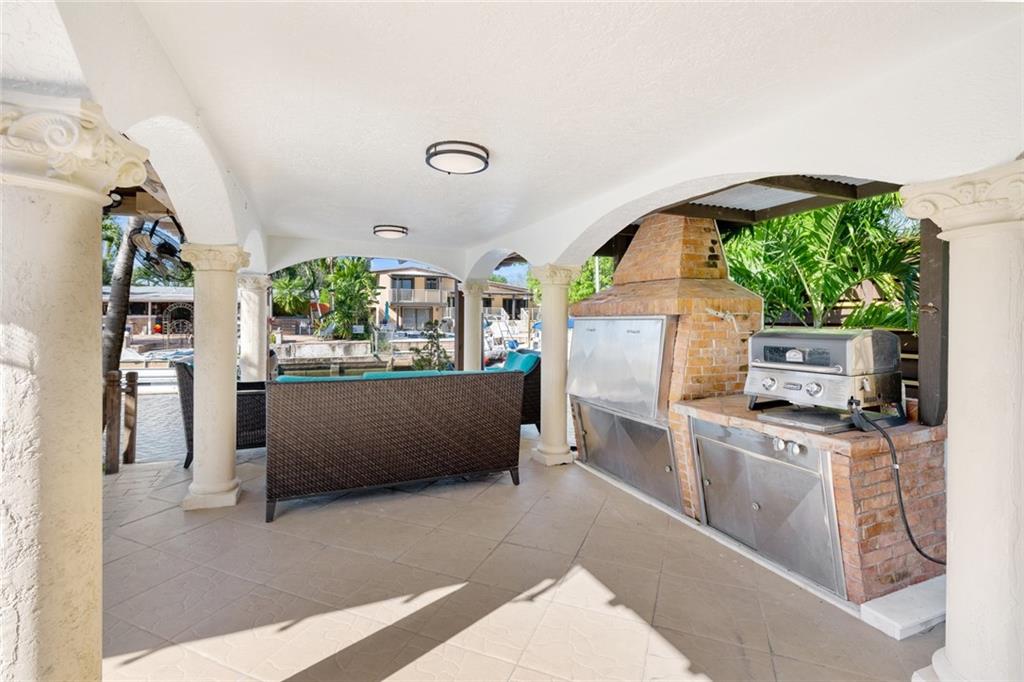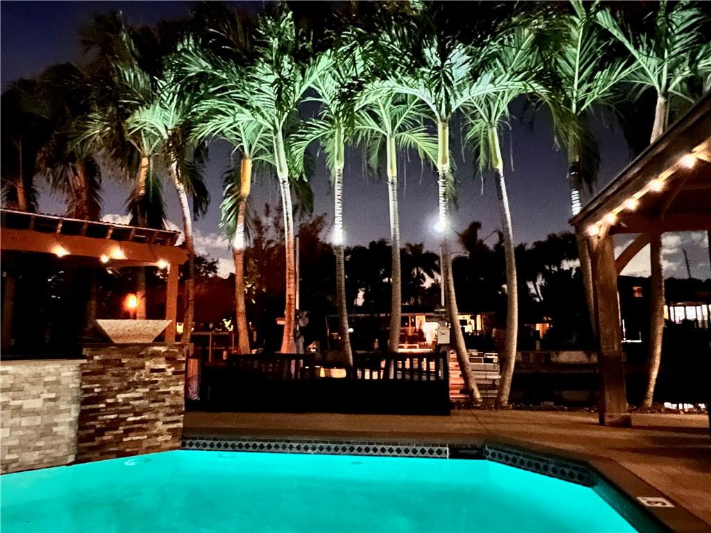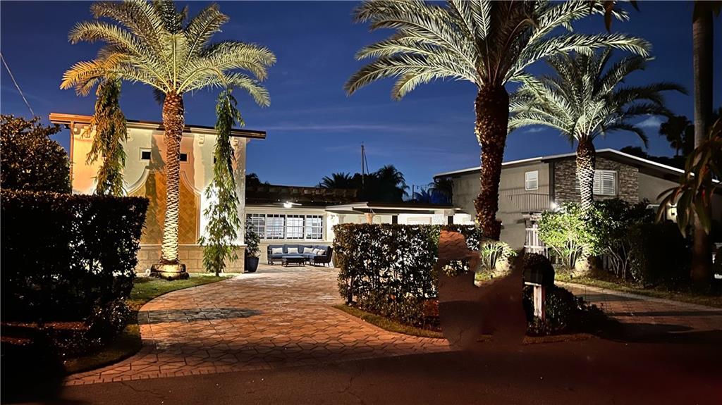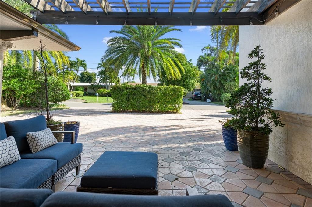 This is truly a great 65 ft waterfront home with deep-water! Offered fully furnished & turnkey with a fast closing option! Must be seen to appreciate the fun, mini resort vibe! The exterior offers a large covered front terrace, paved circular drive & incredibly private poolside with fountain, custom lighting, expansive covered entertaining terrace with built-in Summer kitchen, lounge & dining area plus additional gazebo to enjoy water views. You must see the interior to appreciate the large flowing entertaining areas, updated kitchen & baths. The bedrooms offer privacy with two levels & split floorplan. 4th bedroom makes a great potential office, baths are all updated. Amazing opportunity to enjoy this SoFlo waterfront fully furnished & hassle free retreat this Winter!