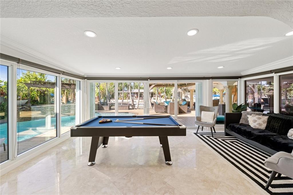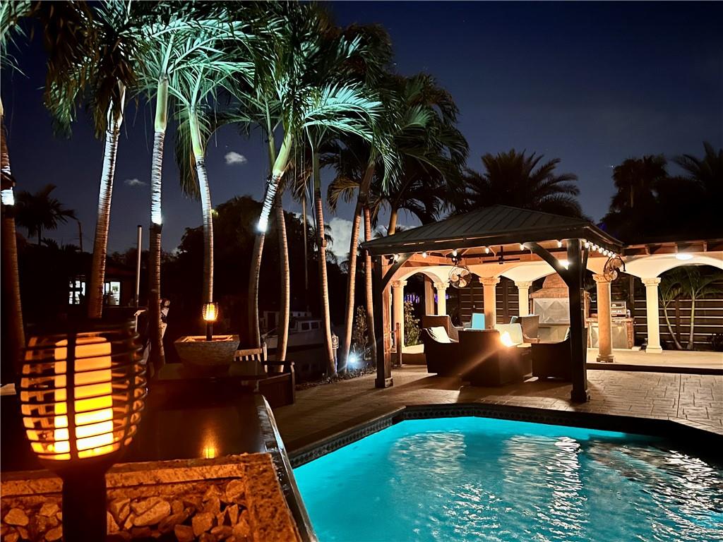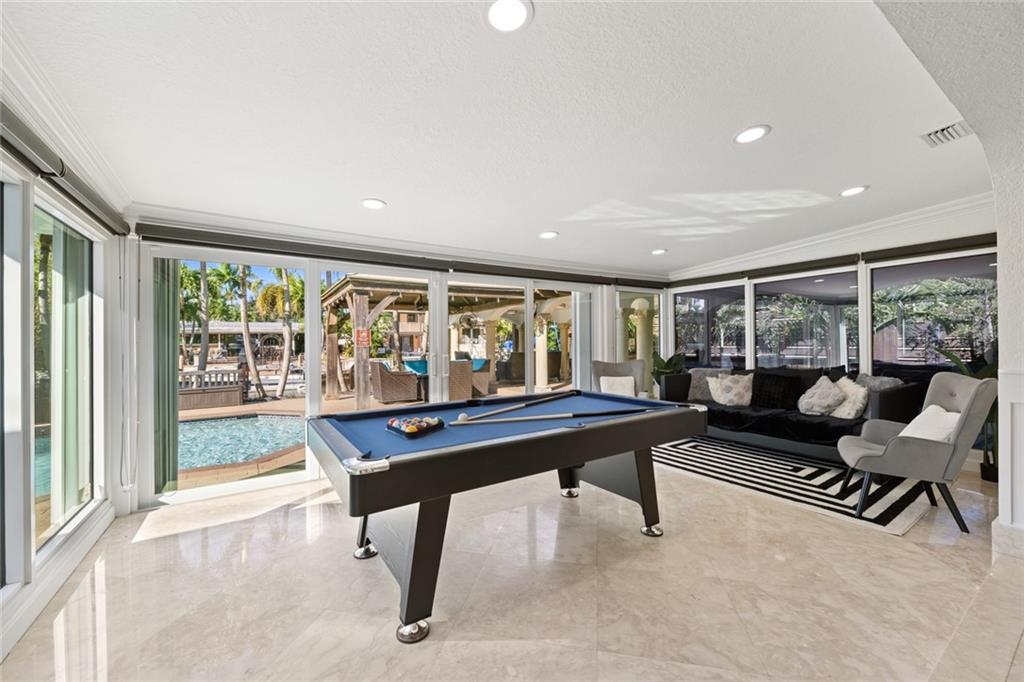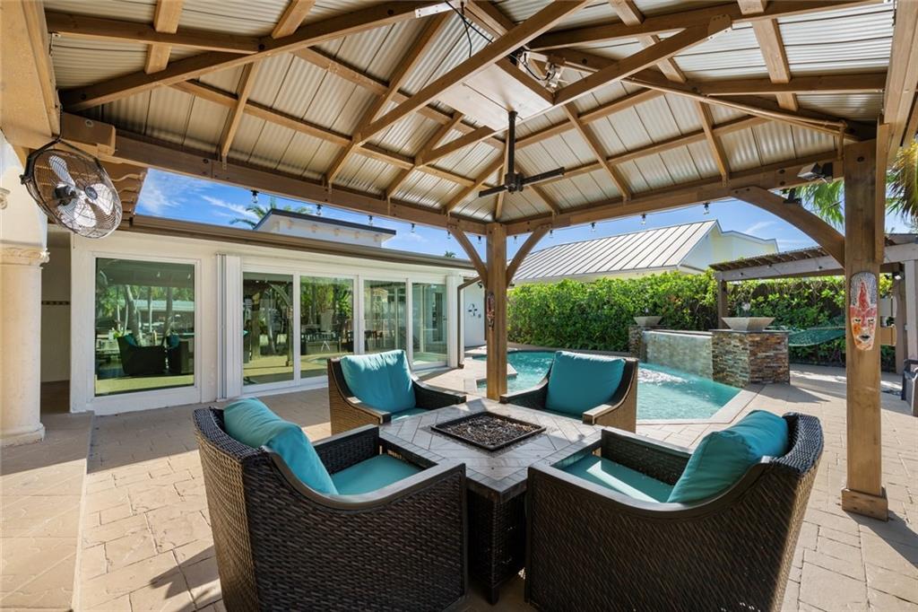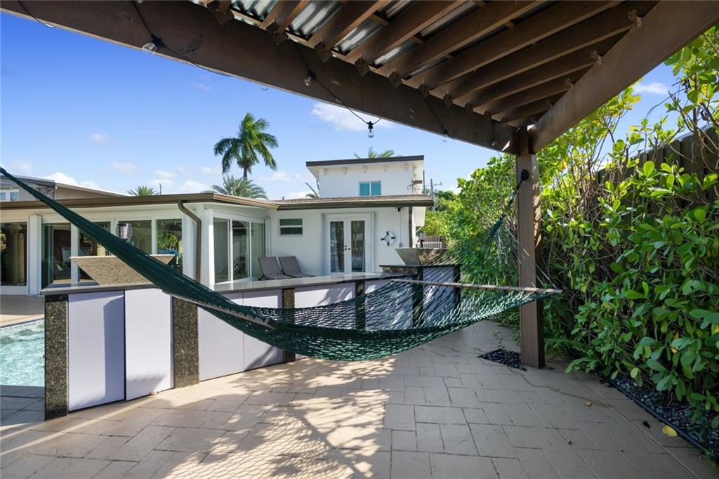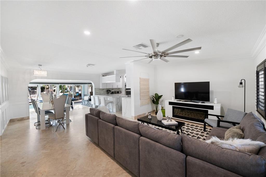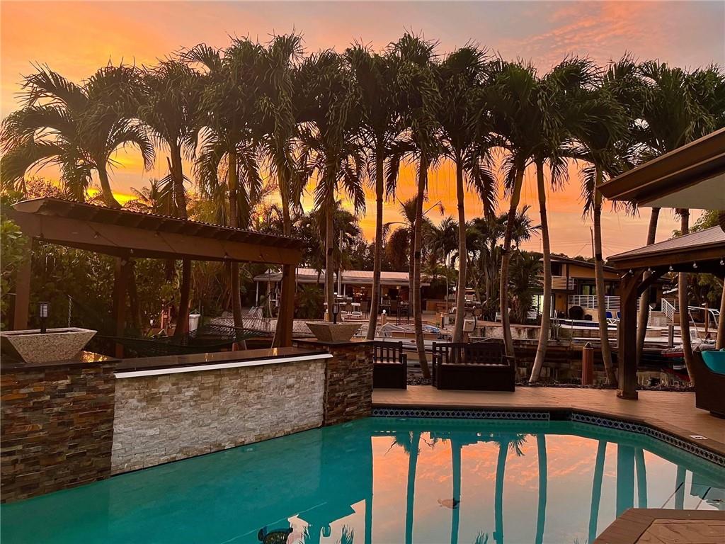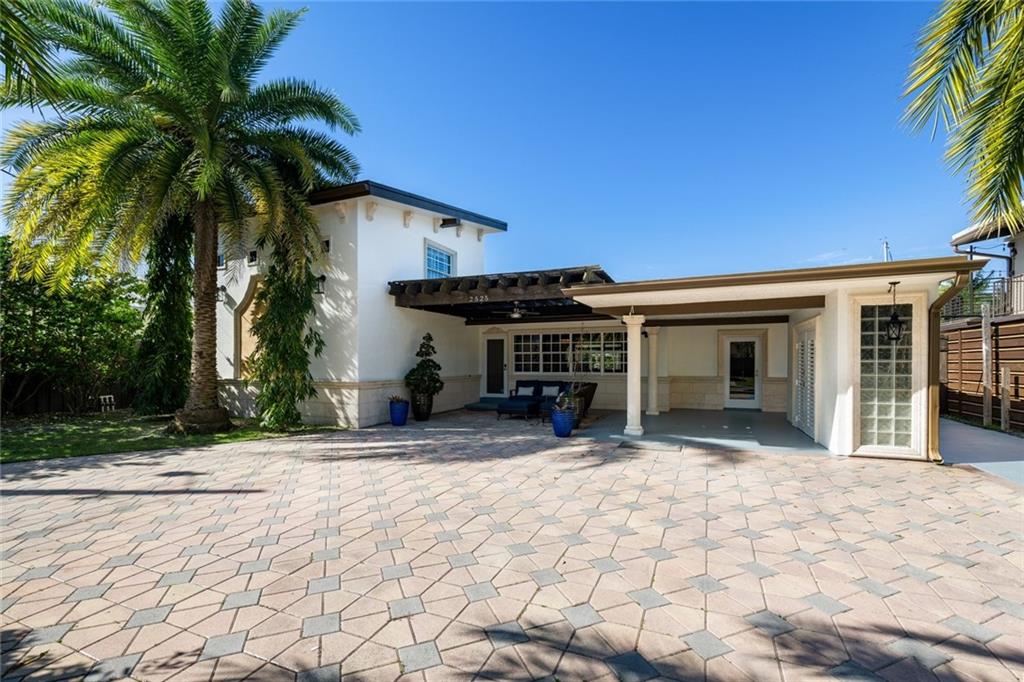 This is truly a great 65 ft waterfront home with deep-water! Offered fully furnished & turnkey with a fast closing option! Must be seen to appreciate the fun, mini resort vibe! The exterior offers a large covered front terrace, paved circular drive & incredibly private poolside with fountain, custom lighting, expansive covered entertaining terrace with built-in Summer kitchen, lounge & dining area plus additional gazebo to enjoy water views. You must see the interior to appreciate the large flowing entertaining areas, updated kitchen & baths. The bedrooms offer privacy with two levels & split floorplan. 4th bedroom makes a great potential office, baths are all updated. Amazing opportunity to enjoy this SoFlo waterfront fully furnished & hassle free retreat this Winter!