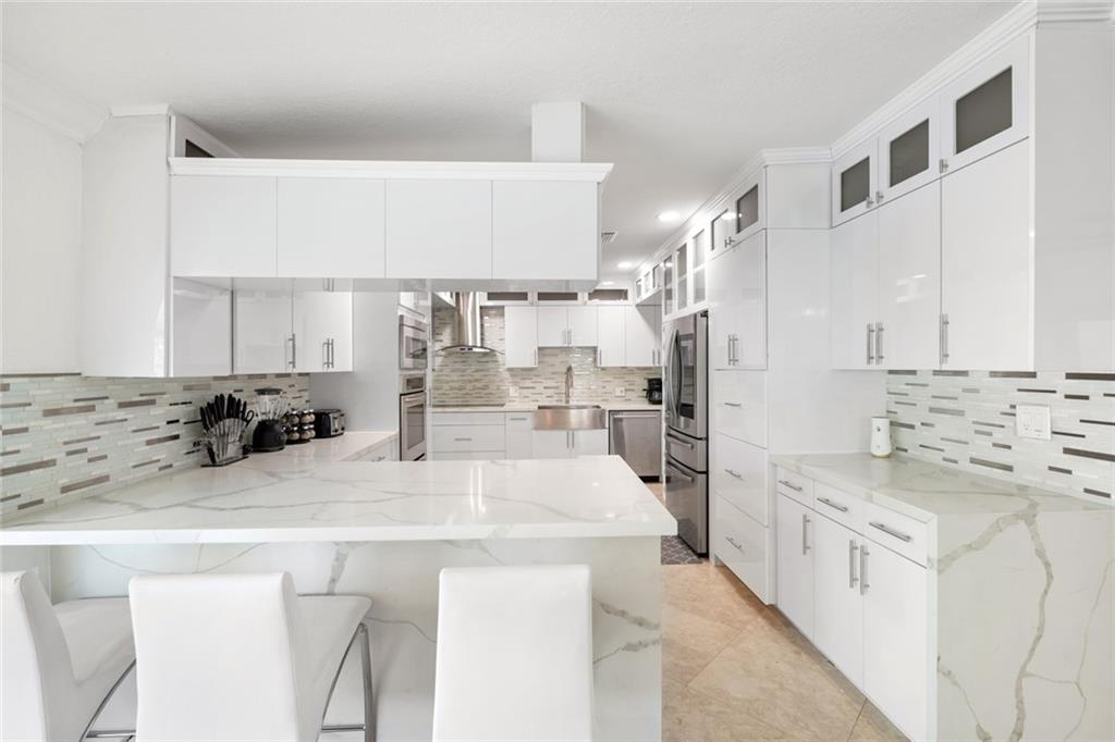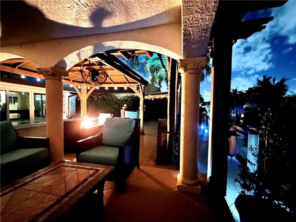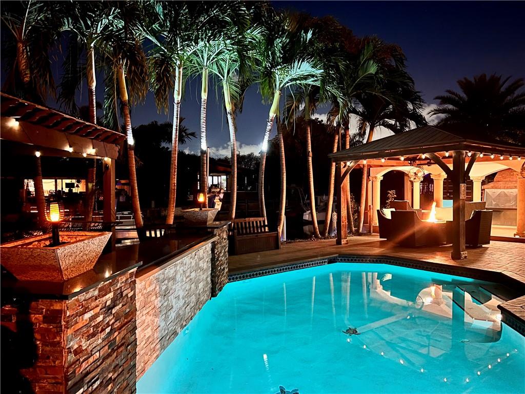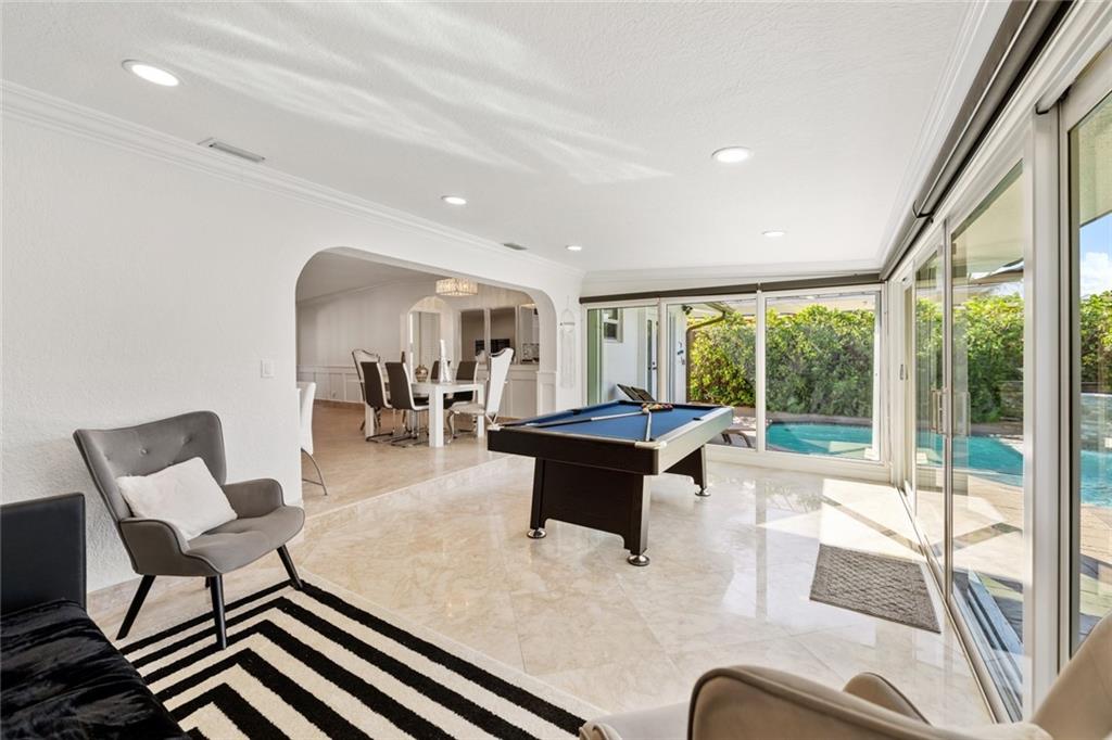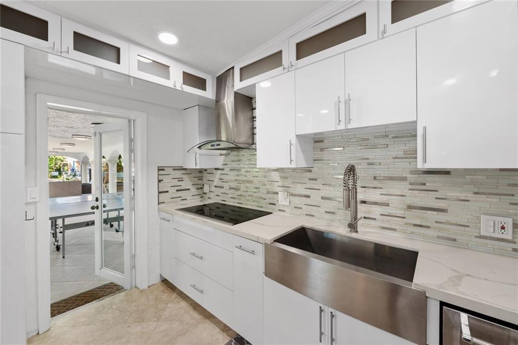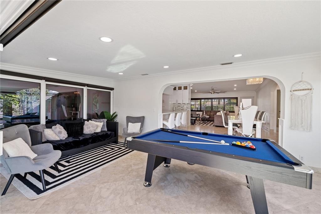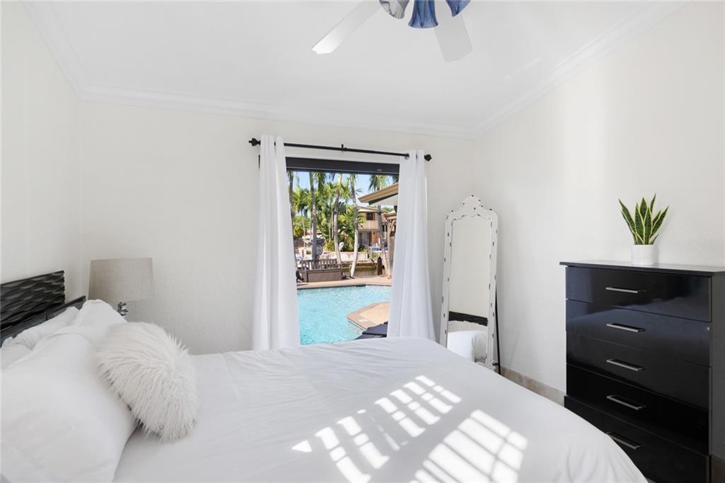 This is truly a great 65 ft waterfront home with deep-water! Offered fully furnished & turnkey with a fast closing option! Must be seen to appreciate the fun, mini resort vibe! The exterior offers a large covered front terrace, paved circular drive & incredibly private poolside with fountain, custom lighting, expansive covered entertaining terrace with built-in Summer kitchen, lounge & dining area plus additional gazebo to enjoy water views. You must see the interior to appreciate the large flowing entertaining areas, updated kitchen & baths. The bedrooms offer privacy with two levels & split floorplan. 4th bedroom makes a great potential office, baths are all updated. Amazing opportunity to enjoy this SoFlo waterfront fully furnished & hassle free retreat this Winter!