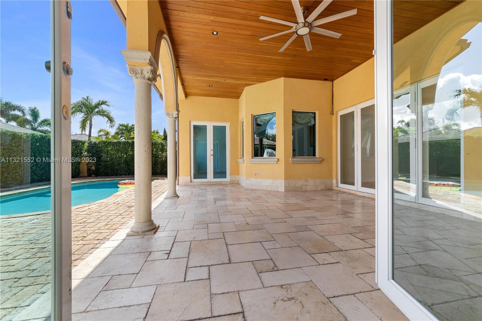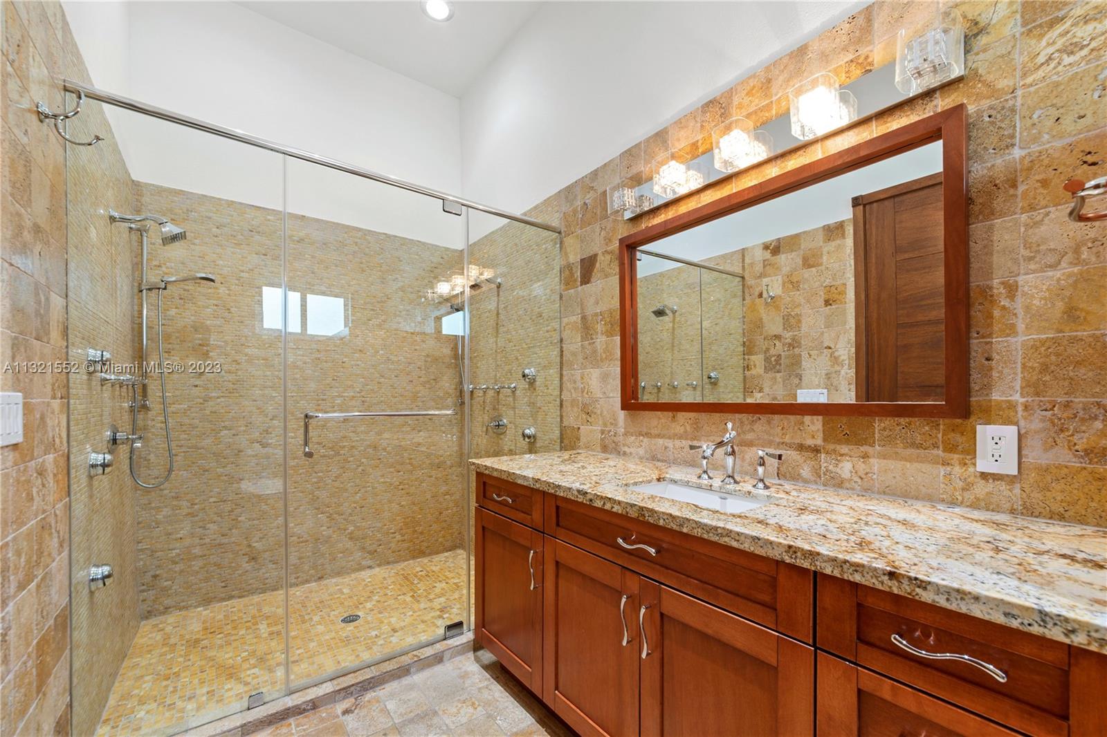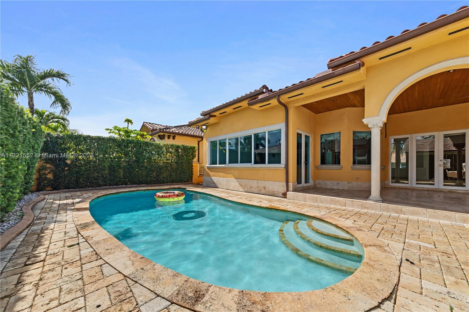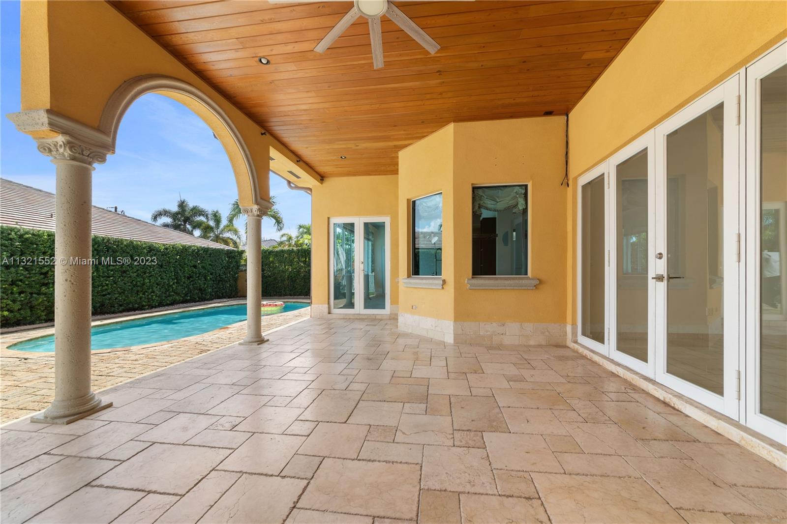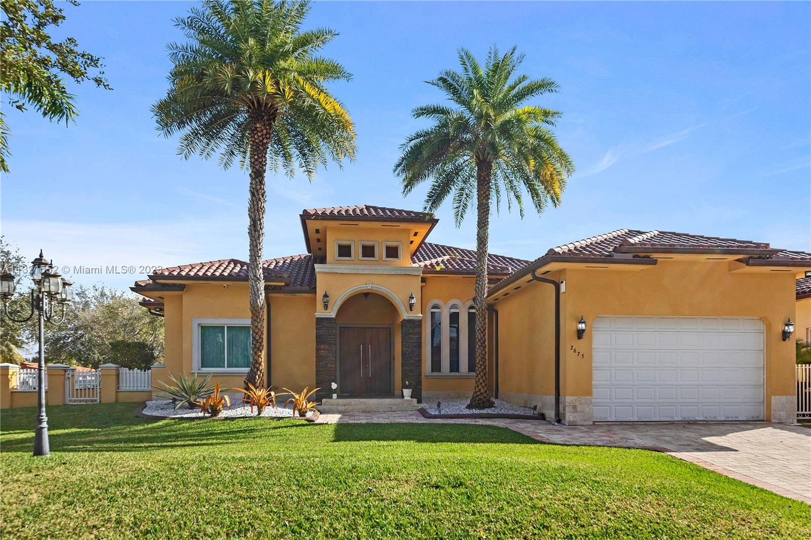 Beautiful, 4 bed/3 bath, single family home located on a large, corner lot in the Vanderbilt Park area of Doral. Home is set back on a hill with double doors opening to a spacious living area with high ceilings and there is a separate dining, kitchen and family room. Kitchen is finished with granite countertop, lots of windows, wood cabinetry and stainless steel appliances equipped with built in wall oven, microwave and warming drawer with wolf range and subzero refrigerator. Master bedroom has a separate sitting area and ensuite bath/closet, plenty of storage space and leads out to the pool/garden. Top of the line security system, flood lights, surround sound and covered patio area with pool. Move in ready/space for a boat. Close to A-rated schools, highways and restaurants.