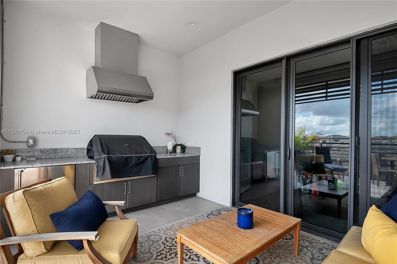 Best of Downtown Doral awaits you. Tri-level townhouse with private 2 car garage, Enjoy your summer kitchen on the rooftop terrace open for outdoor dining and adjacent to family room on 3rd level. Guest suite and 1/2 bath also on 3rd level. Huge Primary Suite located on 2nd level. Large bathroom with double sinks, shower, separate tub and bidet. Walk in closet with custom California closet organizers. Laundry room and 2 additional bedrooms all on level 2. First floor kitchen opens to living/dining area with Guest 1/2 bath. Tile floors throughout, upgraded appliances, Natural gas water heater, range/oven and summer kitchen. Impact windows and doors, All blinds including "blackout". Walk to Downtown Doral. Smart Home controls.Too many upgrades to mention. Shows like a model, Move In Ready