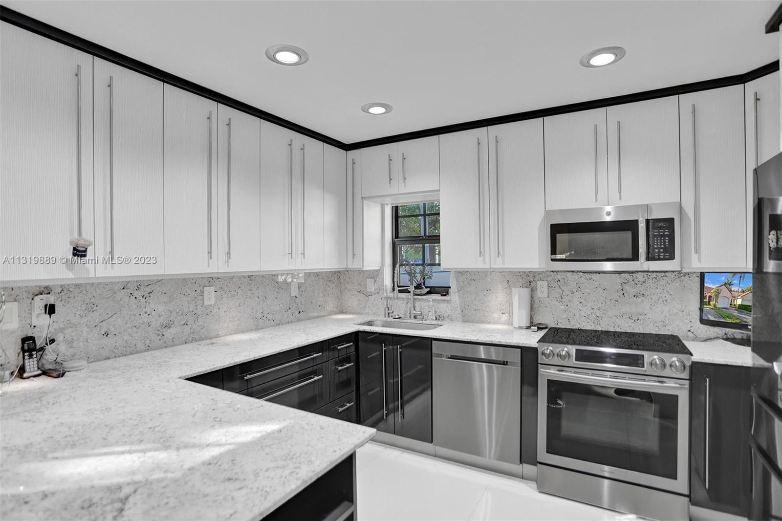WOW! Spectacular Renovated One Story Home in Waterways in Aventura. Some of the finest finishes include large white porcelain tile floors in all living areas. Custom lighting, all new white kitchen and contemporary white and silver bathrooms. Large yard and terraces, and one car garage with air-conditioning, built-in cabinets, bed + window could be 4th bedroom and park in driveway. Water fiberoptic, internet + cable included.