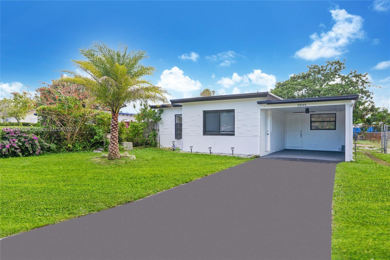 Charming, move in ready home located in the heart of Hollywood only 1 mile from the hard rock hotel, minutes from Hard rock stadium and a hop and skip away from the beach. This freshly painted one-story home is in immaculate condition! It features an open floorplan, ceramic floors throughout the house, newer appliances, a beautiful firepit, patio, a large driveway, and a carport that can be used as a lounging area or for a vehicle. Entertain in the backyard in your expansive, fully-fenced private backyard which has room for an addition and for a pool. Whether you want to enjoy your large backyard for all your toys, or relax and host a bbq and enjoy your firepit this home offers all you need and all the space to enjoy and build your dream backyard. NO HOA!
