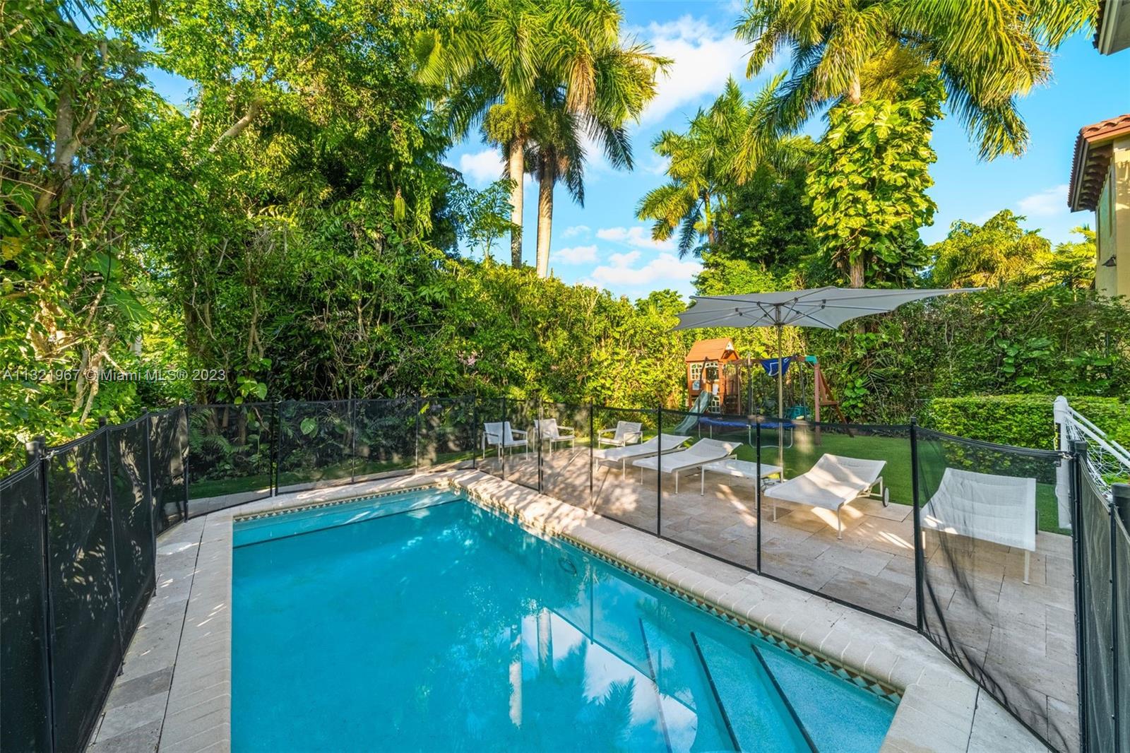 Located in the heart of Coral Gables, this 4-bedroom, 3-bathroom 2,861 SF home offers a spacious floorplan with oversized rooms and high ceilings. The impeccably designed two-story residence has an open layout with a grand foyer entry leading to the living room and formal dining room. The beautiful kitchen overlooks a family room, with views of the stunning backyard. The second-floor primary suite features a spectacular and sizeable terrace overlooking the pool and garden. The outdoor space is perfect for entertaining, with an expansive covered patio, built-in barbeque, large pool, artificial turf and plenty of landscaping for optimal privacy. Additional features include impact windows and doors. Close to Merrick Park, Miracle Mile and the Biltmore Hotel and golf course.