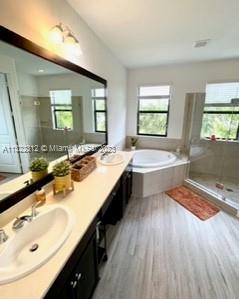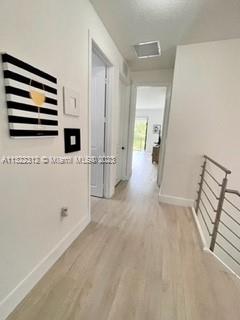Beautiful Bright and spacious Single Family in the gated community of Bonterra with 3 bed and 2.5 bath Living, dining, kitchen, half bath, open brick patio and two car garage (inside) and other two cars (outside) on the first floor. 3 bedrooms and 2 bathrooms on the second floor. Large Master bedroom with balcony, master bath has shower and tub with double vanity. His and Her big walk-in closets. Bedrooms 2 & 3 shares a bathroom (Jack & Jill) with double vanity. Washer and Dryer. Impact windows and doors through the property. Tile downstairs and laminated floors upstairs. Updated blinds, security system in place; beautiful landscaping. Conveniently located with easy access to I-75, Turnpike and 826. Gated community with great amenities including a 24 hour guard at gate.