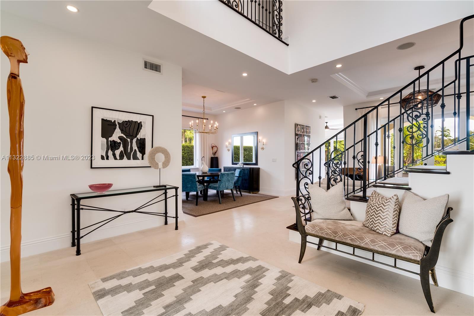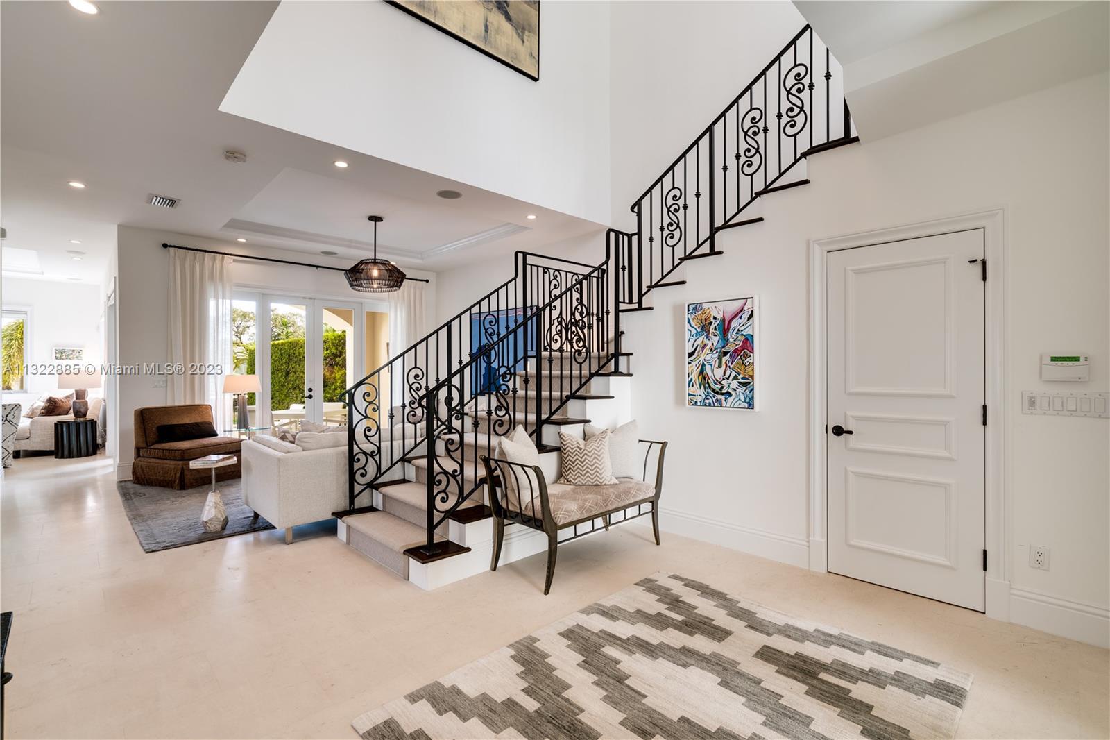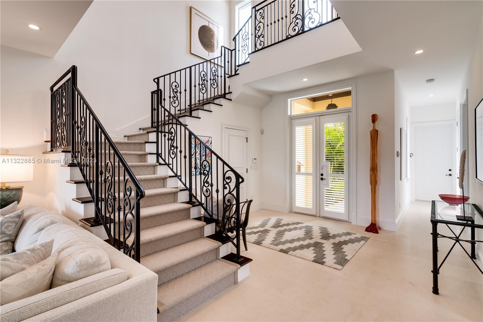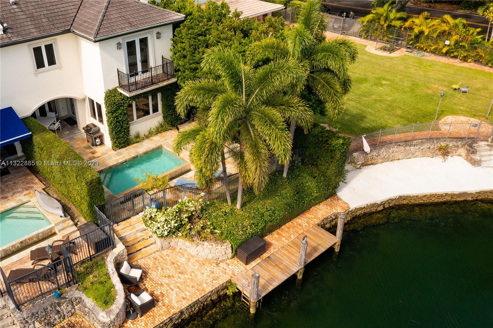 Absolutely stunning Coral Gables waterfront property offers a luxurious and private retreat. This 4 bed/4.5 bath 2-story home has upscale designer finishes throughout and is equipped with an elevator for easy living. The covered patio, pool & enticing private dock are perfect for watching the manatees at dawn or dusk. The kitchen boasts a 6-burner Viking gas range as well as a Sub-zero Refrigerator and Miele dishwasher, inviting cooking and entertaining as it integrates with the family room. The primary suite w/wood floors, large walk-in closet, separate sitting area, and private balcony overlook the waterway. The sublime primary bath features Carrera marble, double sinks w/separate tub & shower with Waterworks fixtures. Walking distance to Riviera Country Club. A Very Special Home.