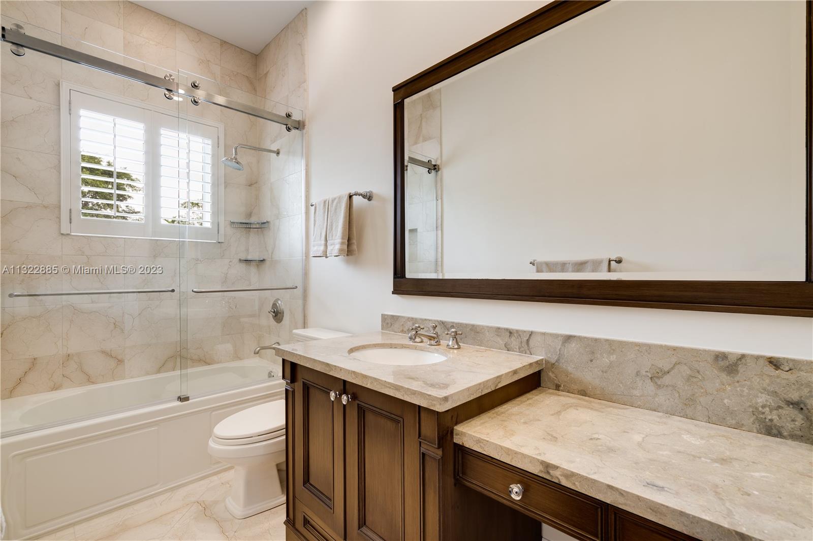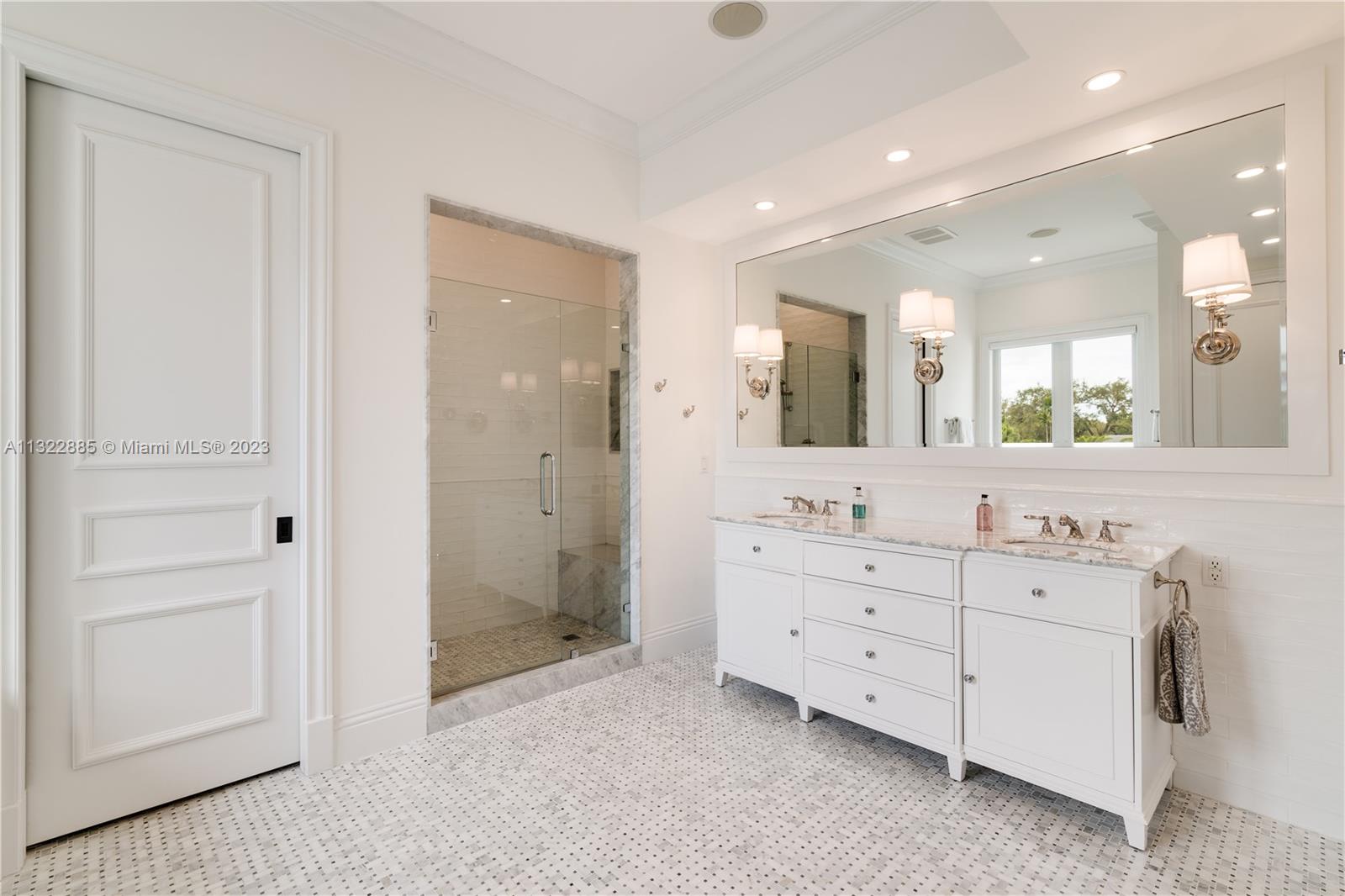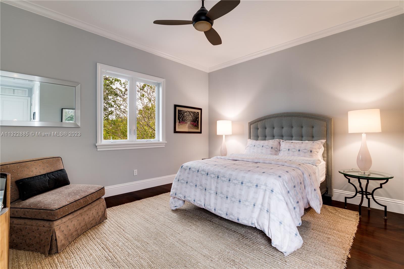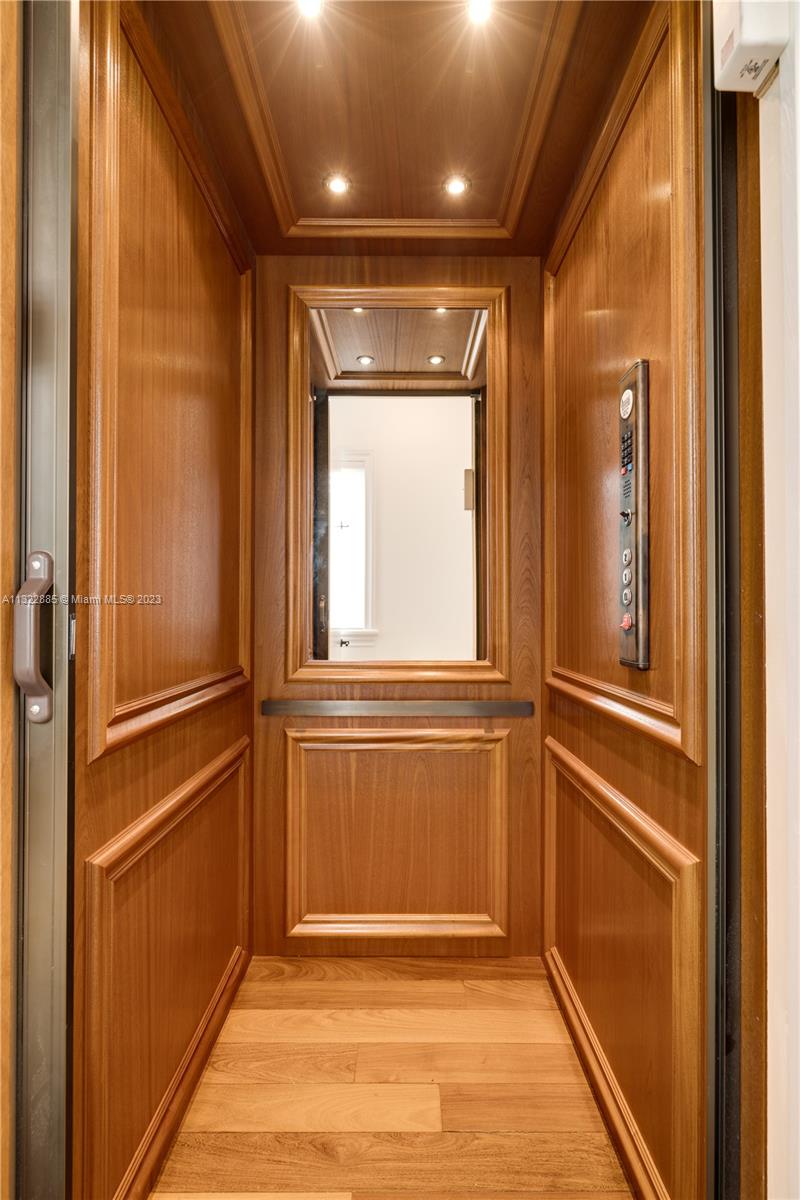 Absolutely stunning Coral Gables waterfront property offers a luxurious and private retreat. This 4 bed/4.5 bath 2-story home has upscale designer finishes throughout and is equipped with an elevator for easy living. The covered patio, pool & enticing private dock are perfect for watching the manatees at dawn or dusk. The kitchen boasts a 6-burner Viking gas range as well as a Sub-zero Refrigerator and Miele dishwasher, inviting cooking and entertaining as it integrates with the family room. The primary suite w/wood floors, large walk-in closet, separate sitting area, and private balcony overlook the waterway. The sublime primary bath features Carrera marble, double sinks w/separate tub & shower with Waterworks fixtures. Walking distance to Riviera Country Club. A Very Special Home.