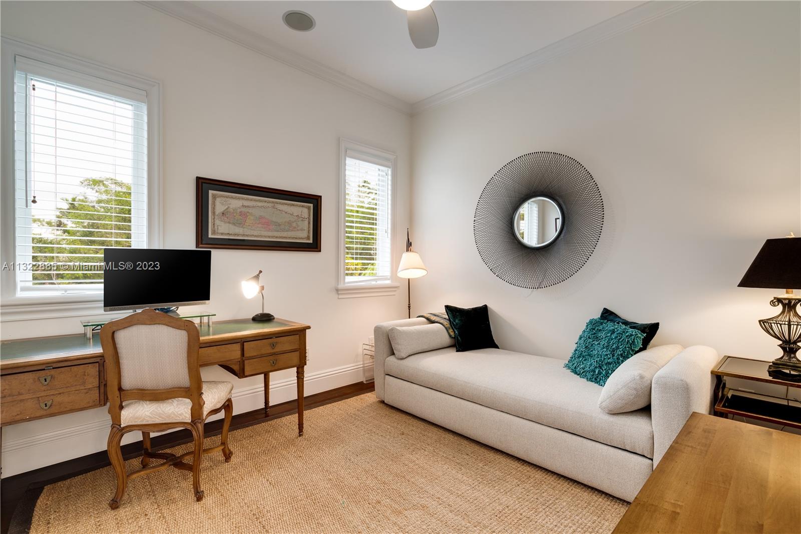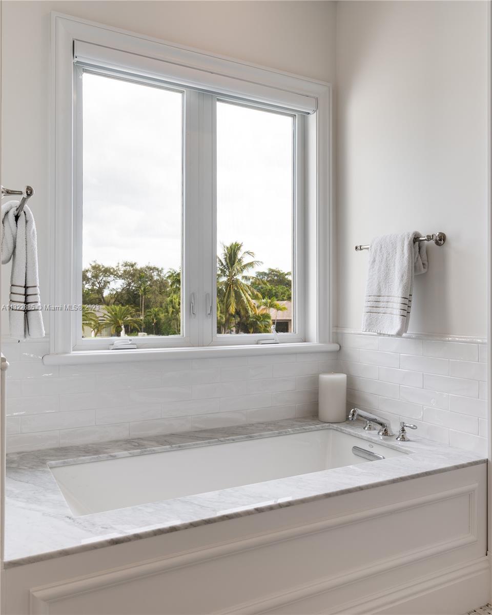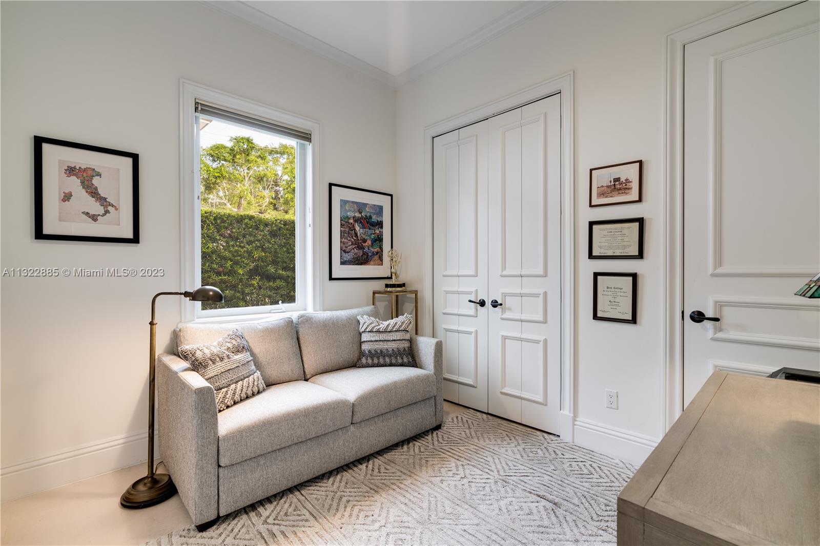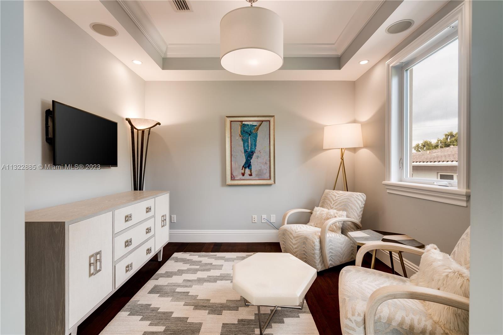 Absolutely stunning Coral Gables waterfront property offers a luxurious and private retreat. This 4 bed/4.5 bath 2-story home has upscale designer finishes throughout and is equipped with an elevator for easy living. The covered patio, pool & enticing private dock are perfect for watching the manatees at dawn or dusk. The kitchen boasts a 6-burner Viking gas range as well as a Sub-zero Refrigerator and Miele dishwasher, inviting cooking and entertaining as it integrates with the family room. The primary suite w/wood floors, large walk-in closet, separate sitting area, and private balcony overlook the waterway. The sublime primary bath features Carrera marble, double sinks w/separate tub & shower with Waterworks fixtures. Walking distance to Riviera Country Club. A Very Special Home.