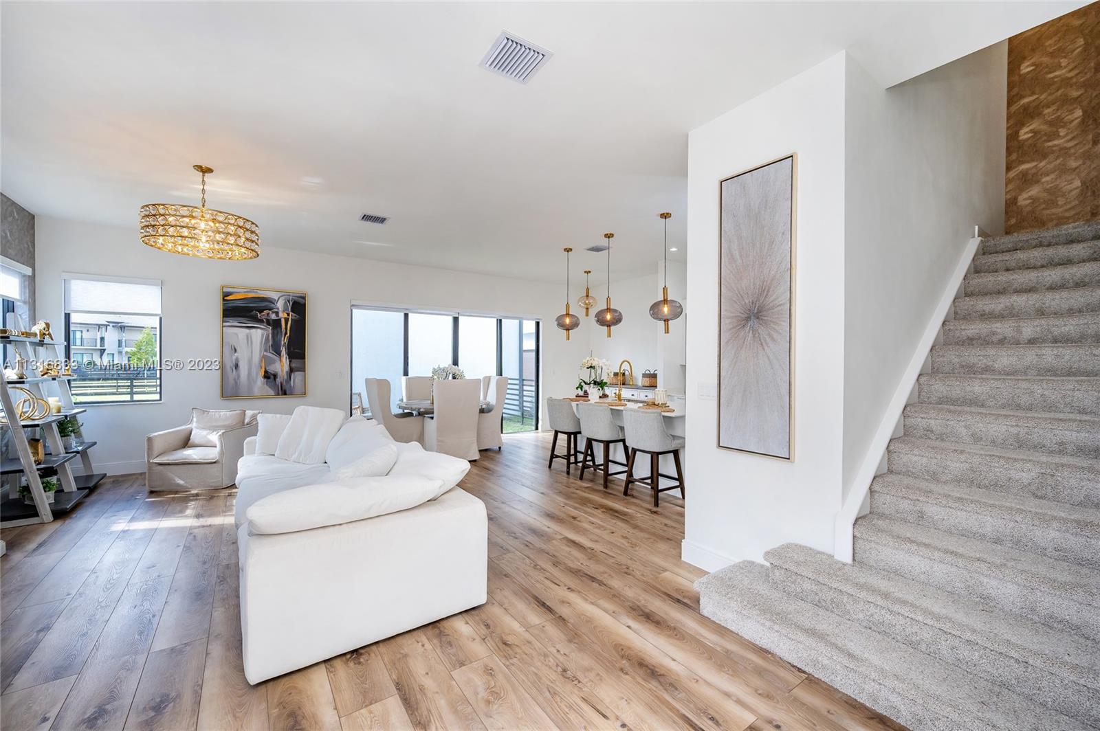There are only 13 houses with exclusive designs this incredible home in sought after community of Downtown Doral Valencia F style Canaria Corner single family home with high ceilings, 4 bedrooms and 3.5 brand new baths is one of only 2 in the community with beautiful kitchen, wonderful modern cabinets and wall storage, appliances smooth finished walls, roller blinds, Italian laminate wood color flooring, carpet and ceramic tiles throughout the home. Resort lifestyle amenities, swimming pool, amazing fitness center, meeting and ballroom facilities, indoor basketball and jogging track, party room, game room, playgrounds and much more. Walking distance to amazing parks, restaurants, bars and shops, grocery stores, top A+ schools - Downtown Doral Charter Elementary School and so much more!
