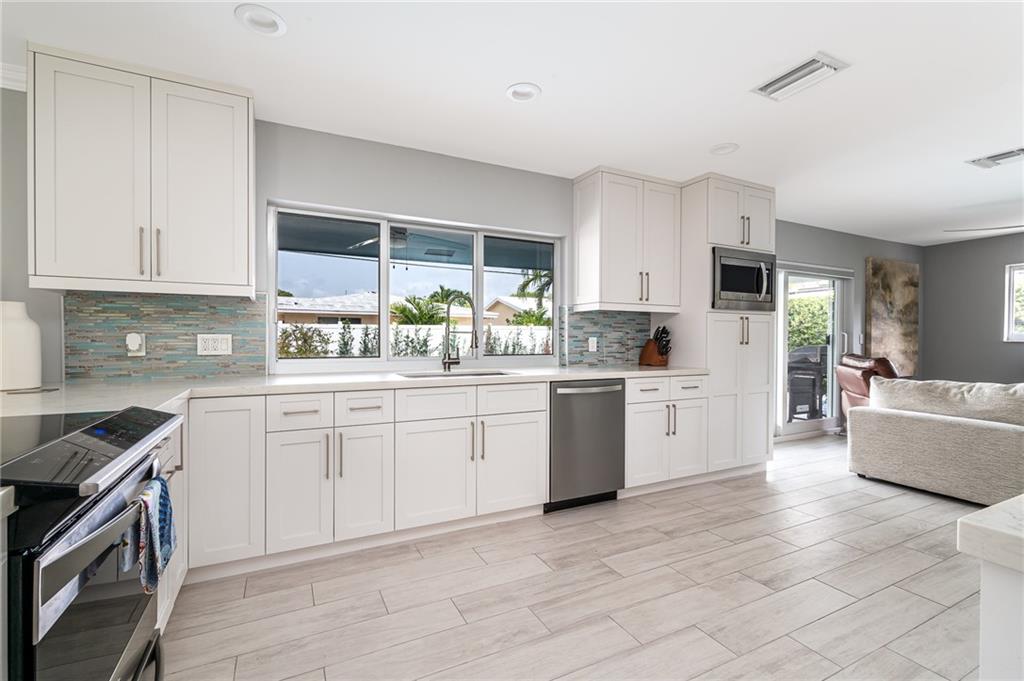 SELLER WILL PAY A BUYER CREDIT TO BUY DOWN MORTGAGE RATE. Beautifully updated 3 bedroom, 2 bathroom home in highly desirable Coral Ridge Country Club Estates. Open floor plan with lots of natural light. Porcelain Tile plank floors throughout. New kitchen with quartz counter tops and stainless steel appliances, snack bar/counter and separate dining area. Separate den off of the kitchen. Large Master bedroom with en-suite bathroom and walk in closet. Newly remodeled bathrooms, new roof and new fence and landscaping. Impact windows and doors throughout. The outdoor area of this property features a pool and covered outside patio area perfect for entertaining your family and friends! Walk to the beach, shopping, dining and all that Fort Lauderdale has to offer. Seller financing terms available.