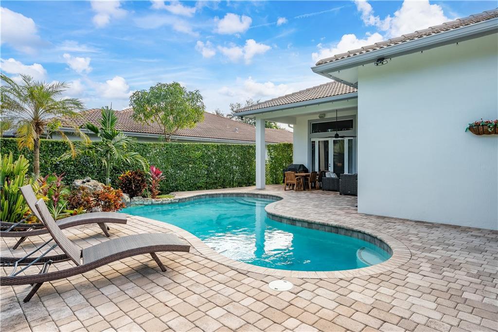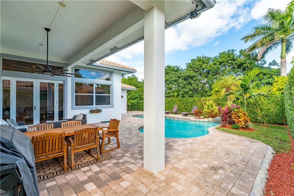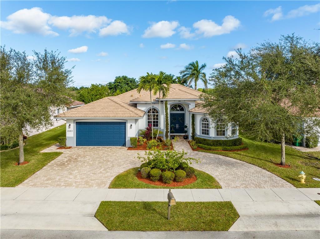 Beautiful 4BR/3BA home in Davie’s Pine Island Estates community. The home shows pride of ownership throughout with a well-thought-out open floorplan featuring: gorgeous kitchen with bar, center island and SS appliances; spacious Owner’s suite with two walk-in closets and his/her vanities in master bath; travertine tile in living areas, wood flooring in bedrooms. The exterior is inviting with large circular drive and 2-car garage. Built for entertaining, the home offers expansive outdoor spaces with covered patio, gorgeous pool w/waterfall, and completely hedged/fenced for privacy. Tesla charging station is an added bonus. Near great schools, close to shopping, dining, airports, the beach. Enjoy the complete South Florida lifestyle. And thanks for showing.