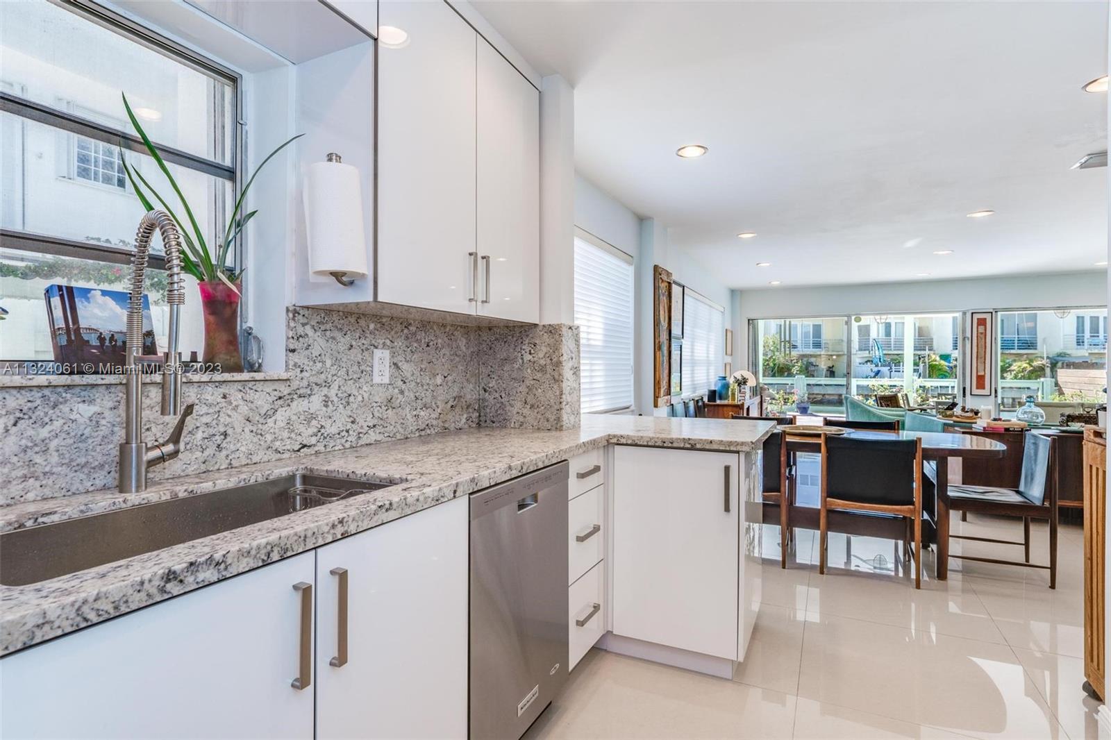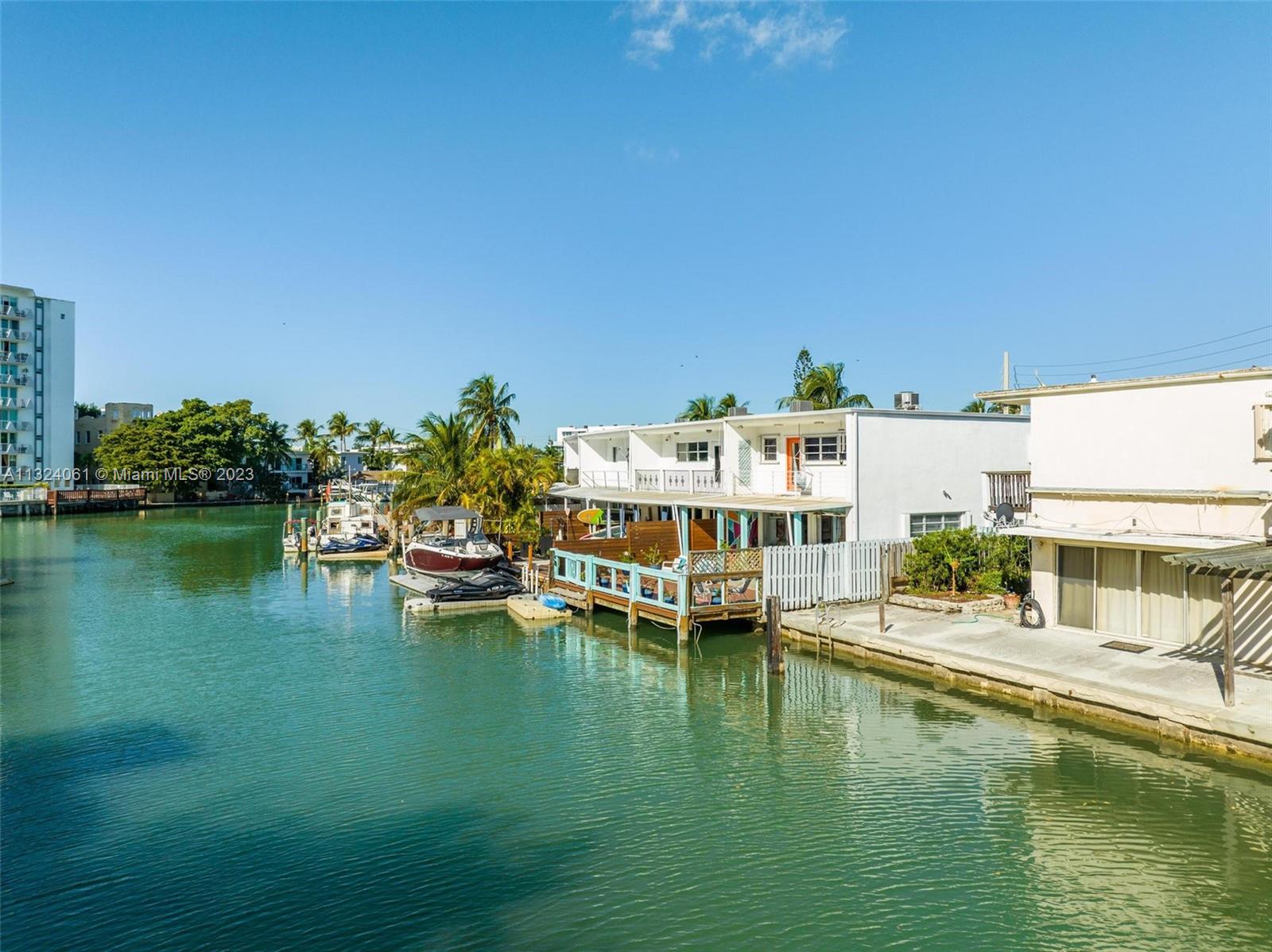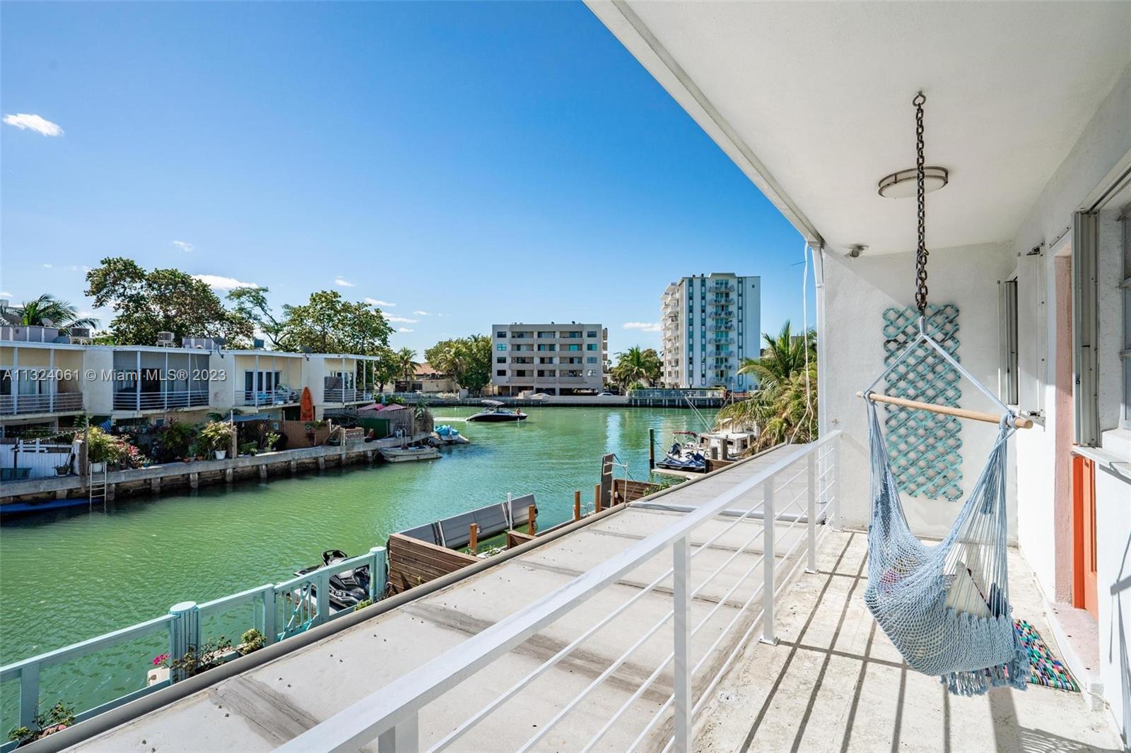 Attention Boaters! 2100 SF 2-story waterfront corner townhome with 30' dock and no fixed bridges. Completely remodeled in 2016: new kitchen high-end appliances including induction stove, washer/dryer, a/c, water heater, and new roof & gutters. Ground floor features a bright open living space, deck, 1/2 bath, and a large bedroom with ensuite bath and its own entrance. Second level features a primary suite with private balcony and ensuite bath, 2 further bedrooms and a 3rd bath. Bathrooms with rainfall showers and textured granite counters. Hurricane shutters throughout and hurricane-rated front door. Deeded off-street parking for 4 cars. Walk 1/2 mile to beach & North Shore Oceanside Park, nearby playground, houses of worship and schools. 10min to Bal Harbour, 20min to South Beach and MIA.
