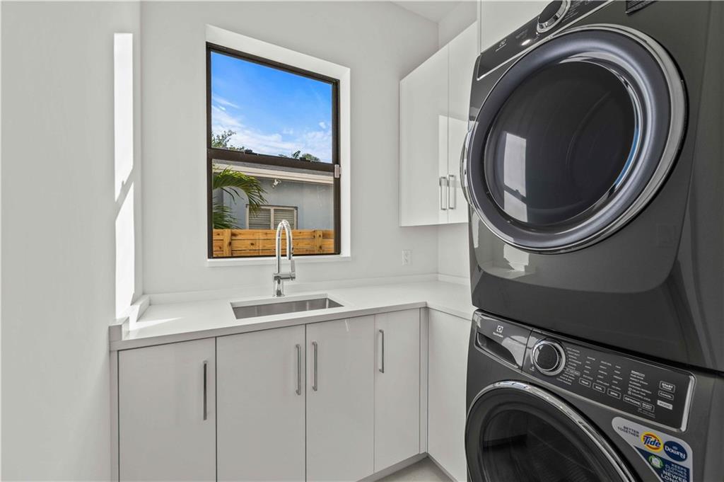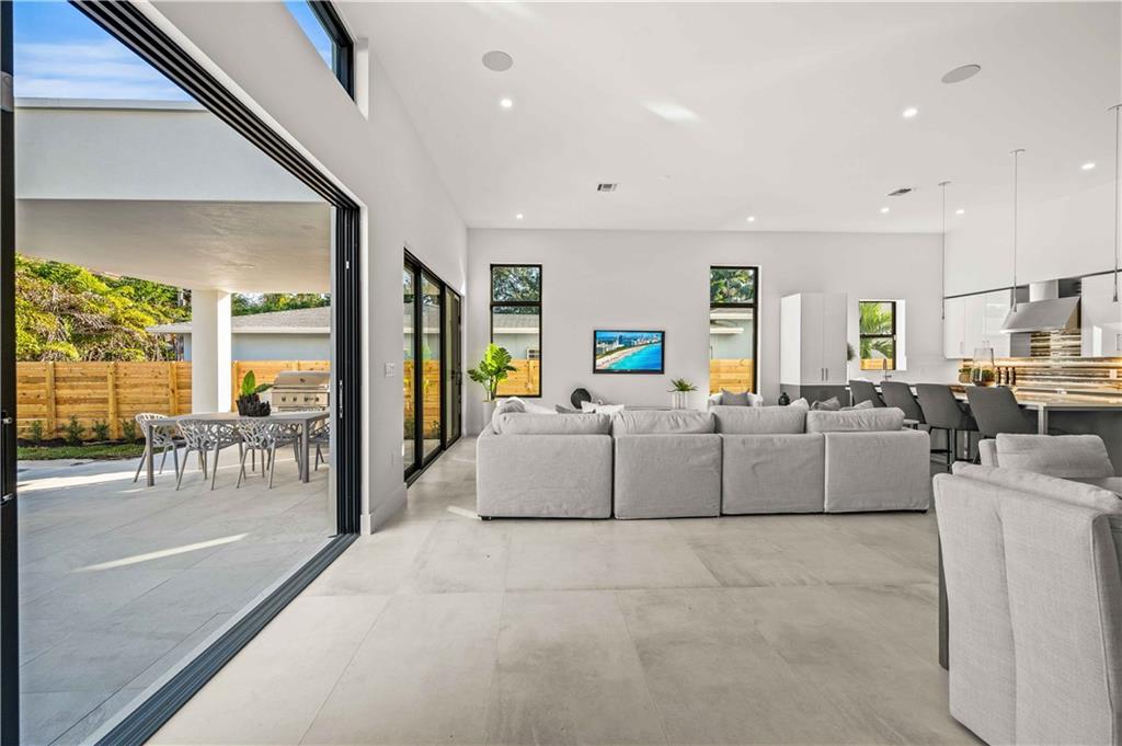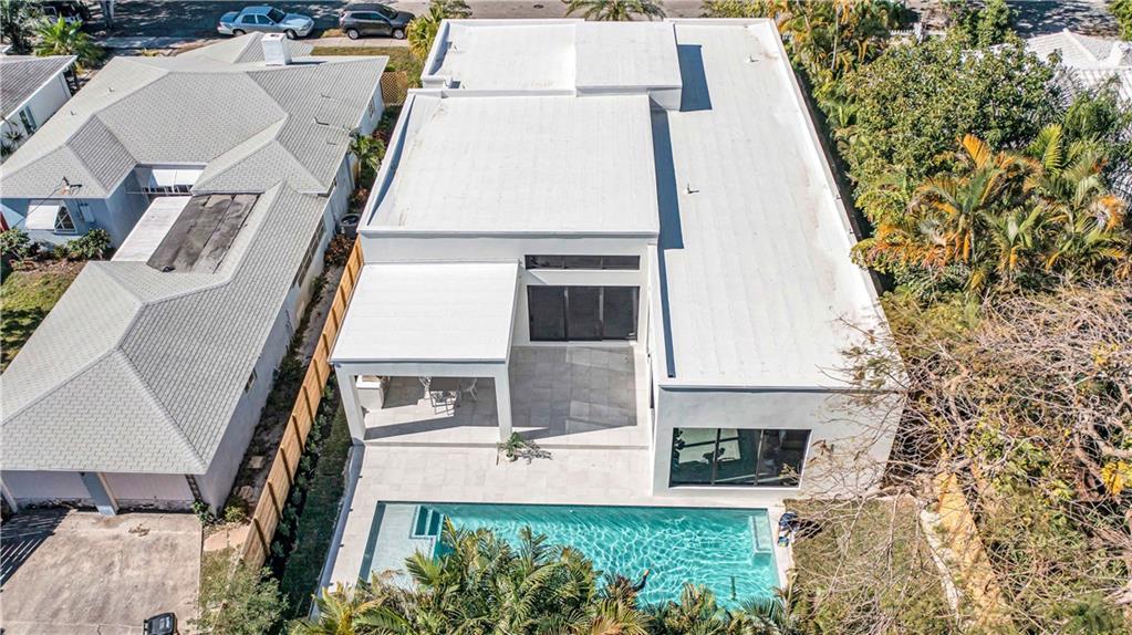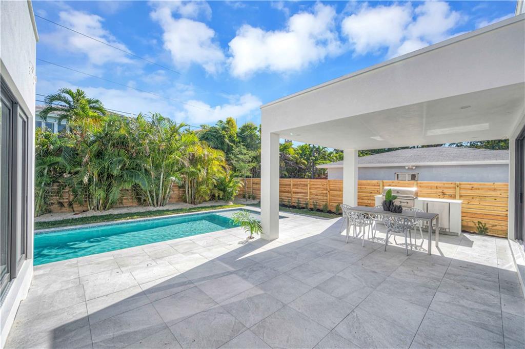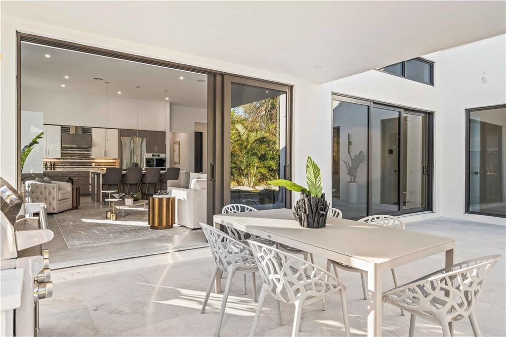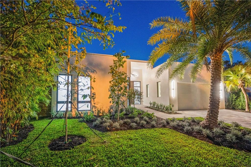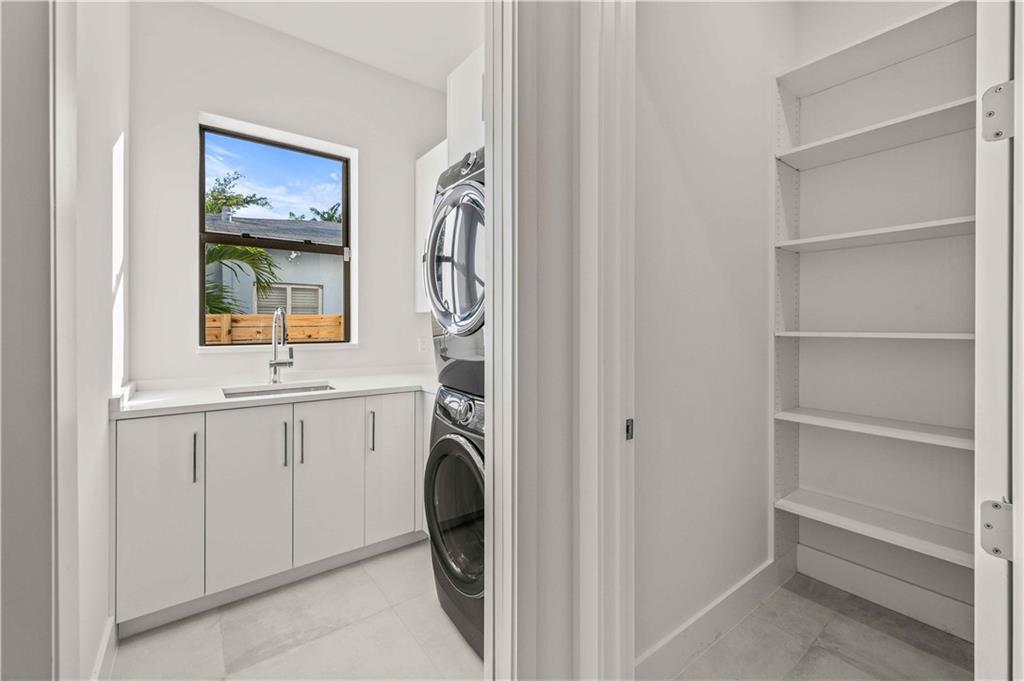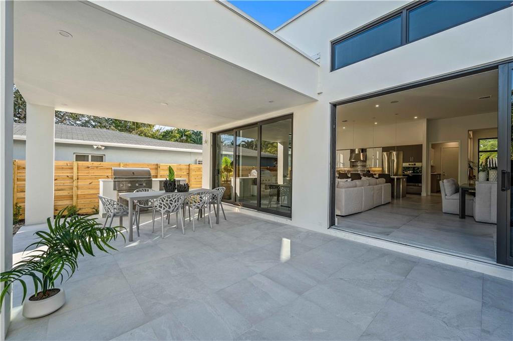 Stunning open spaces greet you as you enter this brand new home through a wide foyer. High ceilings and walls of glass create light-filled rooms. The (apx) 28x29 foot great room has two sets of sliders to the sunny pool area and roofed loggia and summer kitchen. The primary suite with two walls of glass seems to float over the pool. A butler pantry adjacent to the kitchen has a prep/serving counter and additional storage. Next to that is a generously sized shelved pantry closet. The laundry has full-size stack appliances and a wash sink plus additional storage. Floors are oversized porcelain squares. All rooms have recessed ceiling lighting. Property is SMART HOME ready. Rear yard is fenced and gated for privacy with rear alley access for flexibility.
