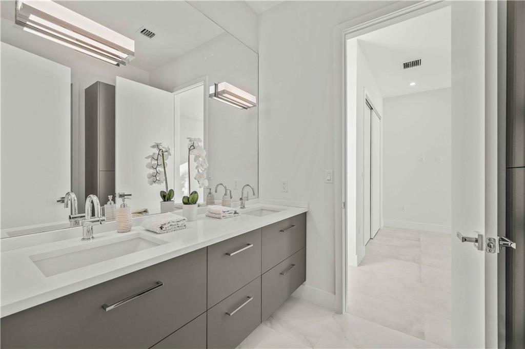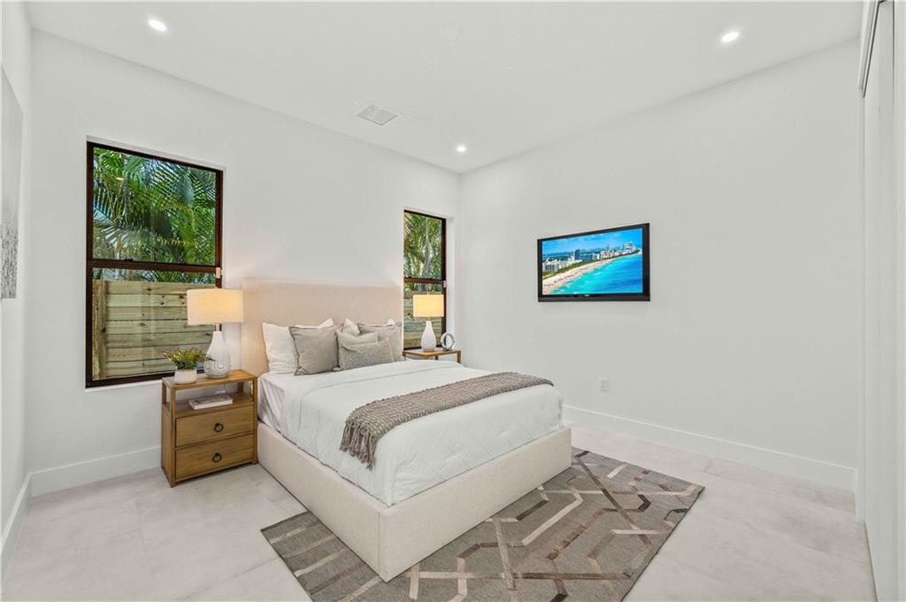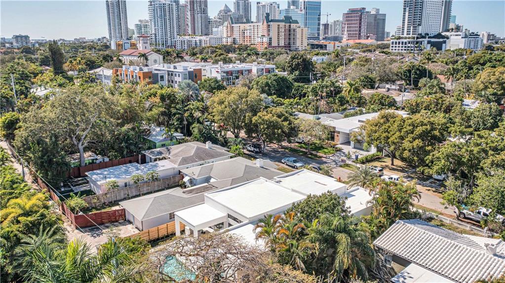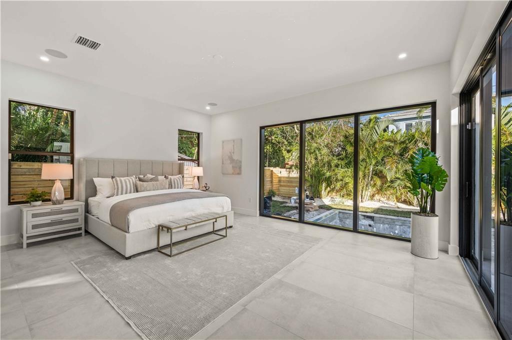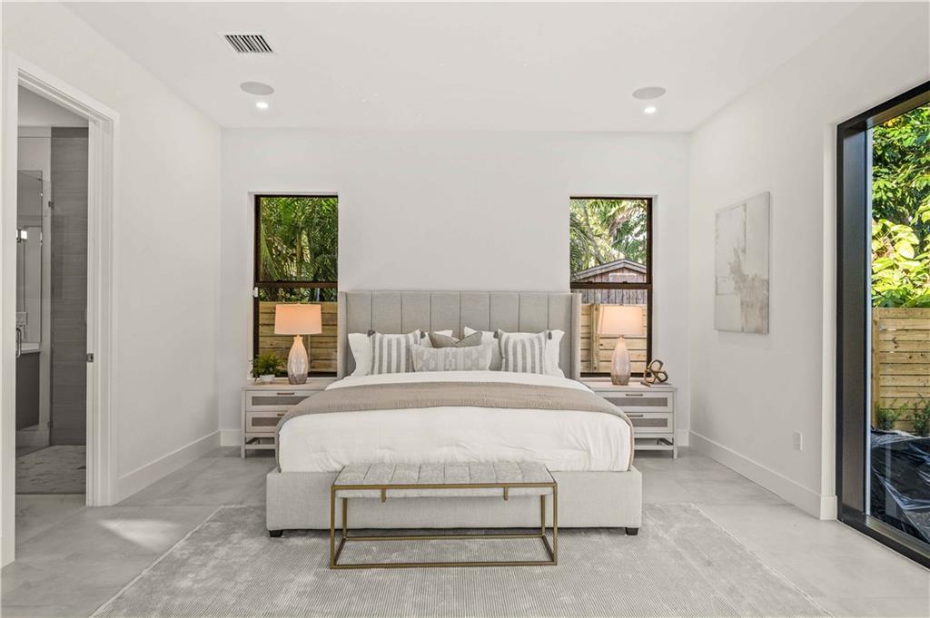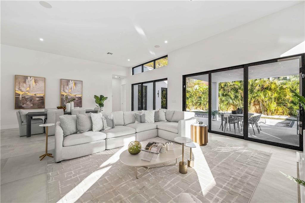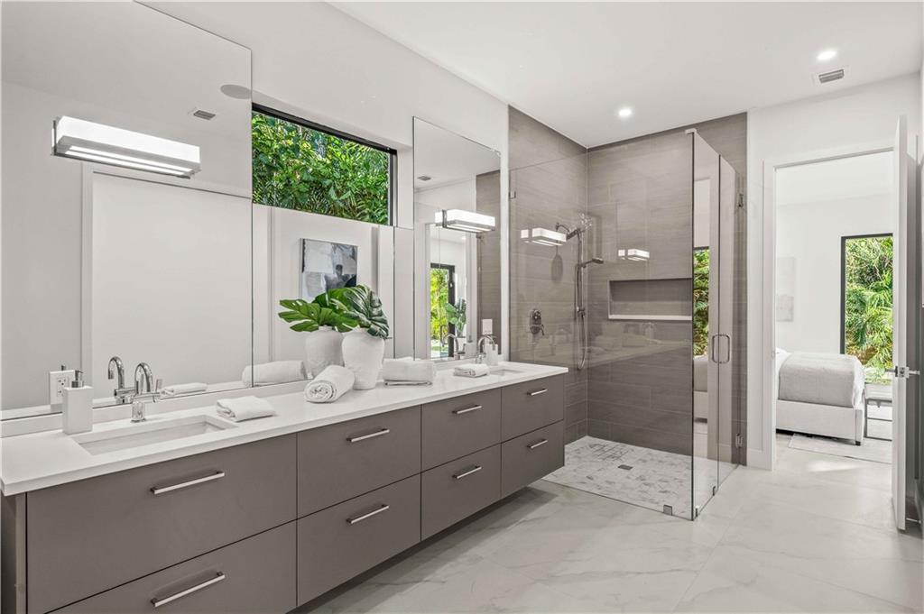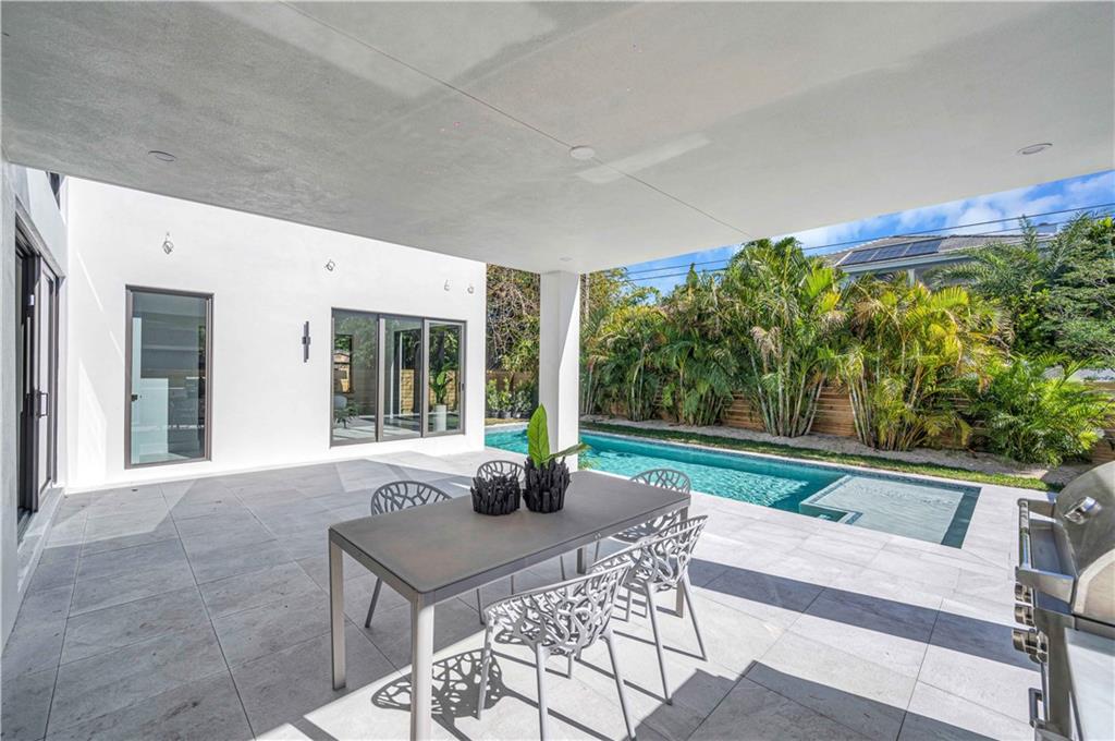 Stunning open spaces greet you as you enter this brand new home through a wide foyer. High ceilings and walls of glass create light-filled rooms. The (apx) 28x29 foot great room has two sets of sliders to the sunny pool area and roofed loggia and summer kitchen. The primary suite with two walls of glass seems to float over the pool. A butler pantry adjacent to the kitchen has a prep/serving counter and additional storage. Next to that is a generously sized shelved pantry closet. The laundry has full-size stack appliances and a wash sink plus additional storage. Floors are oversized porcelain squares. All rooms have recessed ceiling lighting. Property is SMART HOME ready. Rear yard is fenced and gated for privacy with rear alley access for flexibility.