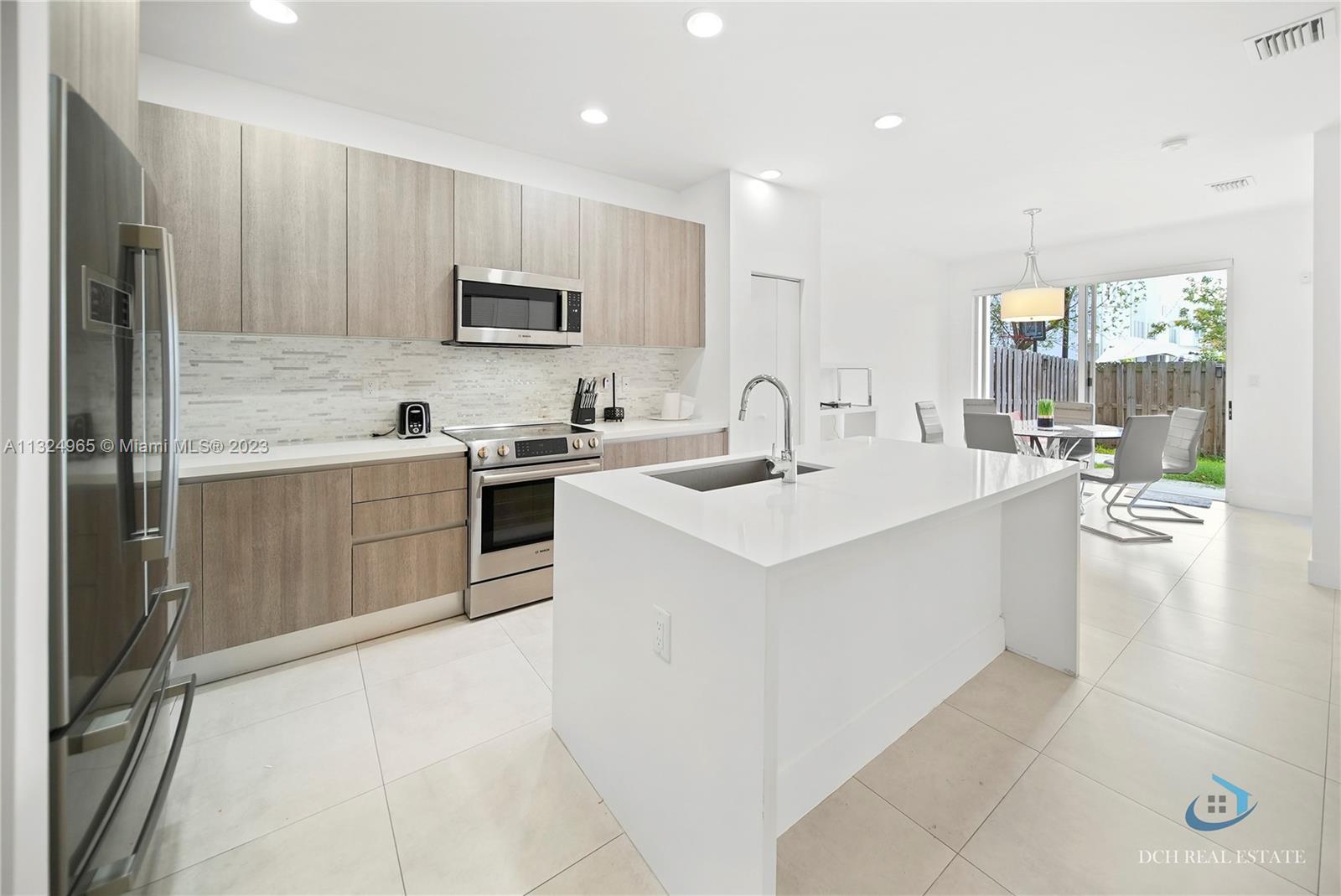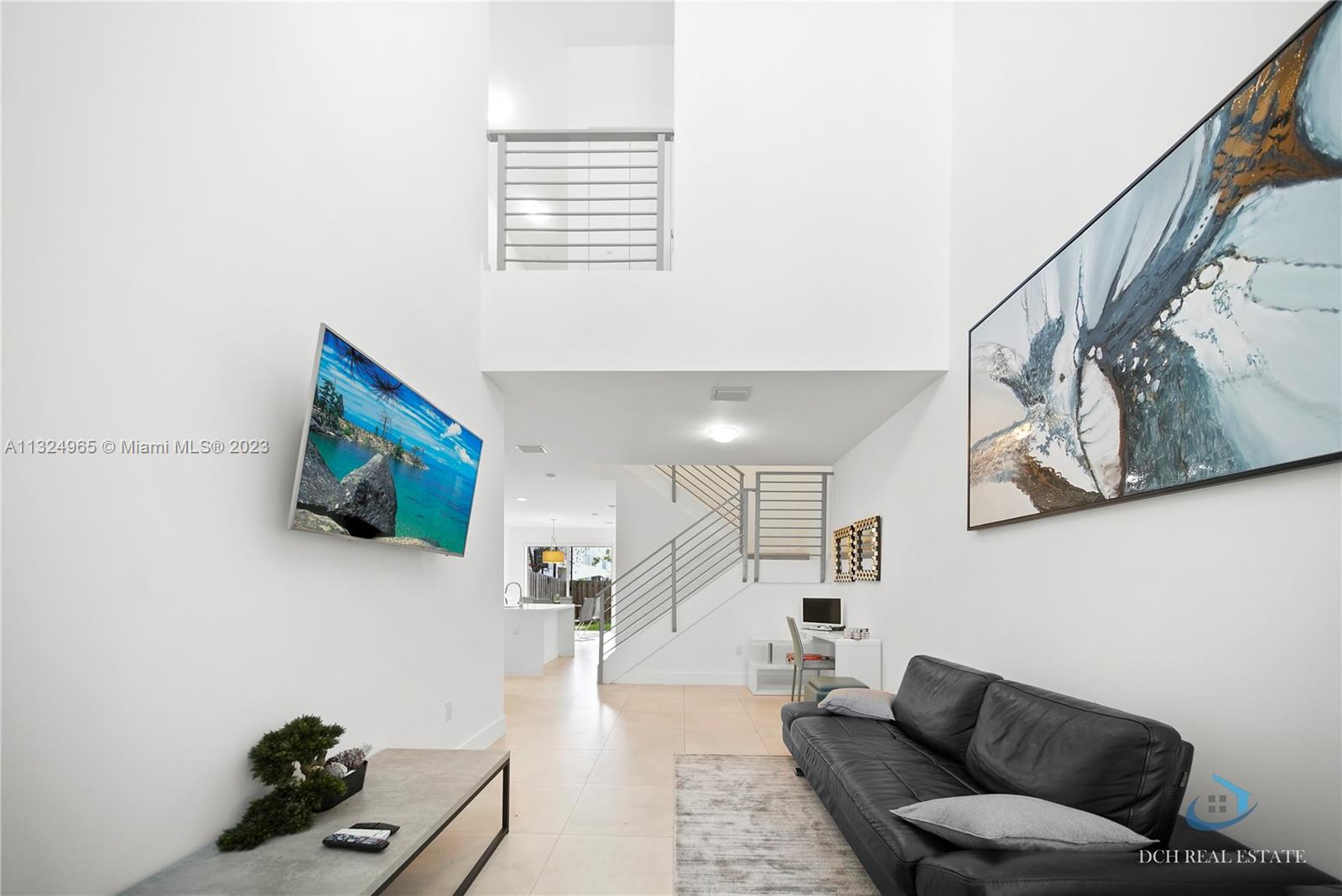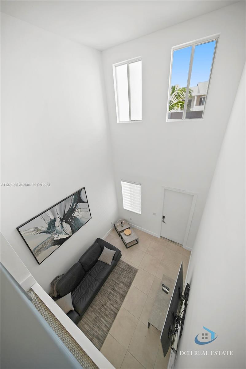Townhouse in the gated community Neovita at Doral with 3 bedrooms and 3 bathrooms. Included tile floors on the first floor, wood floors on the second and stairs, microwave, kitchen, refrigerator, tange, washer, dryer. kitchen with quartz counter tops. Patio with ceramic, artificial grass and fenced.
