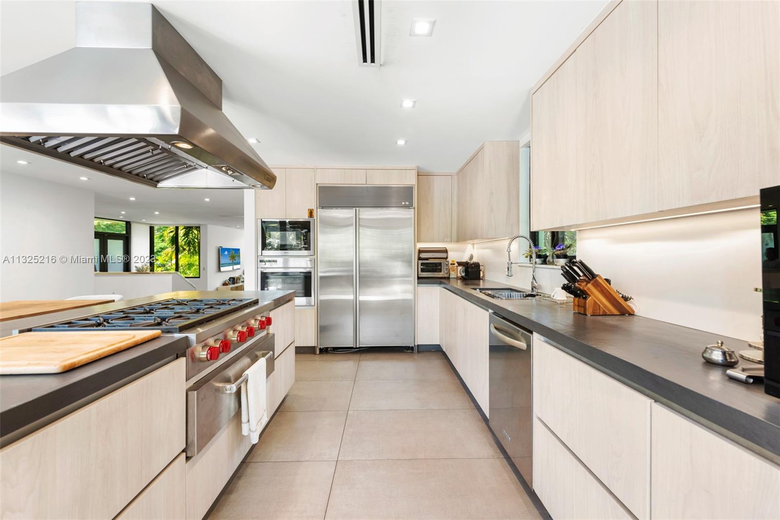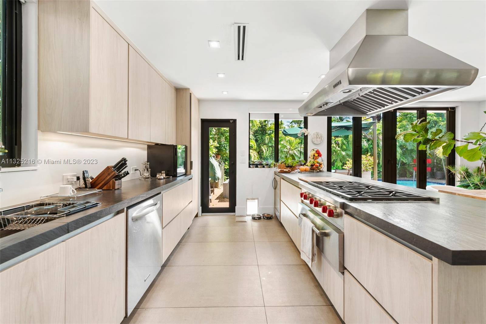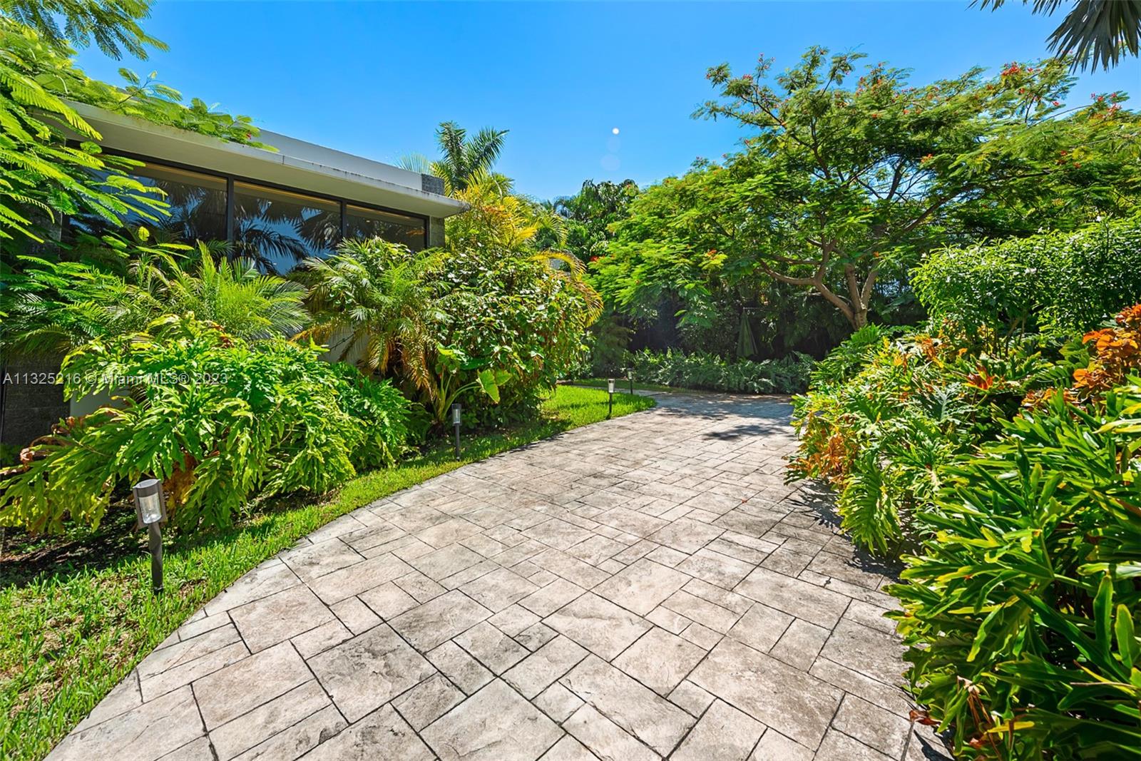 Beautiful Mid-Century oasis home surrounded by tropical lush gardens located on Miami Beach's premier guard gated Sunset Island I. Beautifully manicured entrance welcomes you to this light-filled, elegant one story 3BD/3BA home featuring 2,470 SF of interior living all facing the stunning expansive pool area with chic brand new hardwood deck with multiple entertaining areas, accessed from all bedrooms. Entirely updated home with natural light flowing throughout the home highlighting the spacious living room, high ceilings and contemporary gourmet gas kitchen with direct views of the serene green and lush outdoors pool and front areas. Easy to show.