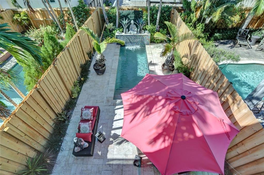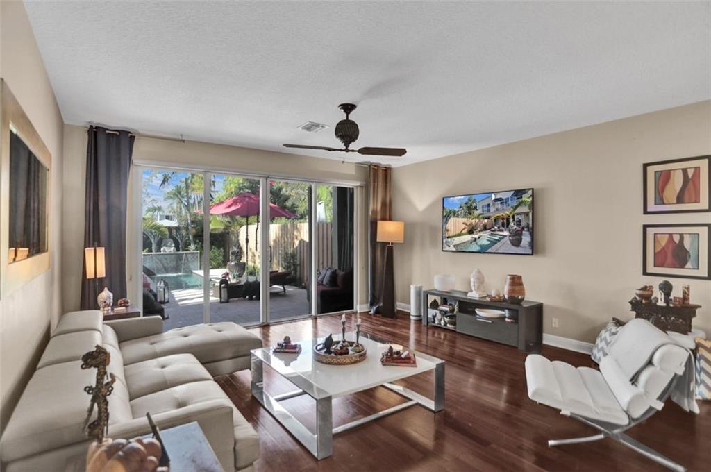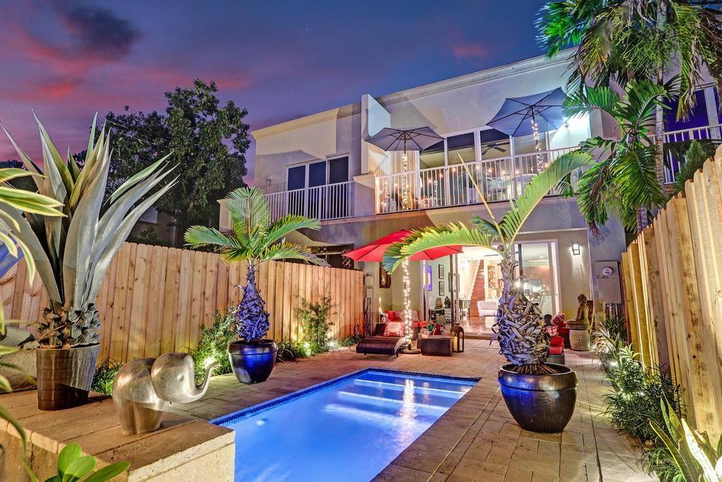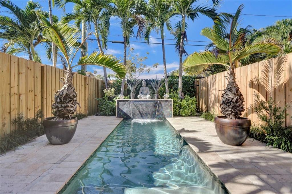 Awesome townhome with open, spacious floor plan leading to your own private outdoor oasis with covered patio and private pool with a tranquil waterfall feature. Impact windows and doors, open kitchen with granite counters, wood floors, front and rear balconies, 9’ ceilings and 8’ doors, Dual Zone AC, a one car garage, and brick paver driveway. Large primary suite features a large balcony overlooking the pool area, walk-in closet, trayed ceilings, and primary bath with walk in shower, separate Jacuzzi tub, and a double sink vanity. Convenient to Holiday Park and the energetic “Studio City”, a vibrant district home to restaurants, boutique shops, fitness studios and even a brewery. Minutes to downtown, Las Olas, beaches and more! Rental Friendly! Okay to lease right away! Very Pet Friendly!