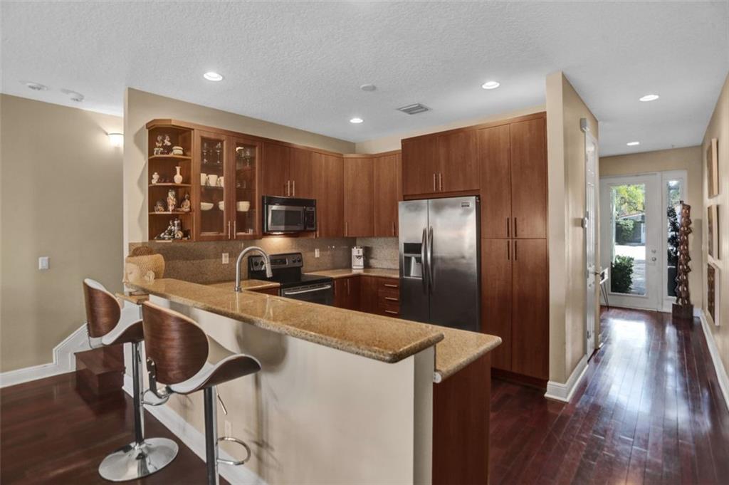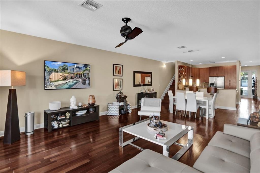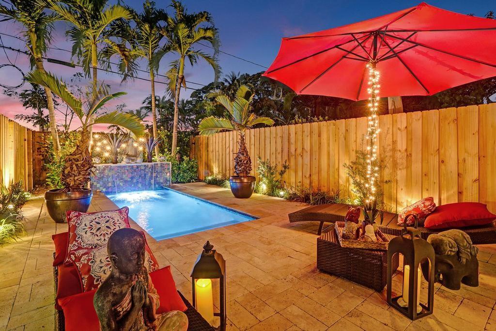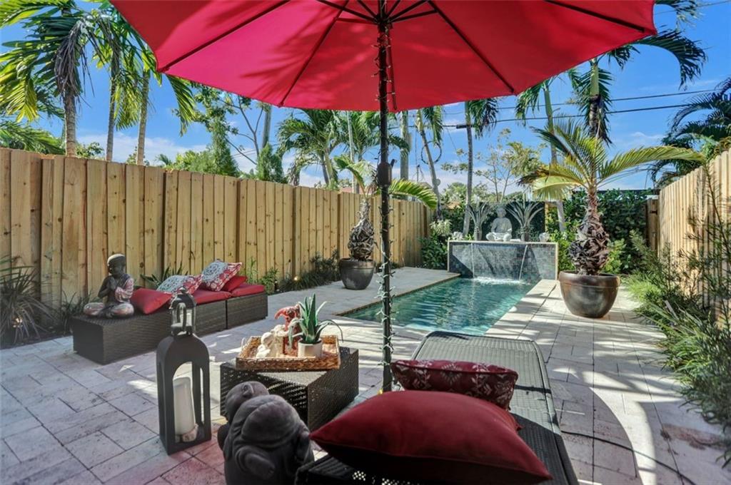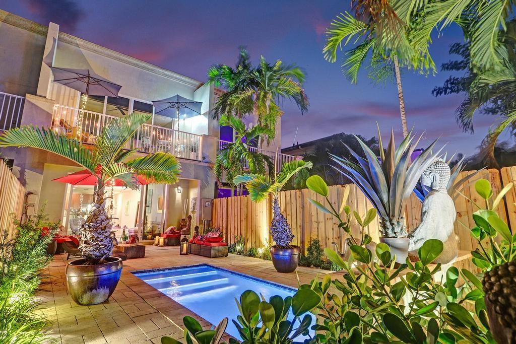 Awesome townhome with open, spacious floor plan leading to your own private outdoor oasis with covered patio and private pool with a tranquil waterfall feature. Impact windows and doors, open kitchen with granite counters, wood floors, front and rear balconies, 9’ ceilings and 8’ doors, Dual Zone AC, a one car garage, and brick paver driveway. Large primary suite features a large balcony overlooking the pool area, walk-in closet, trayed ceilings, and primary bath with walk in shower, separate Jacuzzi tub, and a double sink vanity. Convenient to Holiday Park and the energetic “Studio City”, a vibrant district home to restaurants, boutique shops, fitness studios and even a brewery. Minutes to downtown, Las Olas, beaches and more! Rental Friendly! Okay to lease right away! Very Pet Friendly!