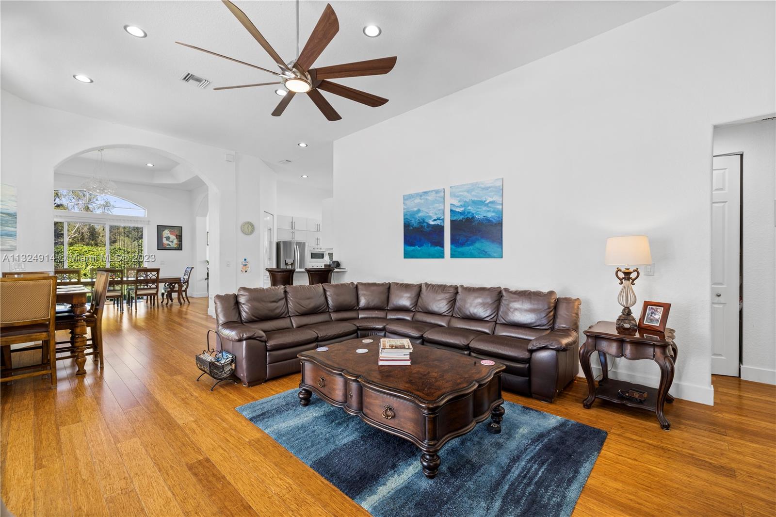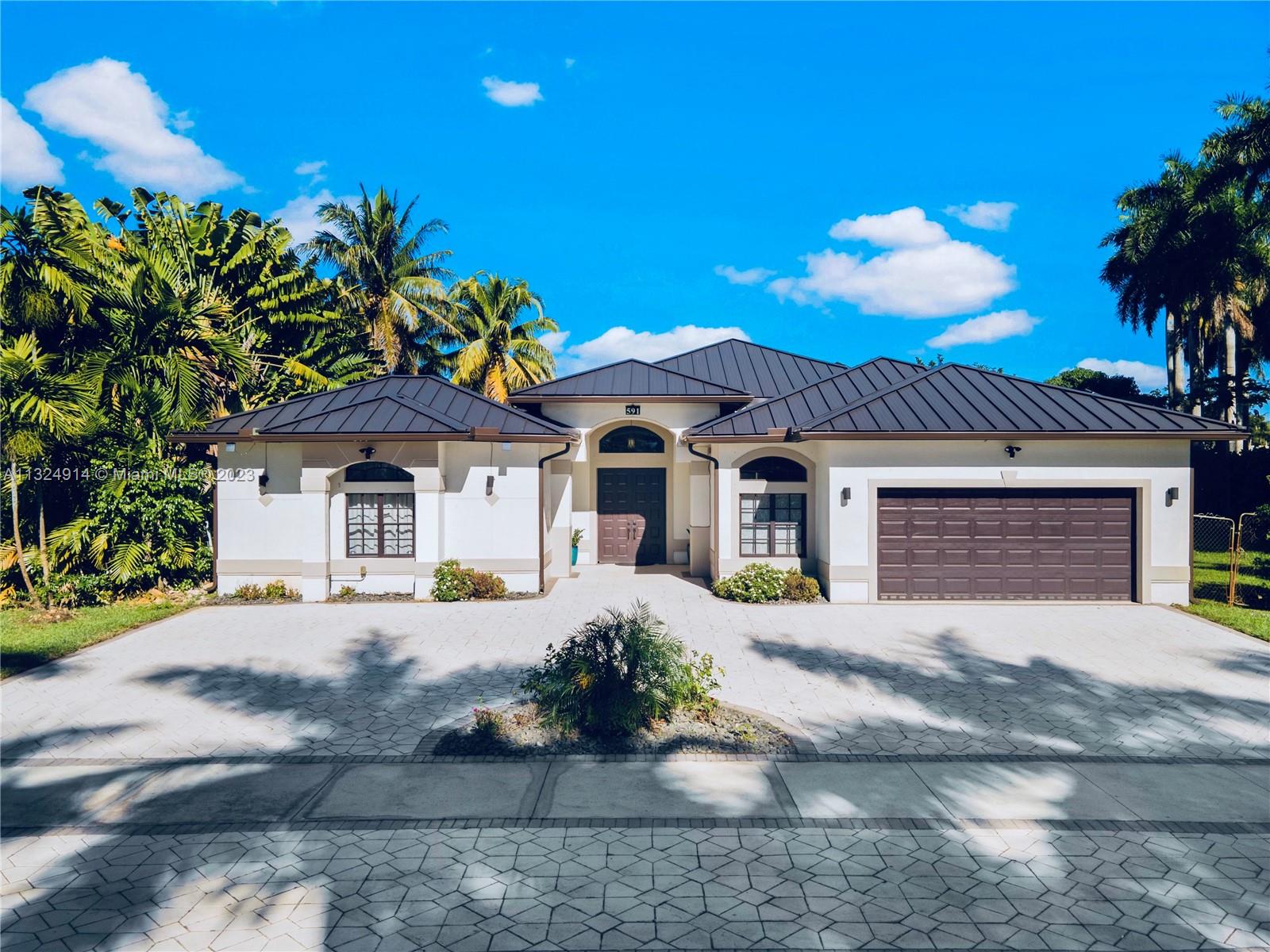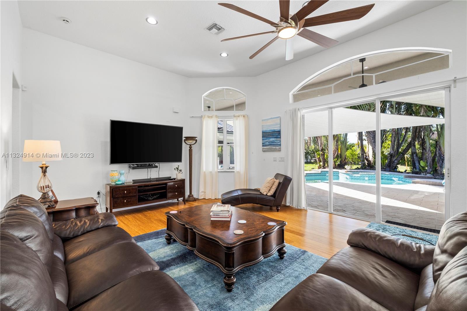 Welcome to your Weston oasis! This 4 bedroom 3 bath home is located with easy access to major roads and great schools. Enjoy the beautiful Saddle Club Estates neighborhood and low HOA fees. This courtyard style home features a large patio around the pool that is perfectly shaded by palm trees. The home features a guest suite with private entrance next to the pool. The primary bedroom across the courtyard features a sliding door to enjoy the pool views. Great schools. Enjoy 12 foot ceilings in the main house house with wonderful natural light throughout the home. A new standing seam metal roof installed in 2021. This energy efficient home features 14.5kW solar panel system, LED lights, smart controls, and a new efficient hybrid water heater.