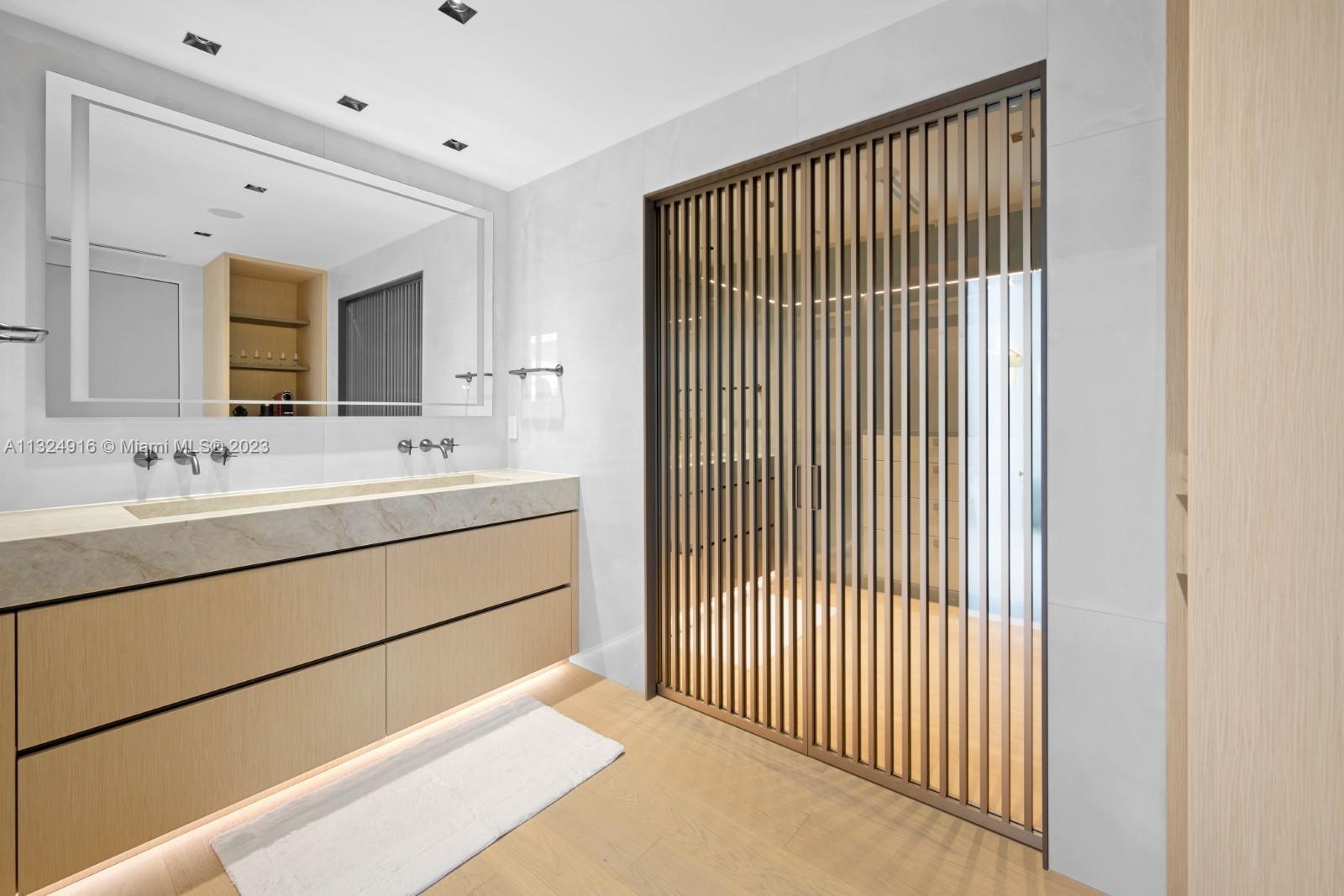 Welcome to this striking waterfront turnkey residence designed by Estudio Jorge Fuentes. This home has been completely gutted and remodeled with the finest finishes both inside and out. All millwork and closets are by Armazen Design, living room includes desirable paneling design, full wet bar with hidden doors and bespoke buildouts. Custom kitchen with Miele & Thermador appliances. Bathrooms include Madeli mirrors with LED/sensors, Toto Smart Toilets and a steam shower by Mr. Steam. A desirable newly added pool, and breathtaking landscape surrounding this one-of-a kind residence. Additional features: RH & custom Italian furniture, wood floors throughout, face recognition entry door system, Savant AV, 14 installed security cameras, high impact windows, mini golf, outdoor sauna, & much more
