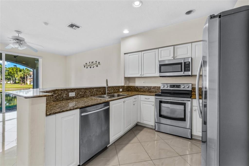Spacious 3 bedrooms 2.5 bathrooms corner unit in the highly sought of Miramar! This home features a open floor plan living room/dining room area that guides you the the fully renovated kitchen with stainless steel appliances granite counter tops. Covered patio with a serene lake view! Beautiful tile floors on the first floor and carpet upstairs. Upstairs is a large luxurious master bedroom with ensuite bathroom with a walk in closet. Located near major highways, shops and restaurants. A great property to call home.