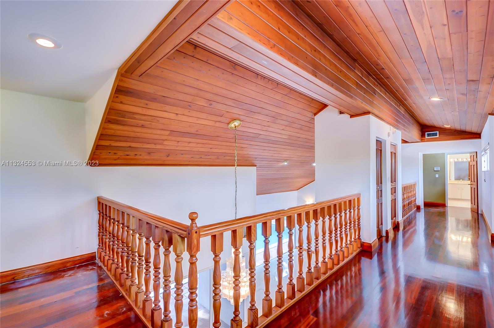 Contemporary 5 bedroom/ 4 bathroom home located on a quiet street in the gated community of Pinecrest by the Sea. Grand formal living with double height ceilings and inside balconies. Spacious kitchen with island, opening to the large family room which heads directly to the tropically landscaped patio and pool. Master's and other bedrooms located on the second floor, with an office room and cabana bathroom on the first. New roof and AC units. 2 car garage and circular driveway. Voluntary HOA.