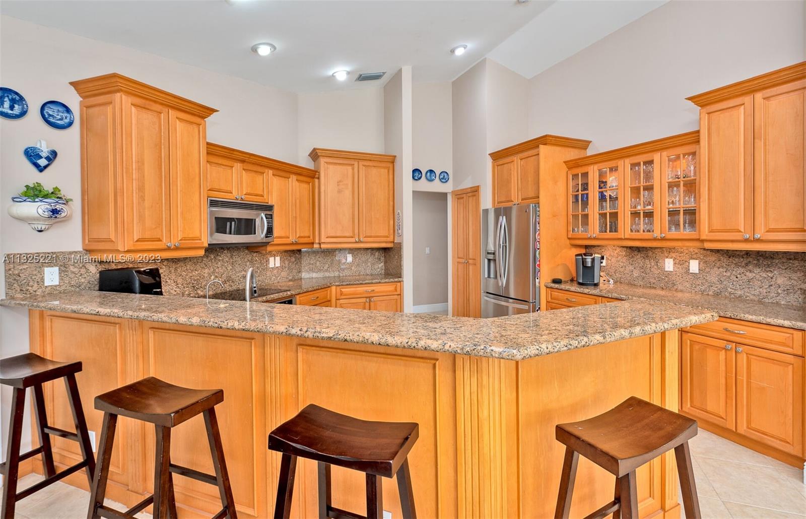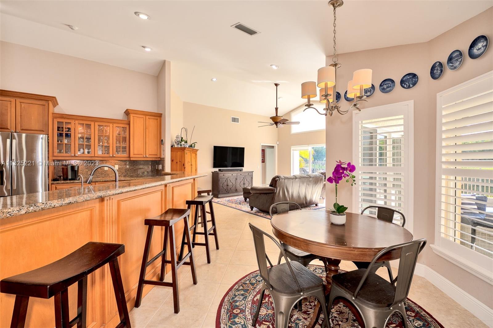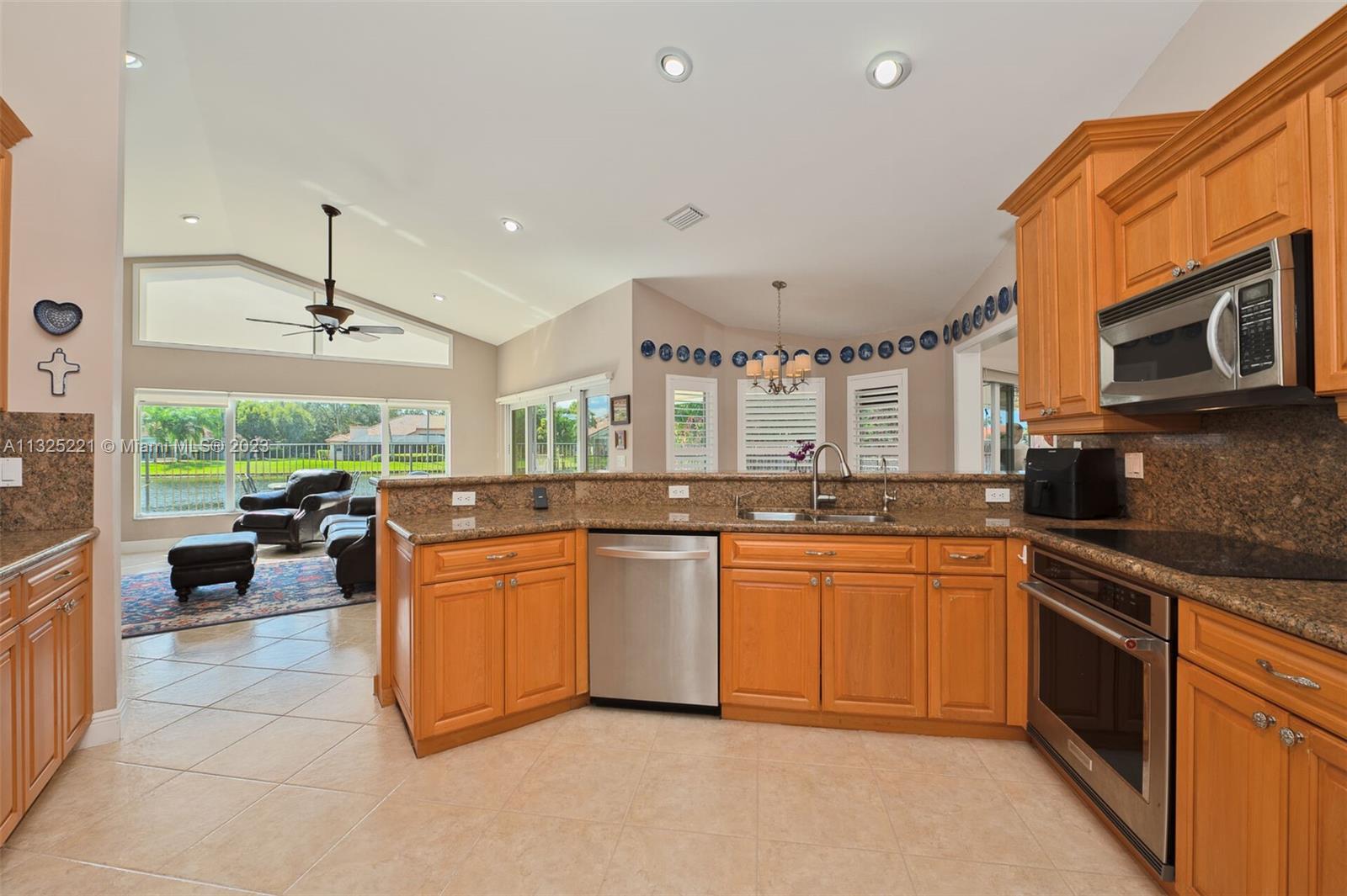 The PERFECT family home to make your own. This home boasts a 4 bedroom, triple split floor plan with 3 bathrooms, and a generous covered patio with extended lake views. Gorgeous sunsets over the pool. Newer roof, freshly painted walls inside/out and impact windows throughout. Located within the neighborhood of Tequesta, within walking distance to the park and 24hr manned gate. Perfect for todays buyers who are craving a perfect outdoor area for entertaining.