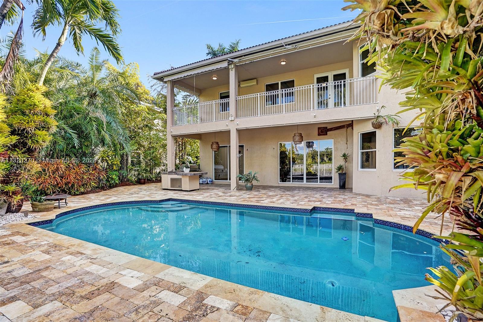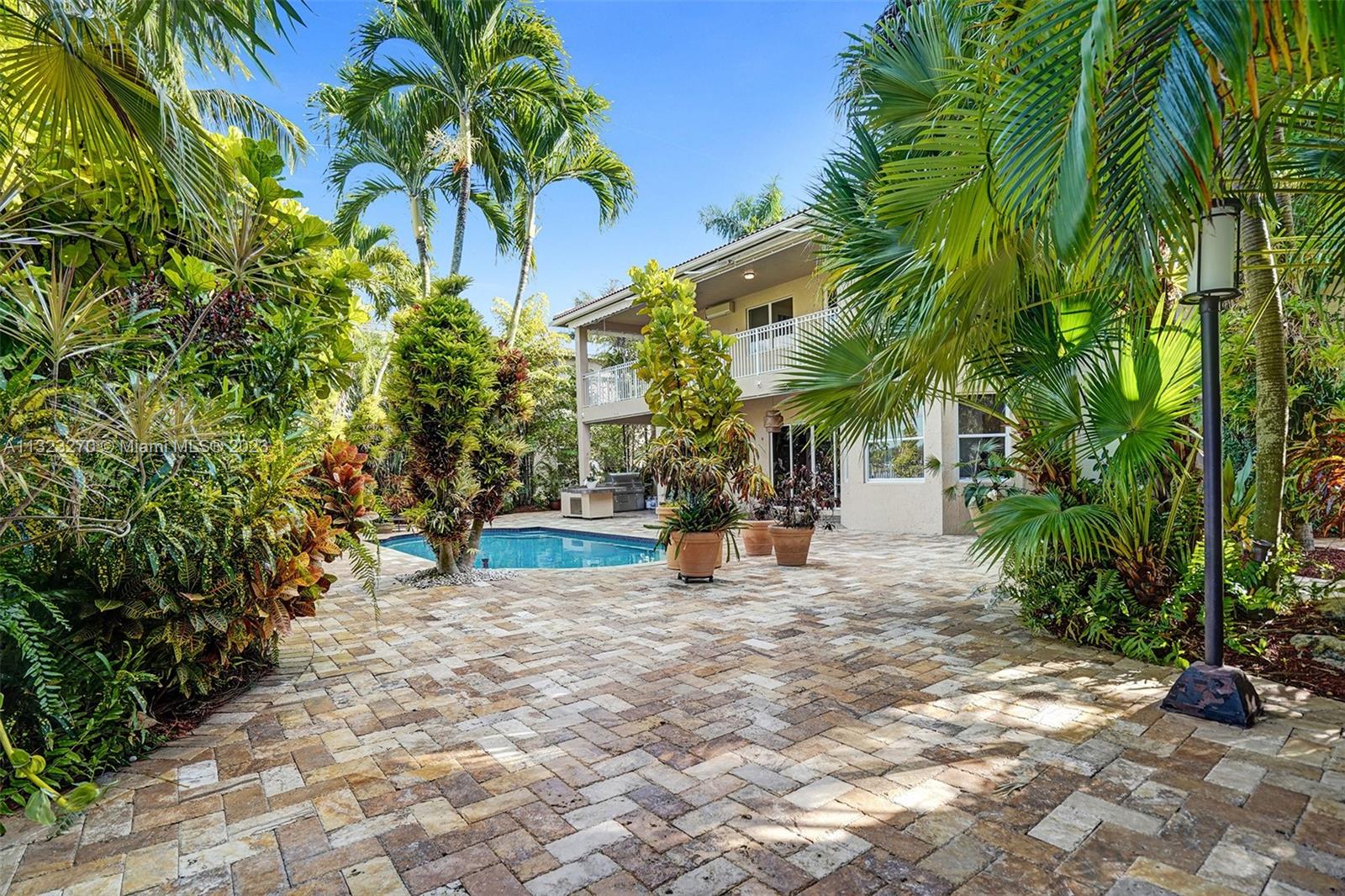 Looking for privacy? Enjoy resort-style living w/ a fully fenced lushed landscaped yard, summer kitchen, and travertine pavers. Grand Sanibel model, tucked in a gated community within walking distance to sensational community amenities and A-Schools. Grand circular paver driveway welcomes you home. Enter into soaring two-story ceilings, neutral tones, and floors. Grand master suite on the second level with balcony overlooking tranquil lake views. Gourmet kitchen with center island, quartz countertops, and stainless steel appliances. Oversized playroom/guest suite on the first floor with cabana bath to pool. Incredible use of space makes this home very versatile. Exterior office/guest suite perfect for in-laws, office, and more.