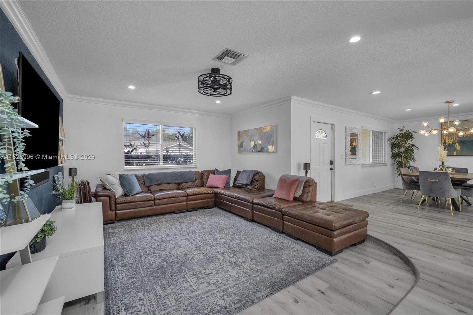 This beautifully updated and spacious family home located in the heart of Davie will not last long! With 4 well-sized bedrooms, large galley kitchen, 2 seating areas, and 2 bathrooms, this home is undeniably perfect for family living. The home is excellent for hosting gatherings and entertaining. Lighting, ceiling fans, and fixtures flow throughout the home. The large sparkling pool is enticing and a perfect way to cool off on those hot Florida days. Additional features include: Remodeled kitchen (2019) Stainless steel appliances Brand new AC unit (2020) New remodeled deck & landscaping (2020) Newly remodeled bathroom (2021) Newly remodeled primary closet(2022) Impact windows throughout 2 Car Garage Pool with pool light Storage Shed RV or Boat Parking