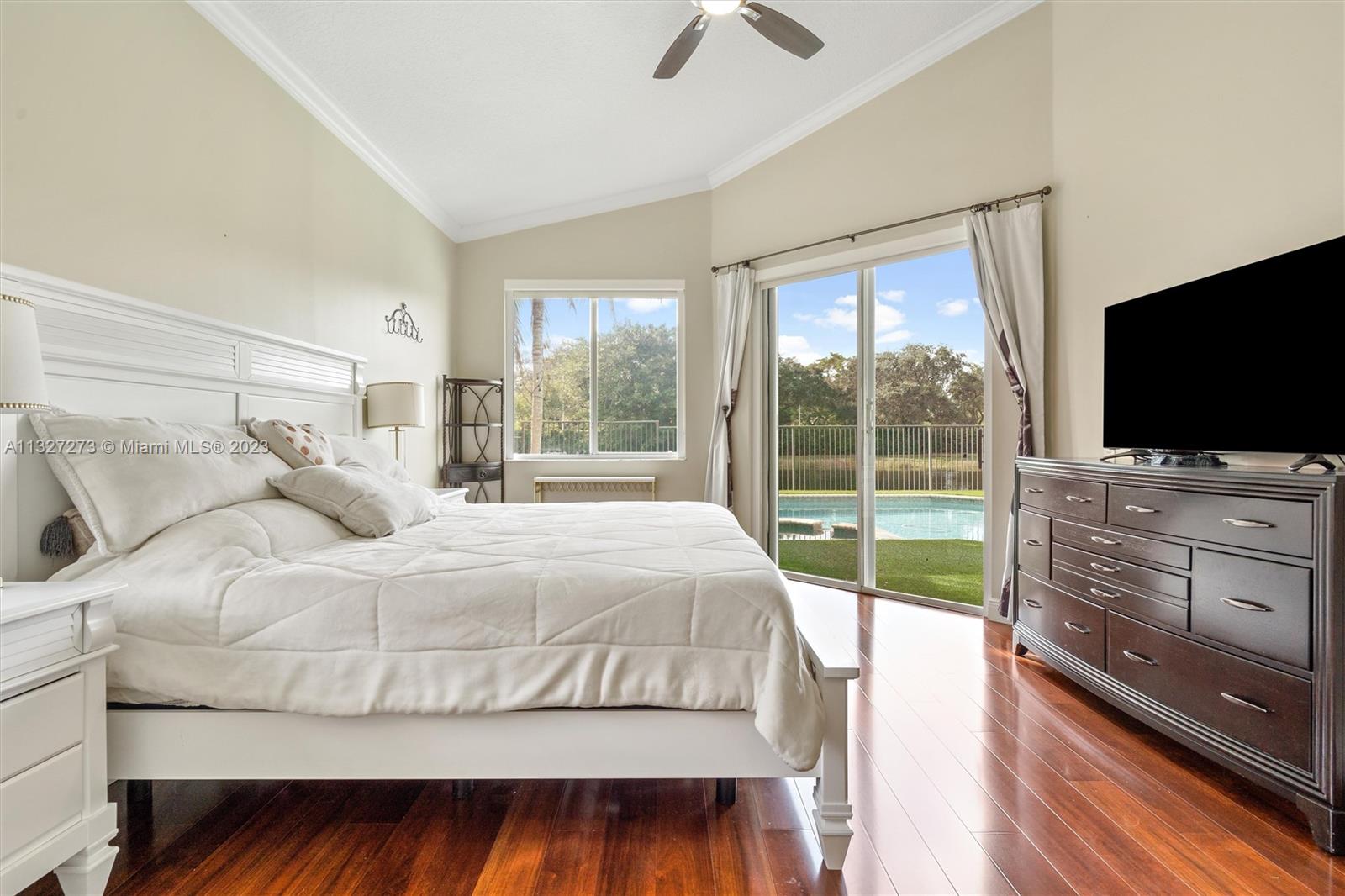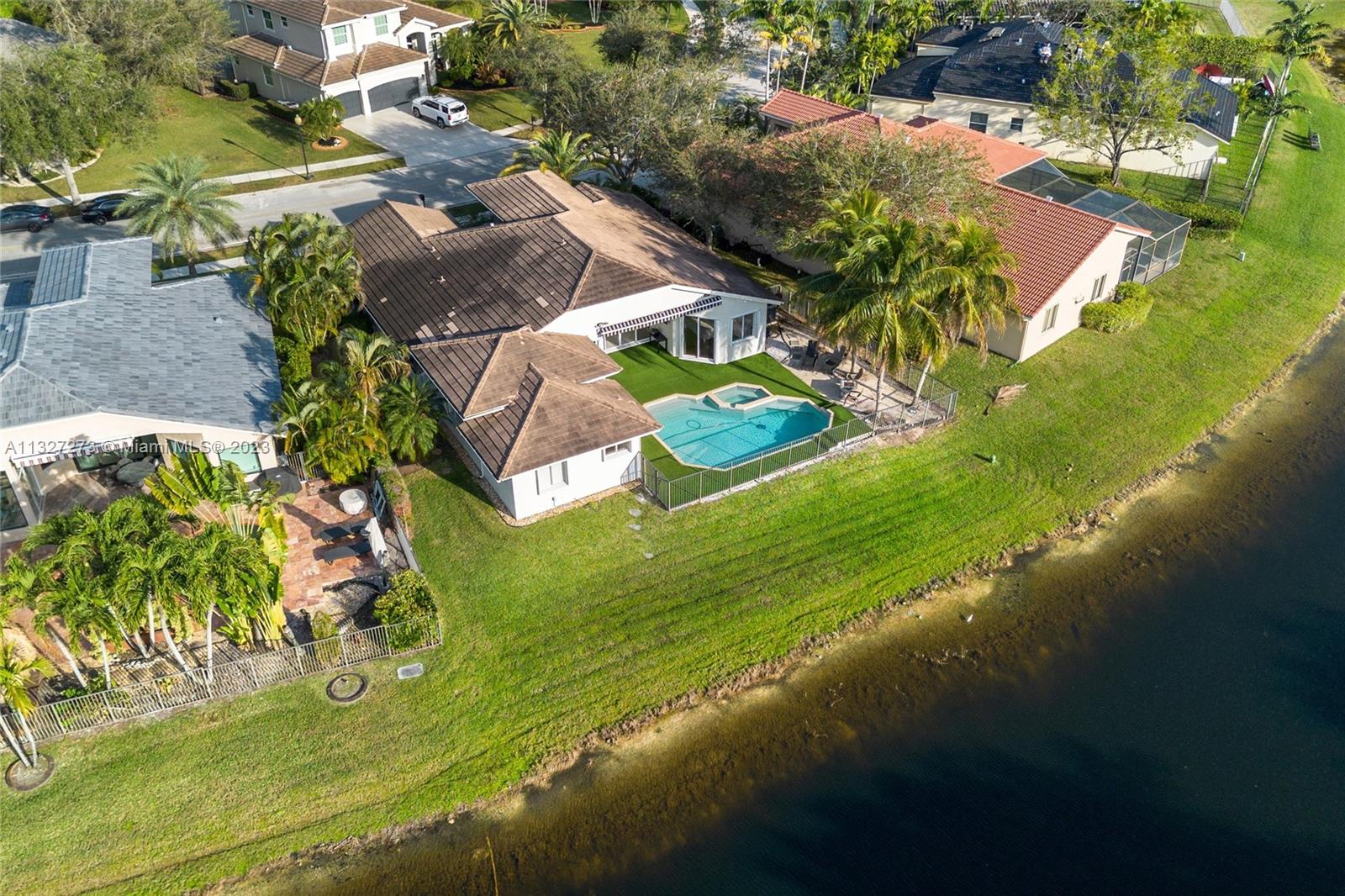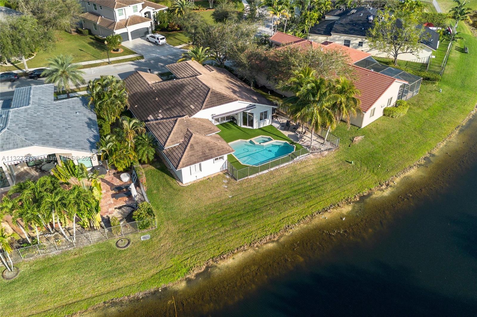 New ROOF is to be completed prior to closing. This beautiful one-story home is located in the heart of Weston, The Islands. The home sits on a lakefront and features a heated swimming pool with a spa, and salt chlorination, perfect for enjoying the outdoor views. It includes 5 bedrooms and 3 full baths with a three-way split floor plan. The kitchen has been updated with granite counters, wood cabinets, and stainless-steel appliances, the bathrooms have also been tastefully updated. Bedrooms feature engineered wood floors and accordion shutters throughout the home. The Island is a smaller, high-end community, surrounded by a panoramic lake and is within walking distance of Weston Town Center restaurants and shops. The backyard fence can be extended to the property line.