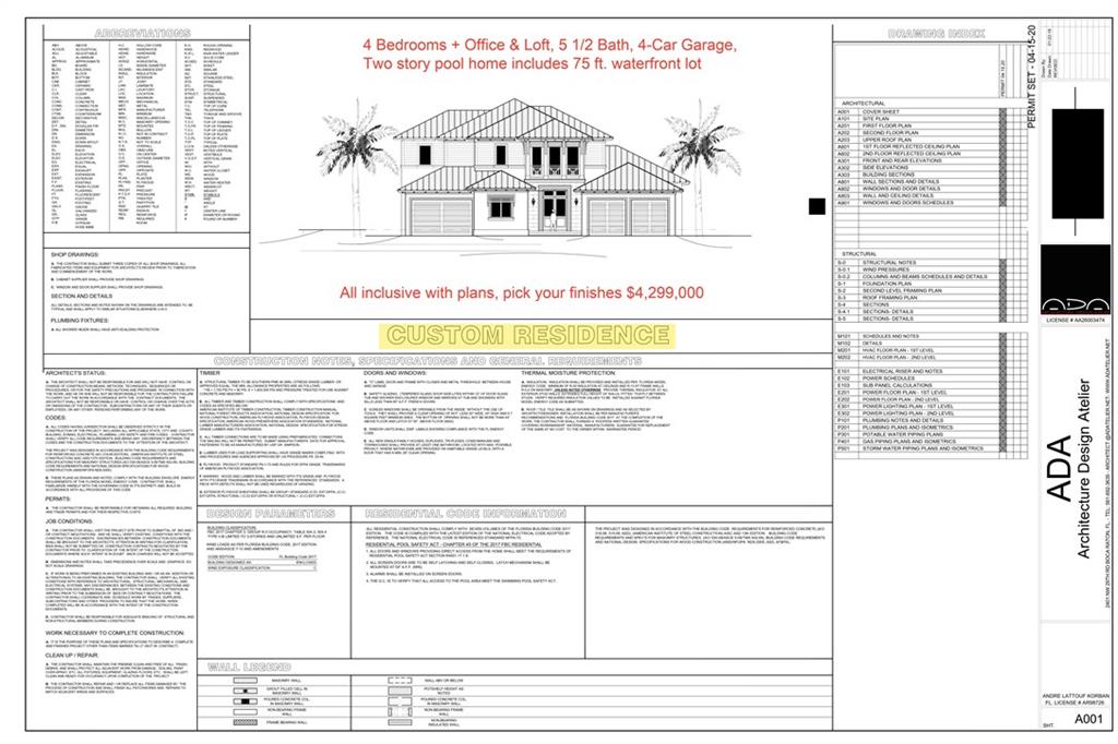 Come & live the beach & boating life....No car needed! Harbor Village 75FT. No fixed bridge Southern exposure w/120Ft. wide canal. Walk/ride/golf cart/boat to all dining, shoppes, Green wise Publix, all markets, Greg Norman public course, live entertainment, amphitheater, incredible lush beaches, new pier, oceanfront village w/all new facilities including Ocean Rescue, fire station & all new infrastructure. Build your custom dream home with Z Construction & Remodeling. Plans are ready for a one story 3Bed +den/3.5Bath/2 CG -OR- Two-story 4Bed+Loft+Office/5.5Bath/4 CG. Both models include large custom pool, lot & new 75Ft custom concrete seawall & dock included. (SEE ATTACHMENTS FOR PRICING & SPECS) You can also remodel the current home. Being sold AS-IS for land value. Roof 4 years old.
