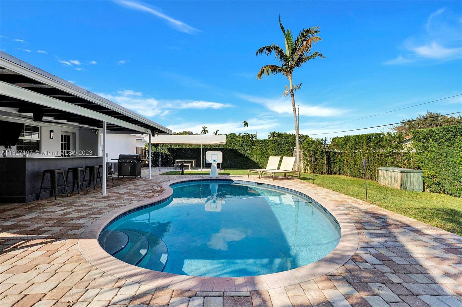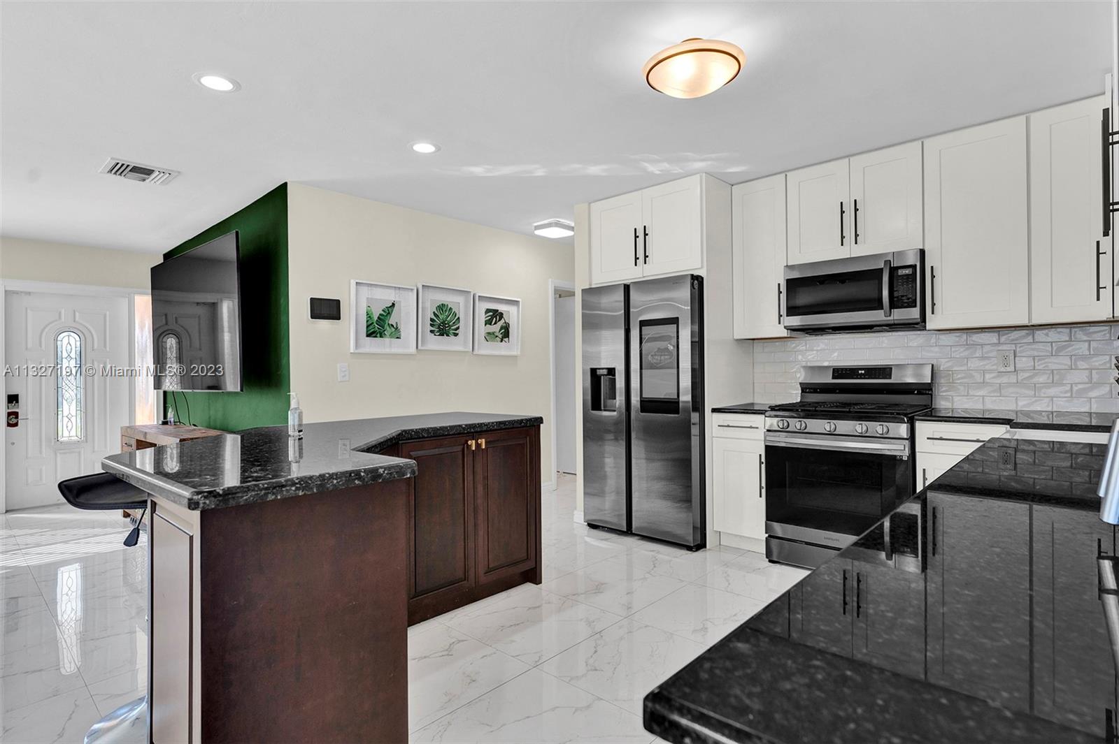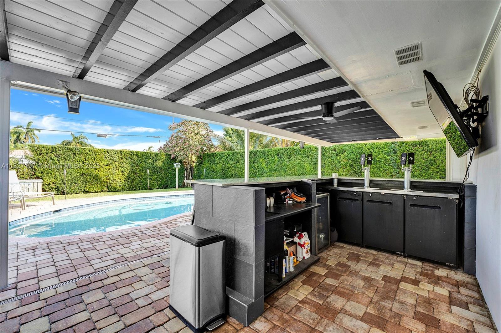Look No Further.. Beauty to Catch the Eye! This stunning 2 bed/2bath POOL home located in highly desirable Hollywood Hills neighborhood. Offering appealing features IMPACT WINDOWS thru-out, Updated kitchen with GAS RANGE, NEWER A/C and tankless water heater, porcelain floor tiles thru out, natural lighting penetrating all areas, modern updated bathrooms, huge walk-in closet with built-ins, lush landscaping- great backyard experience with a custom built outdoor bar- entertain guest for endless hours, 2 CAR GARAGE, Enticing curb appeal, Great schools, a great starter to start a family. A must see !