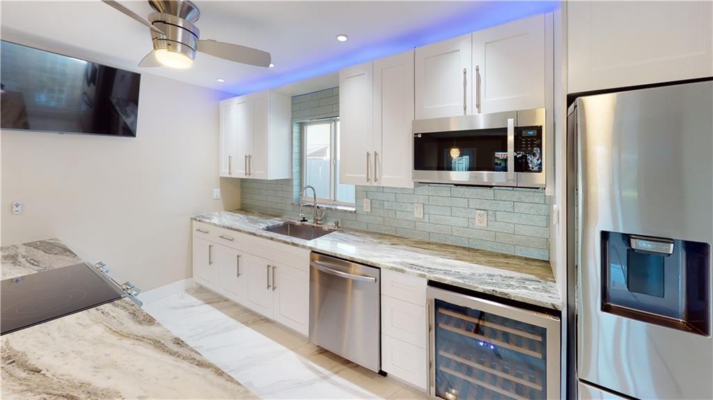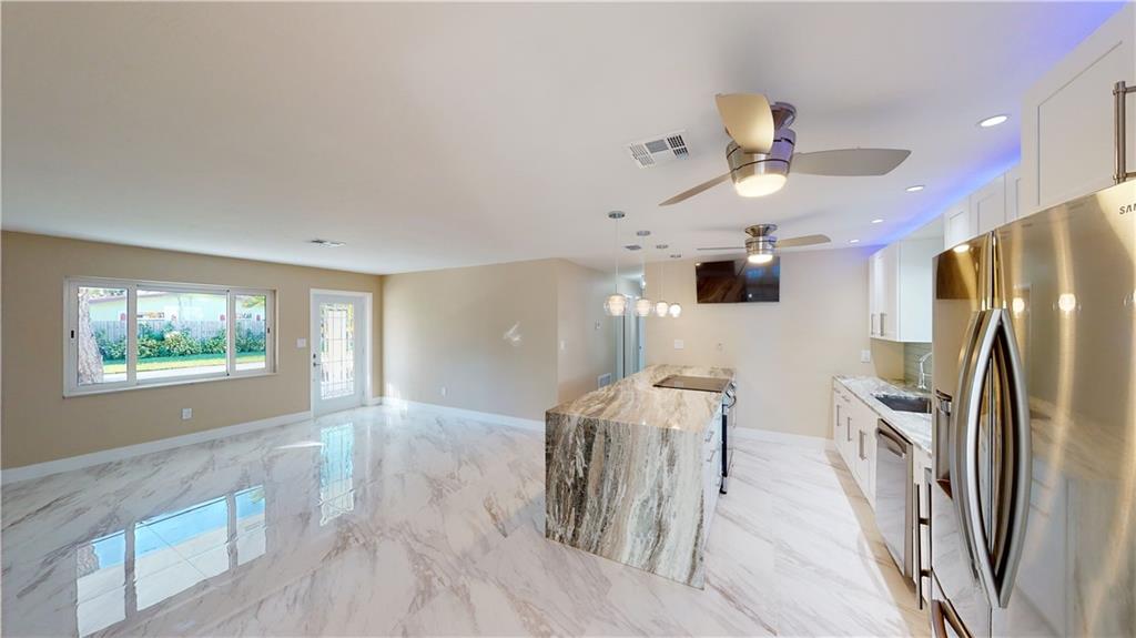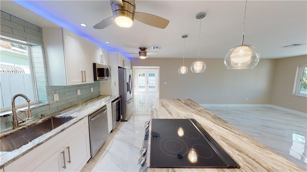 SELLER MOTIVATED!!!!!!Open the front door and go WOW! Stunning 3/2 with impeccable details starting w/the large format tile floor throughout & bright natural light that comes in through the gorgeous front door. Open format kitchen w/a granite waterfall island designed for multiple bar & eat in seating. Full array of top kitchen SS appliances including a built in wine cooler. The Florida room is perfect as a formal dining area or office. All closets have a beautiful 7' barn door as an accessory piece. The guest bathroom has lots of gold inlay trimming and a multifunction shower tower to dazzle your mind & body. The master bath has all the pizzazz of the modern trimmings of black detail. Great outdoor shed for extra storage. Walking distance to Wilton Manor and all it has to offer.
